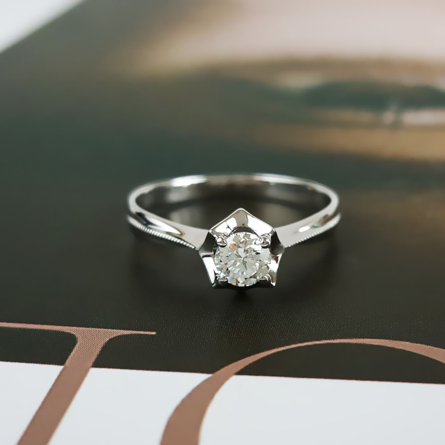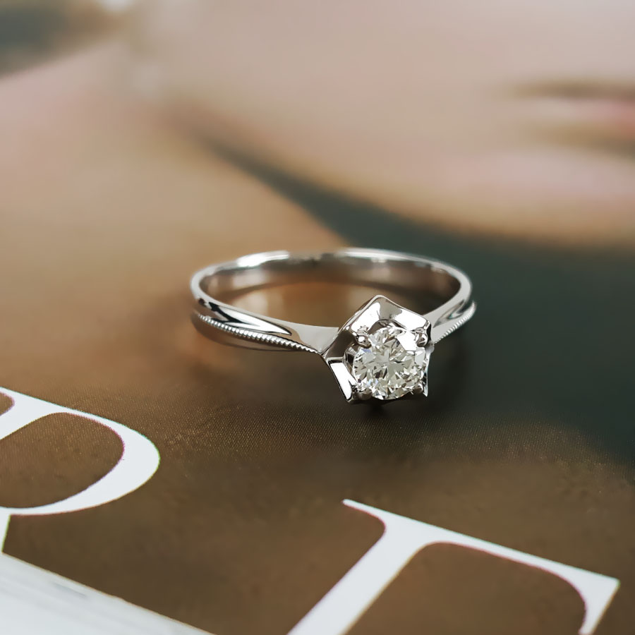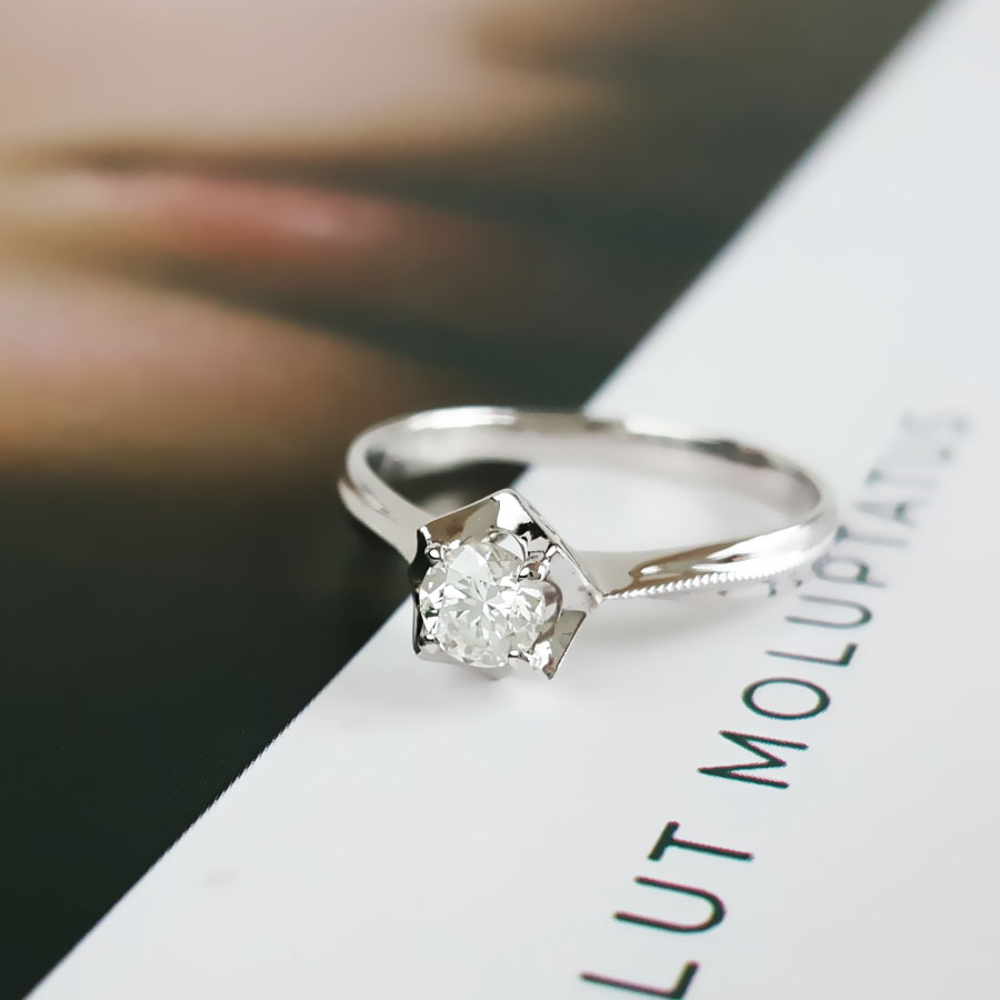 款式 | AU750白金经典简约四爪款0.303克拉钻石戒指 |