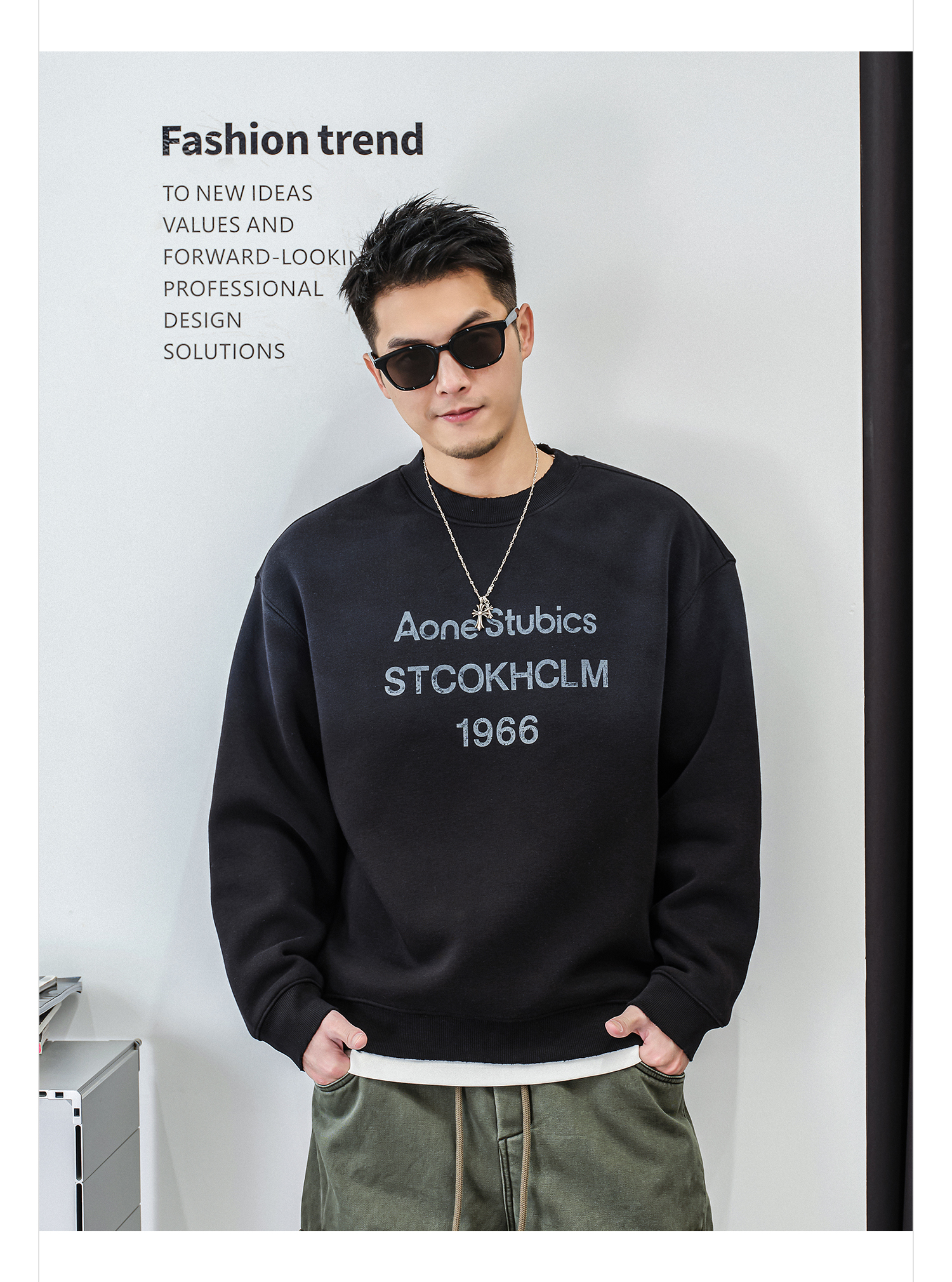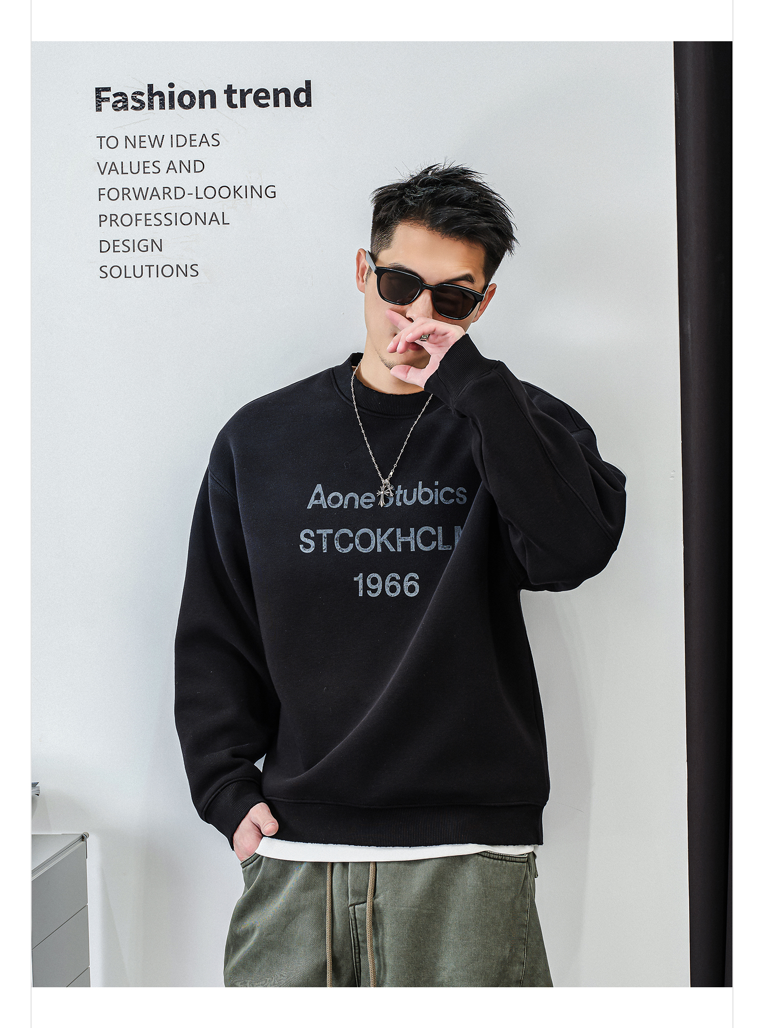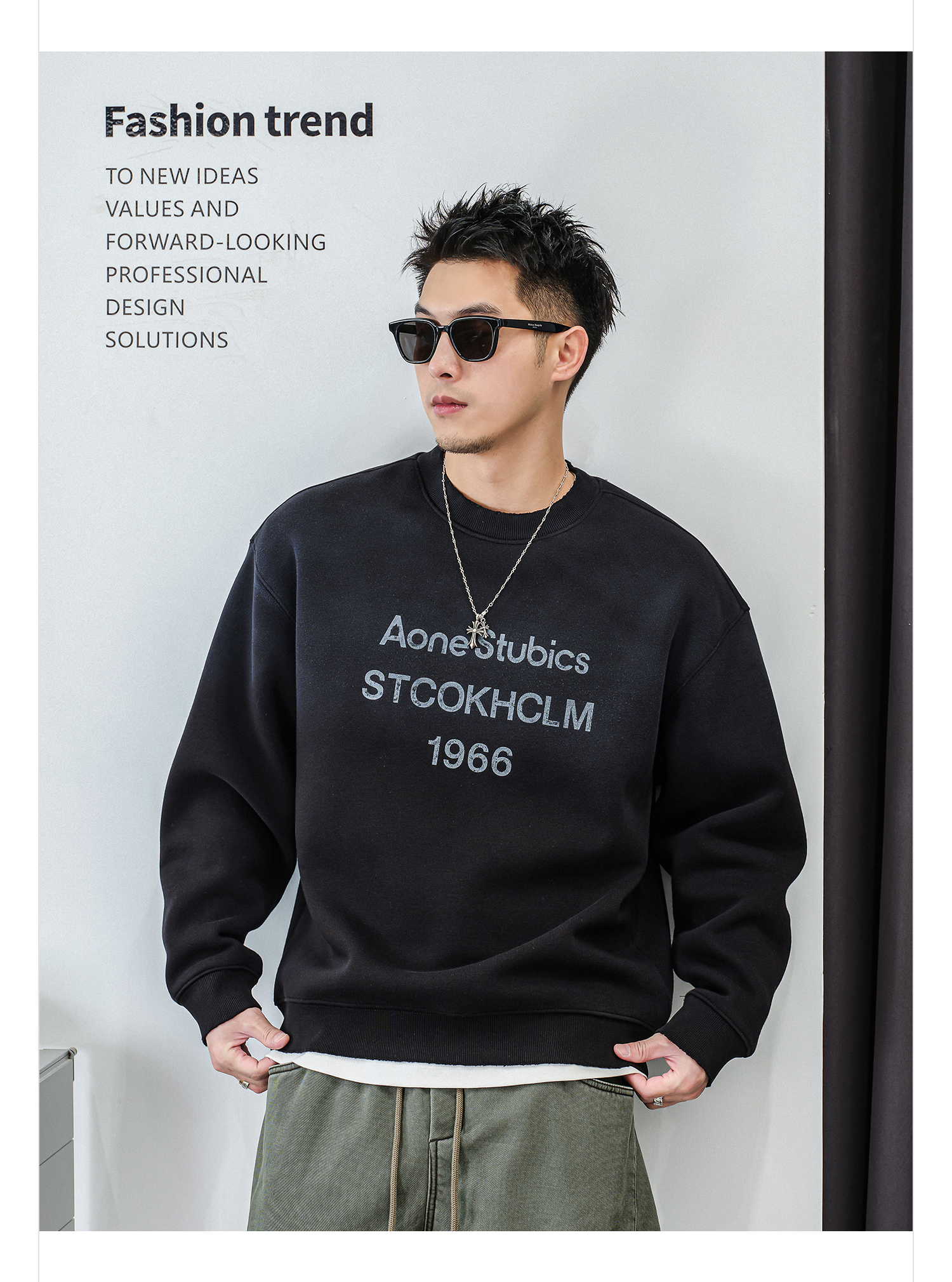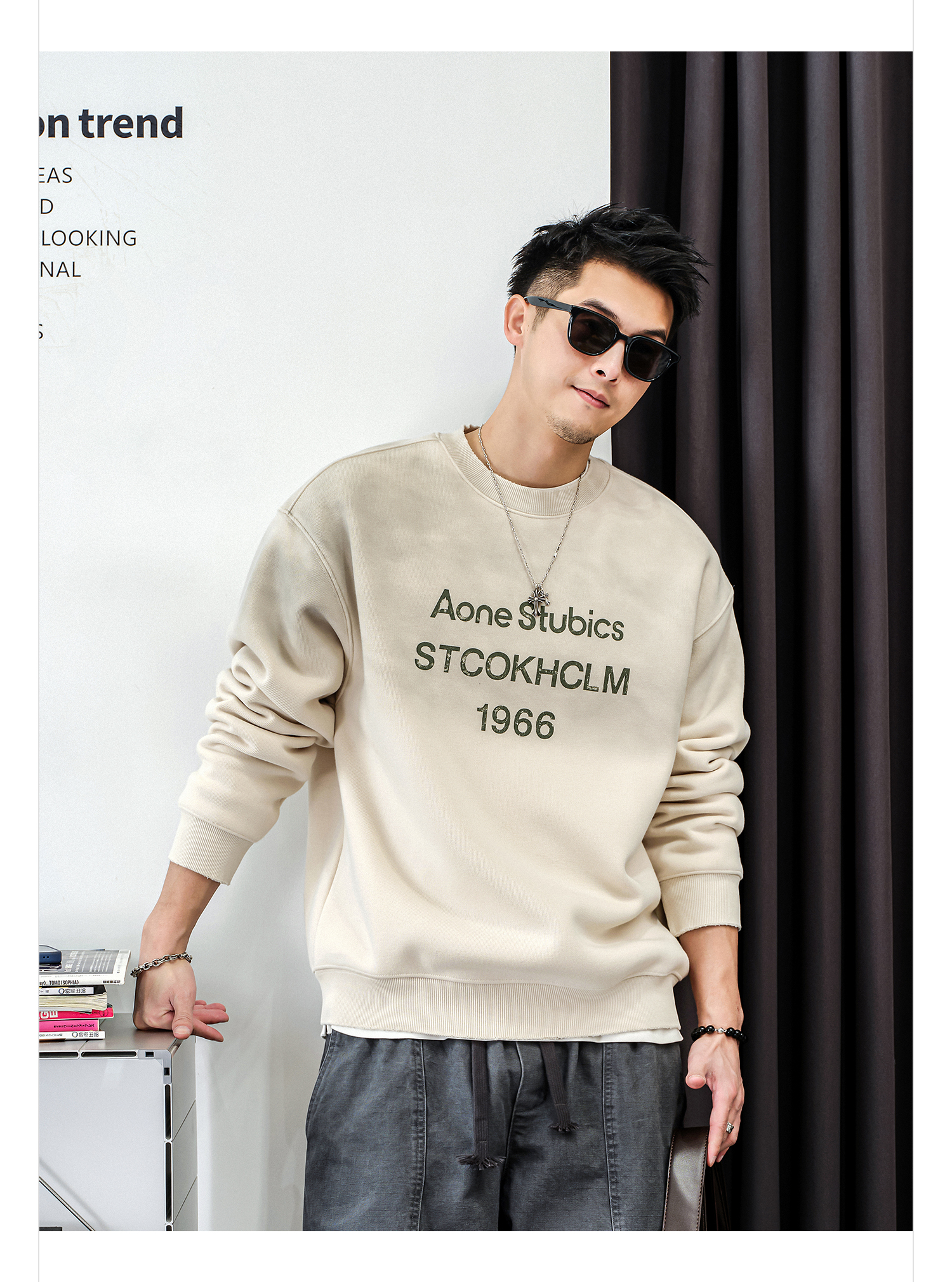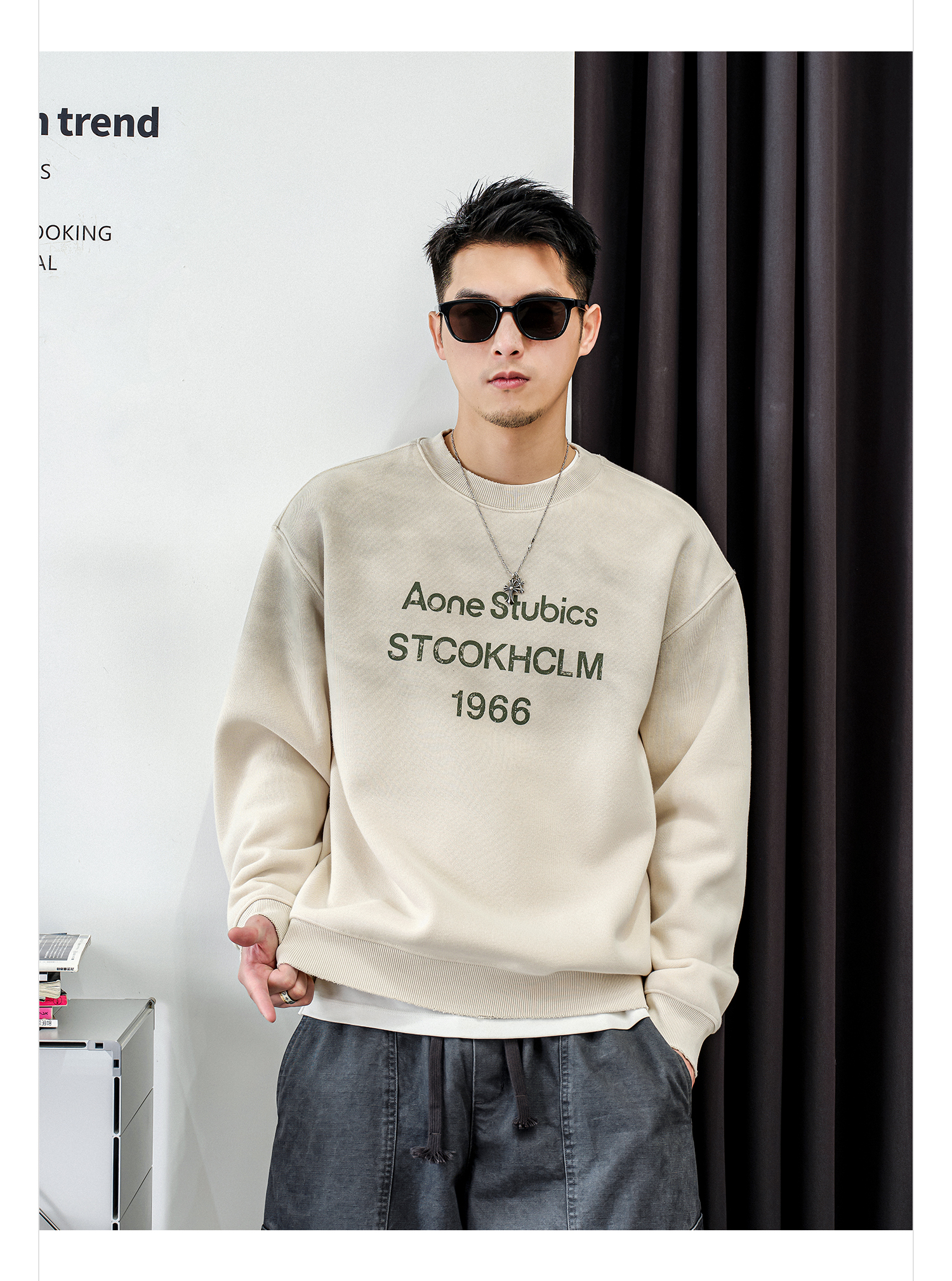 徐太浪【时尚帅气 字母印花】加绒卫衣男秋冬款美式休闲内搭衣服