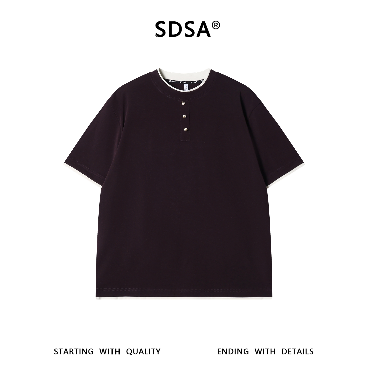 SDSA男装2026新款高贵轻奢潮牌撞色拼接假两件短袖T恤百搭时尚