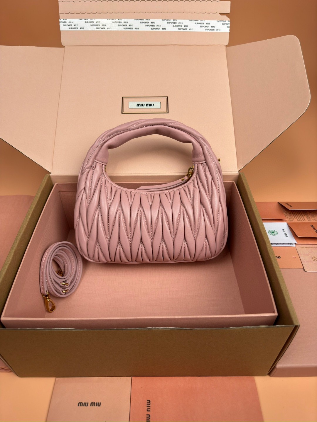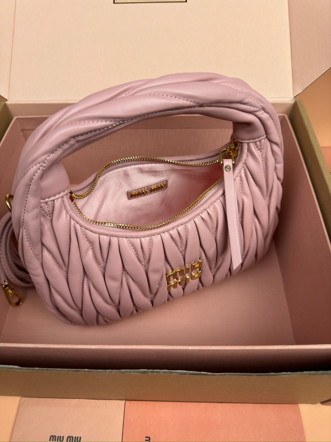 miumiu wander 羊皮革 hobo 手提包 小号 浅粉色(MM)