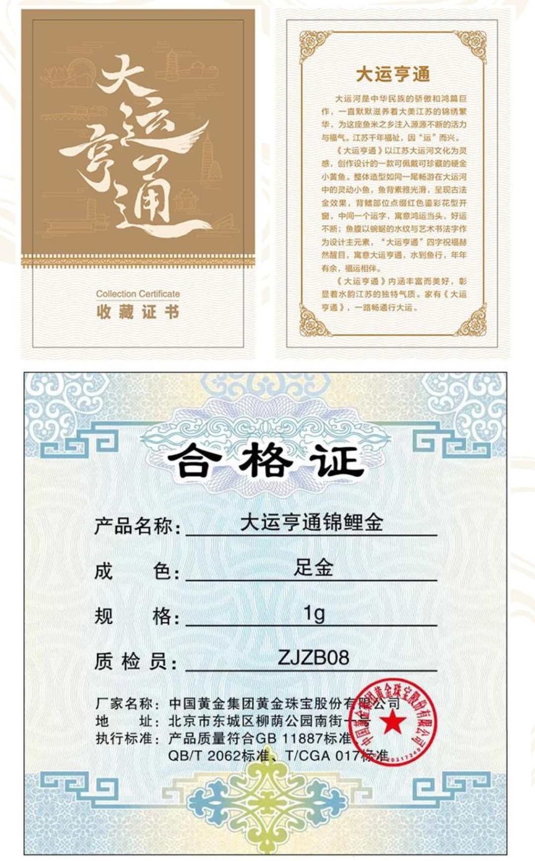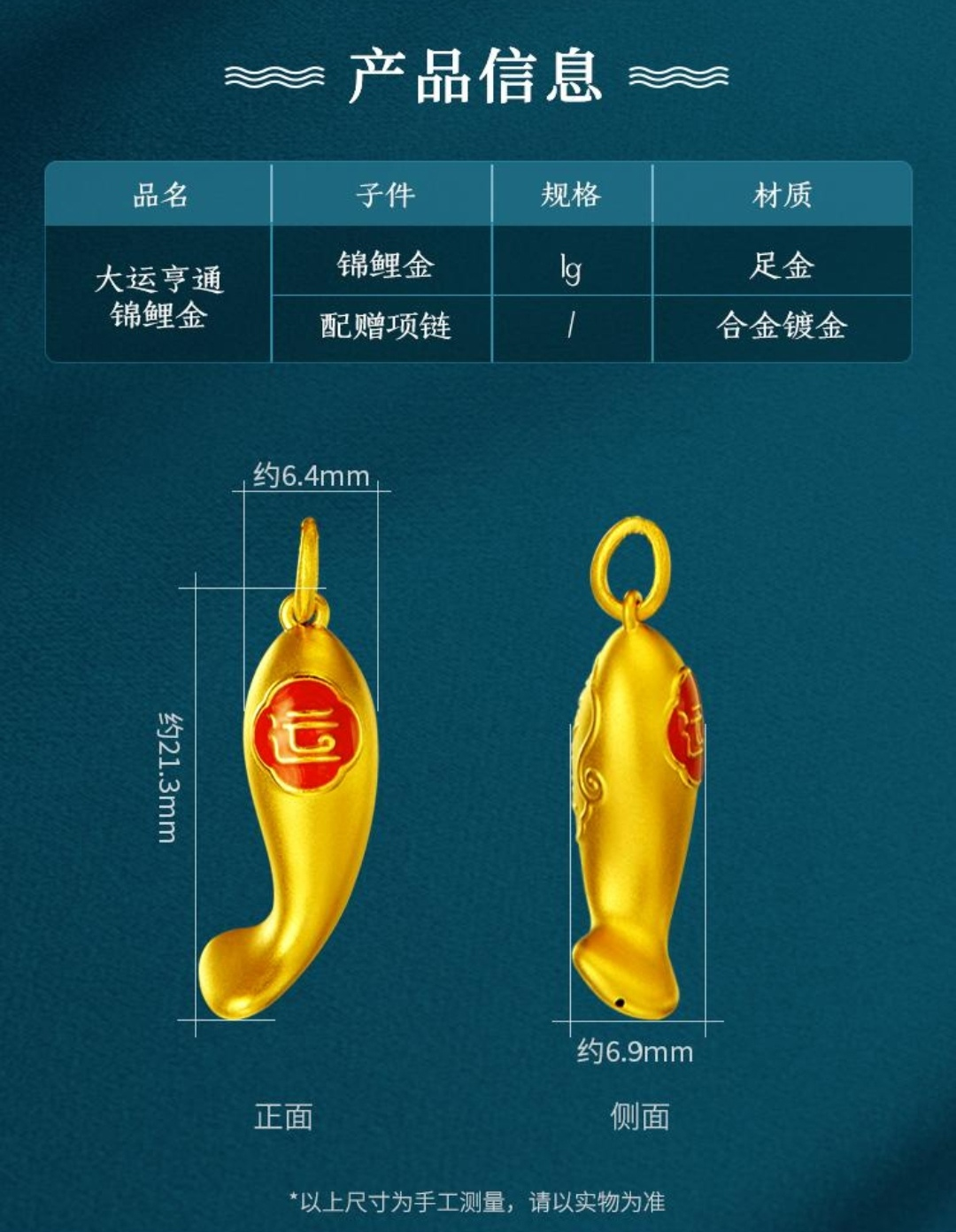 工行大运亨通.锦鲤金 含纯金1克 可佩戴 刻有“运”字