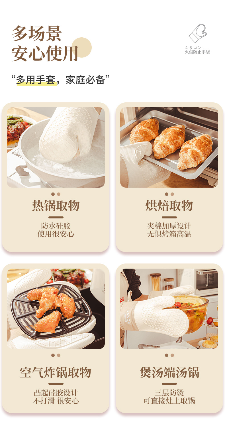 手套本身还有加长设计,还能够保护手腕不被烫伤