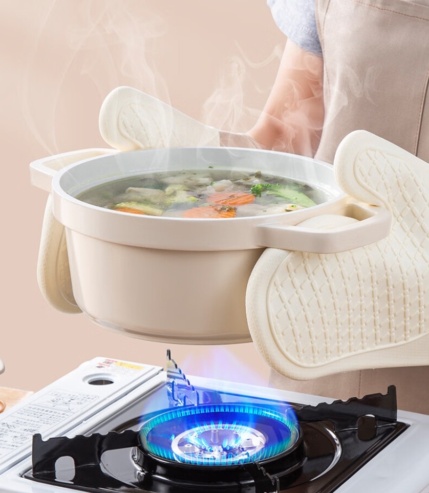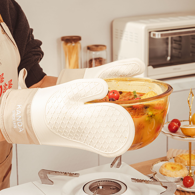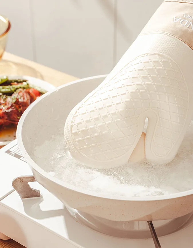 厨房必备|家常蒸菜,又烫又难拿⁉️「神田|绣渤意 硅胶防烫手套」 ✔️三层隔热设计:抗菌硅胶层+隔热里布+加厚隔热棉 ✔️耐高温350℃,隔热、防烫、防滑 ✔️食品级接触,一冲即净