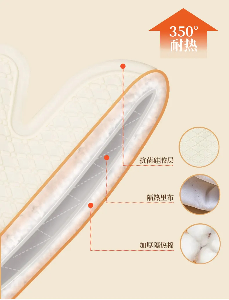 抗菌硅胶层+隔热里布+加厚隔热棉
