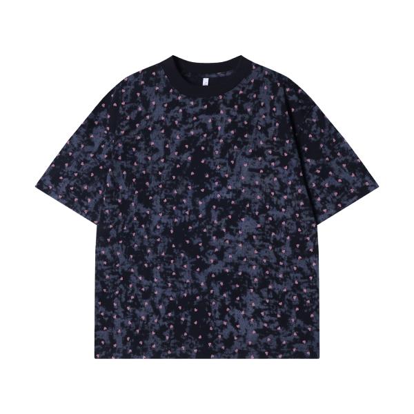 T2692夏季新款高级感韩版绒面爱心印花圆领短袖T恤百搭潮流简约上衣