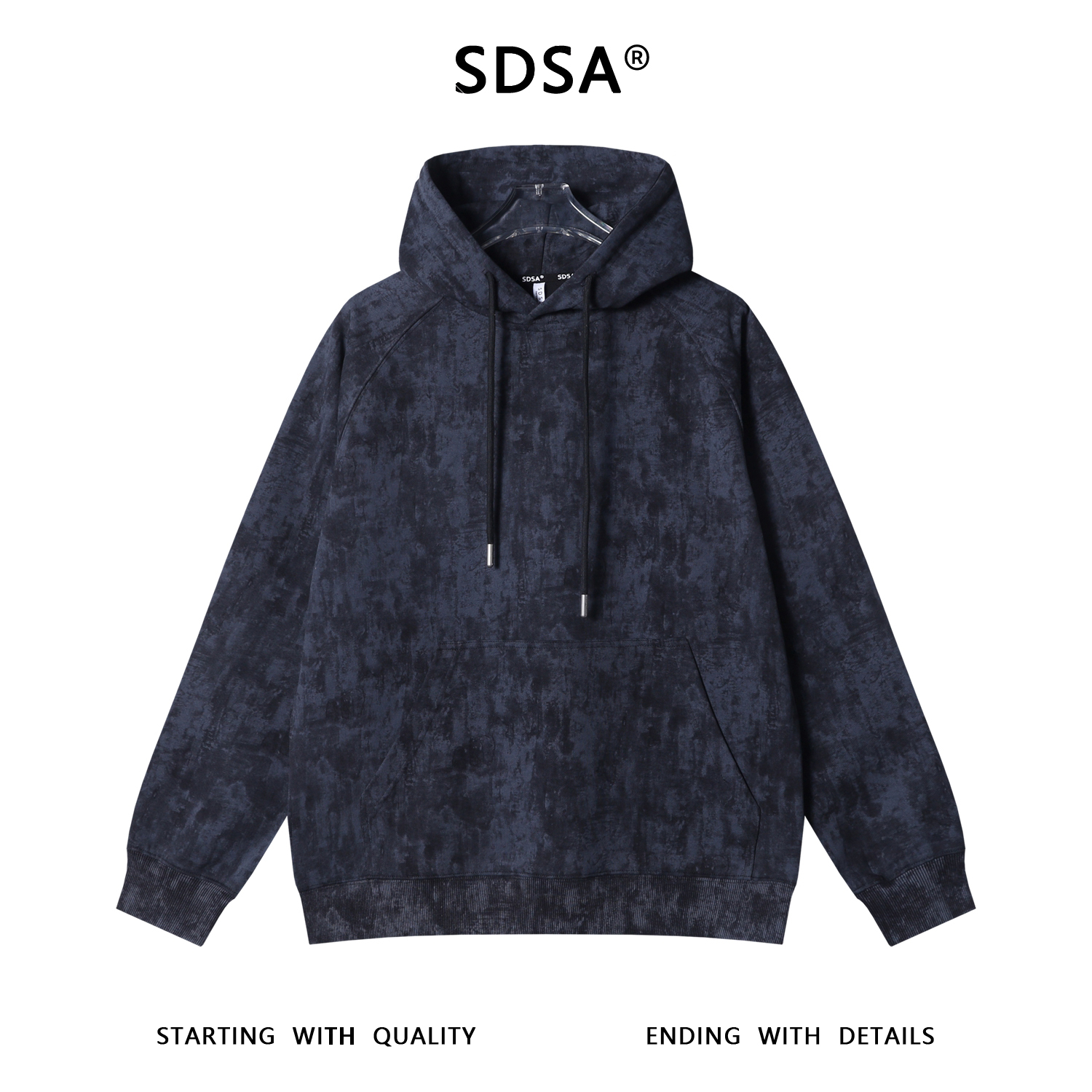 SDSA男士秋冬新款痞帅男装复古扎染抽绳连帽卫衣休闲百搭套头上衣