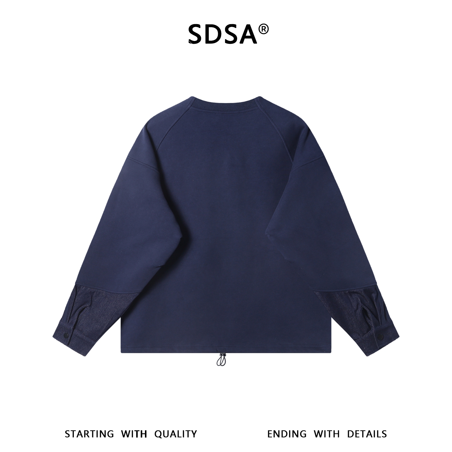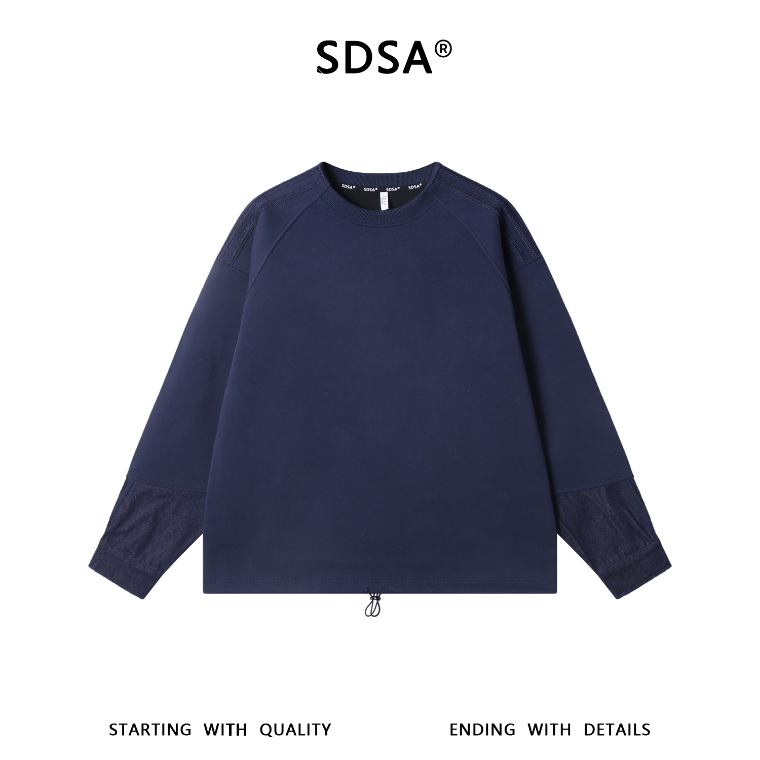 26WY26SDSA男士秋冬新款痞帅男装韩版拼接下摆松紧圆领长袖T恤百搭时尚