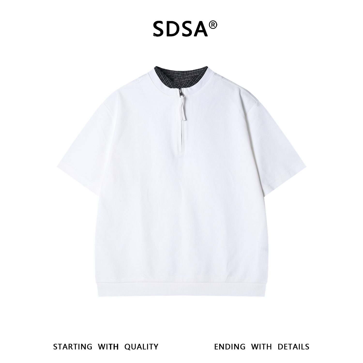 26602SDSA男装2026新款高贵轻奢韩系拼接半拉链立领短袖T恤百搭上衣潮