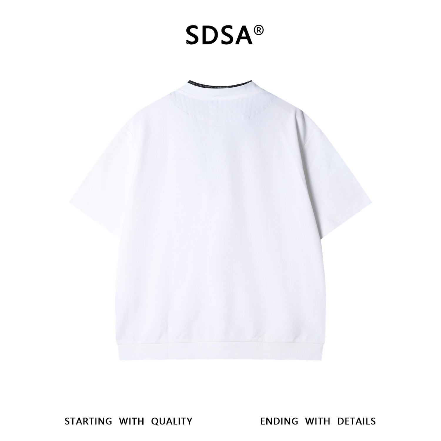 26T161SDSA男装2026新款高贵轻奢时尚撞色明线设计圆领短袖T恤百搭宽松