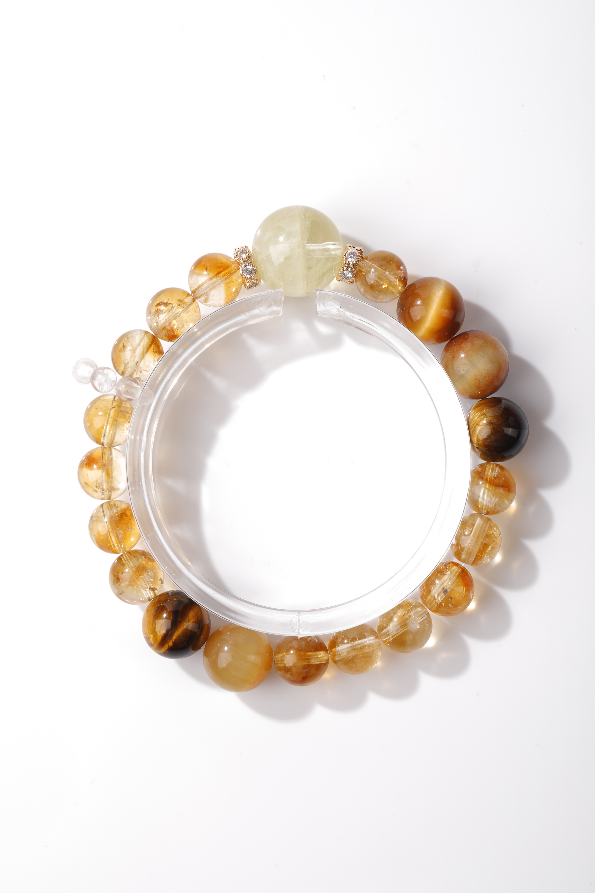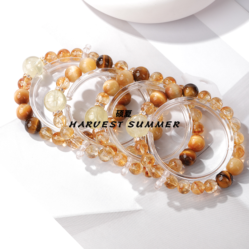硕夏珠宝 天然黄塔晶+顶珠柠檬黄水晶贵气轻奢手链招财平安小众设计自然纹理手串 WW82