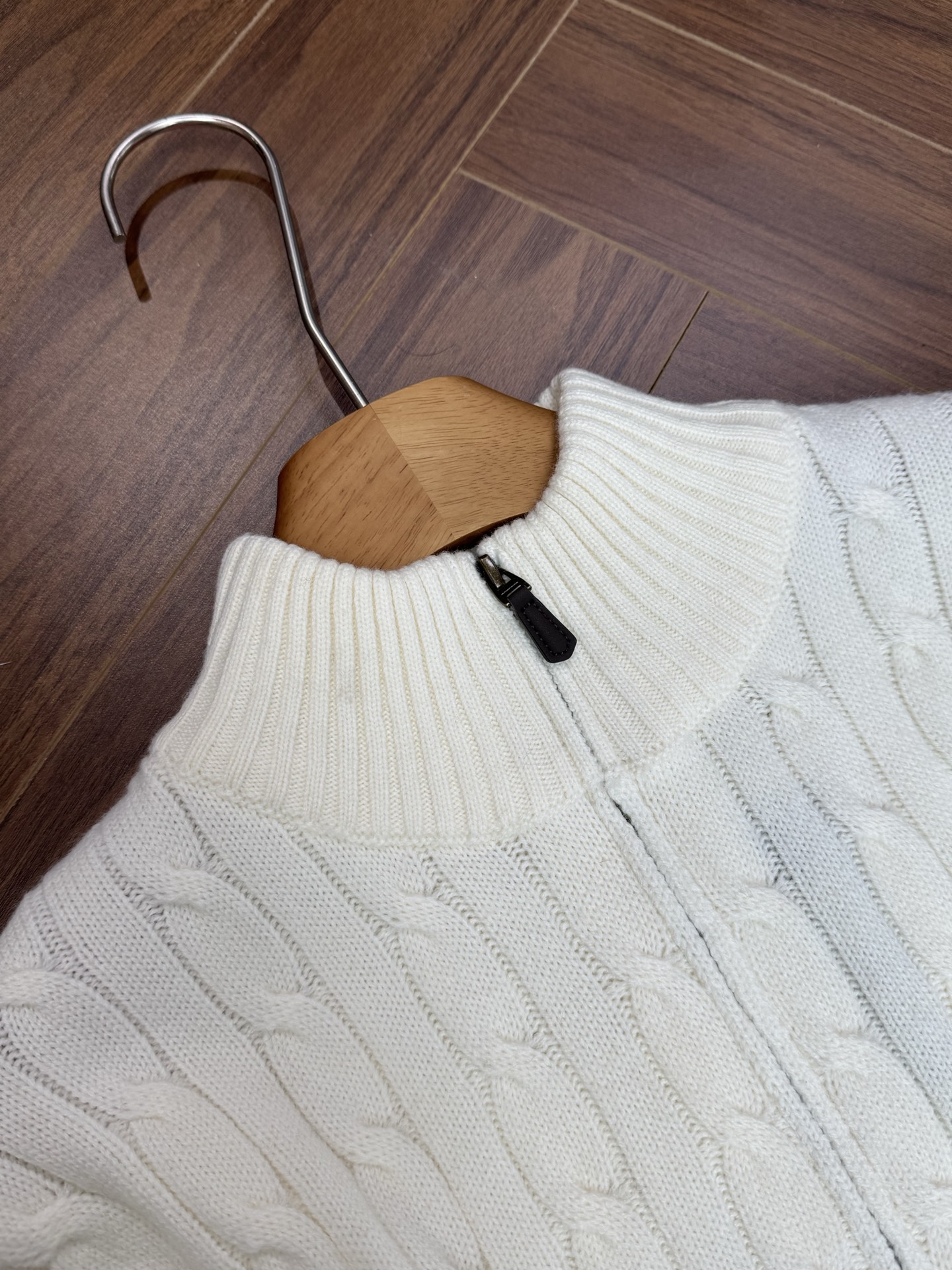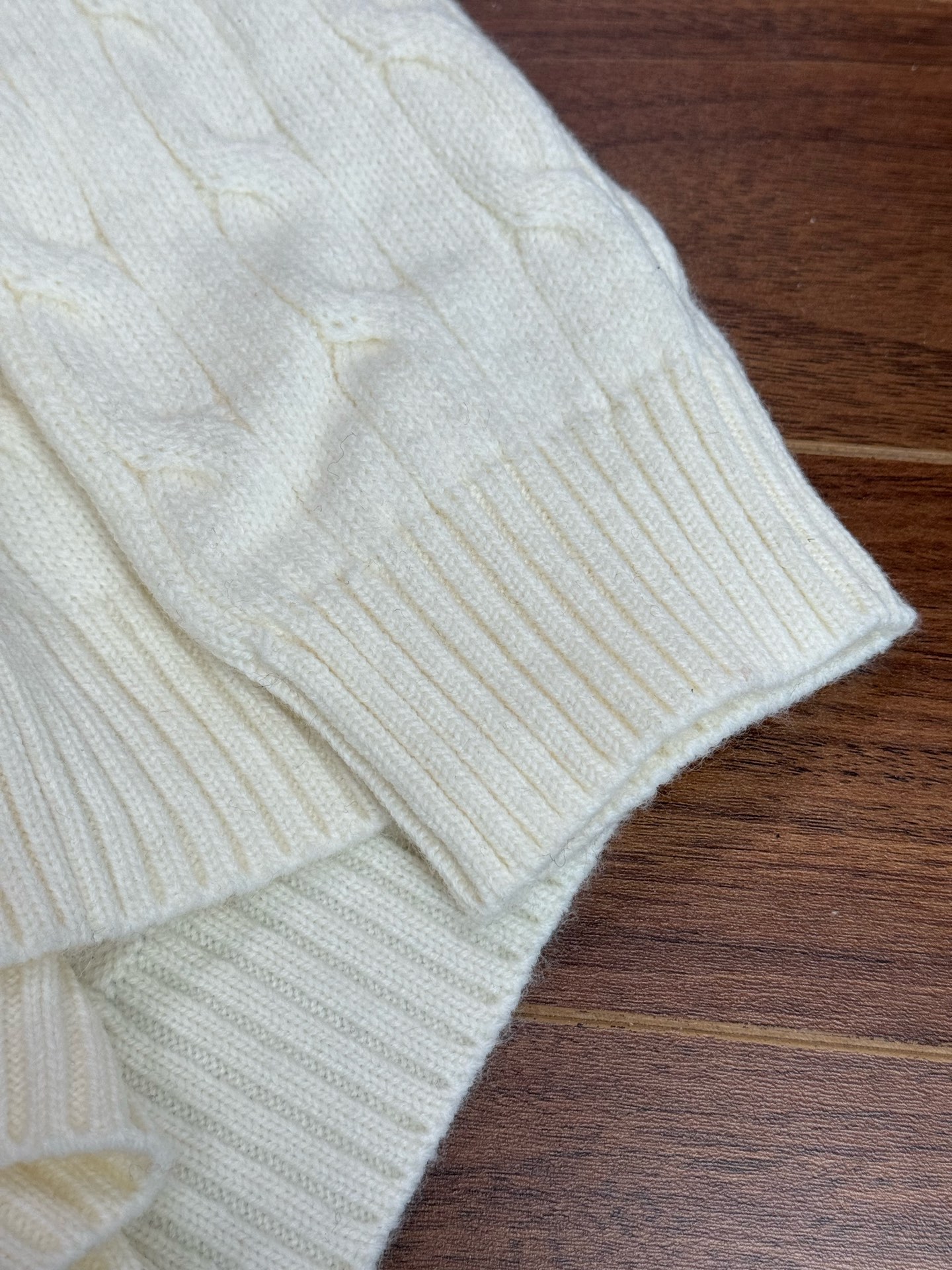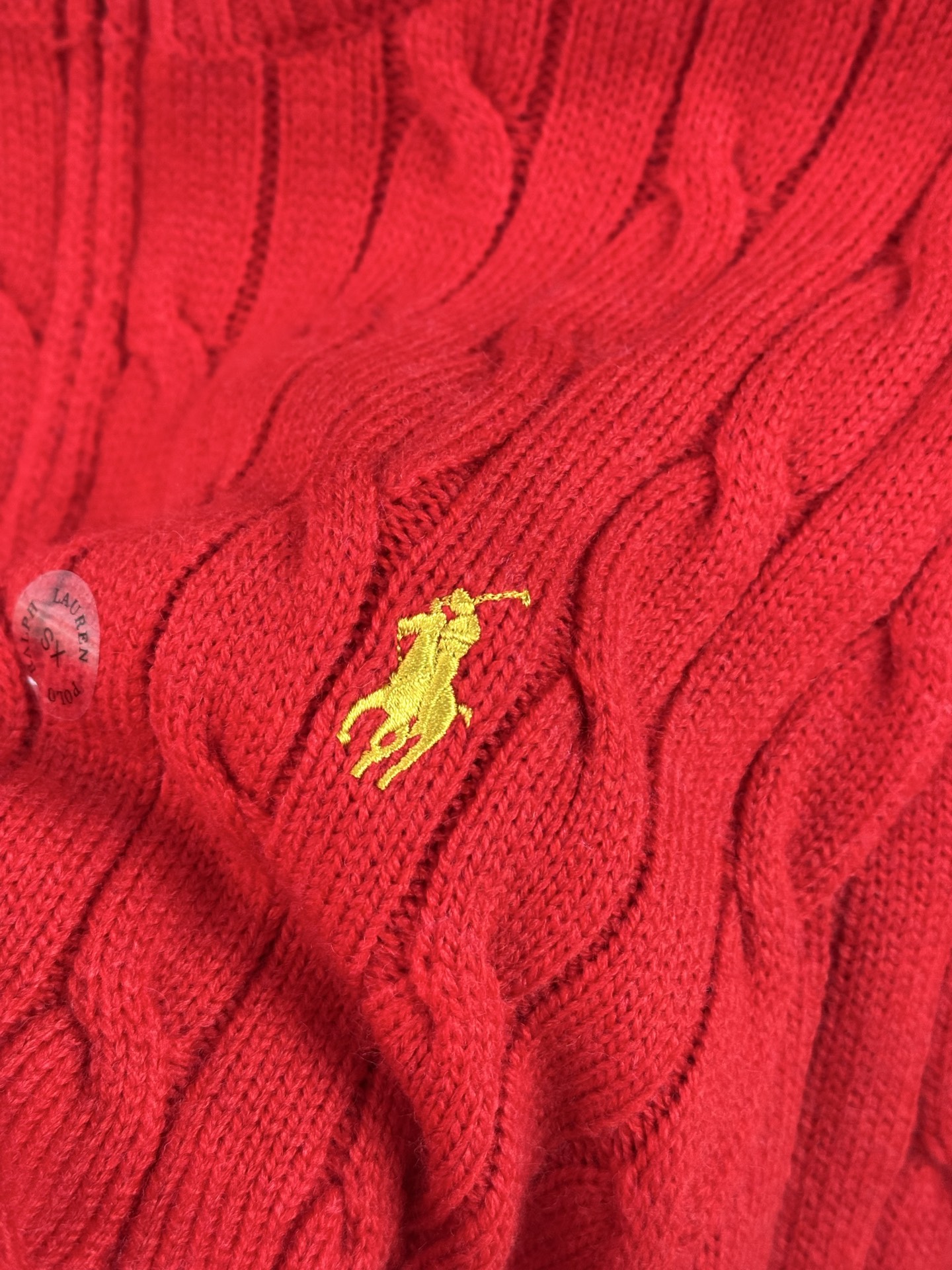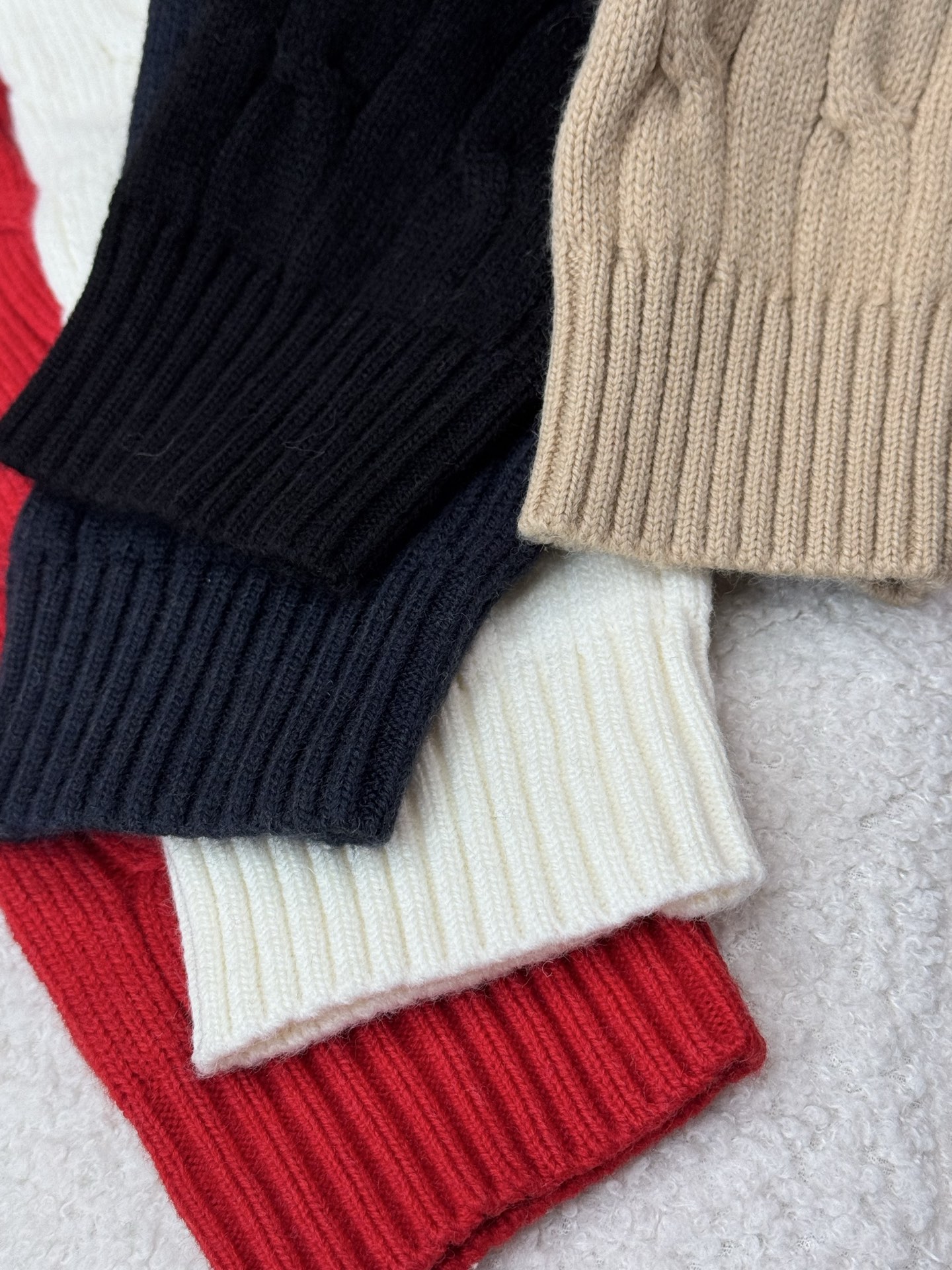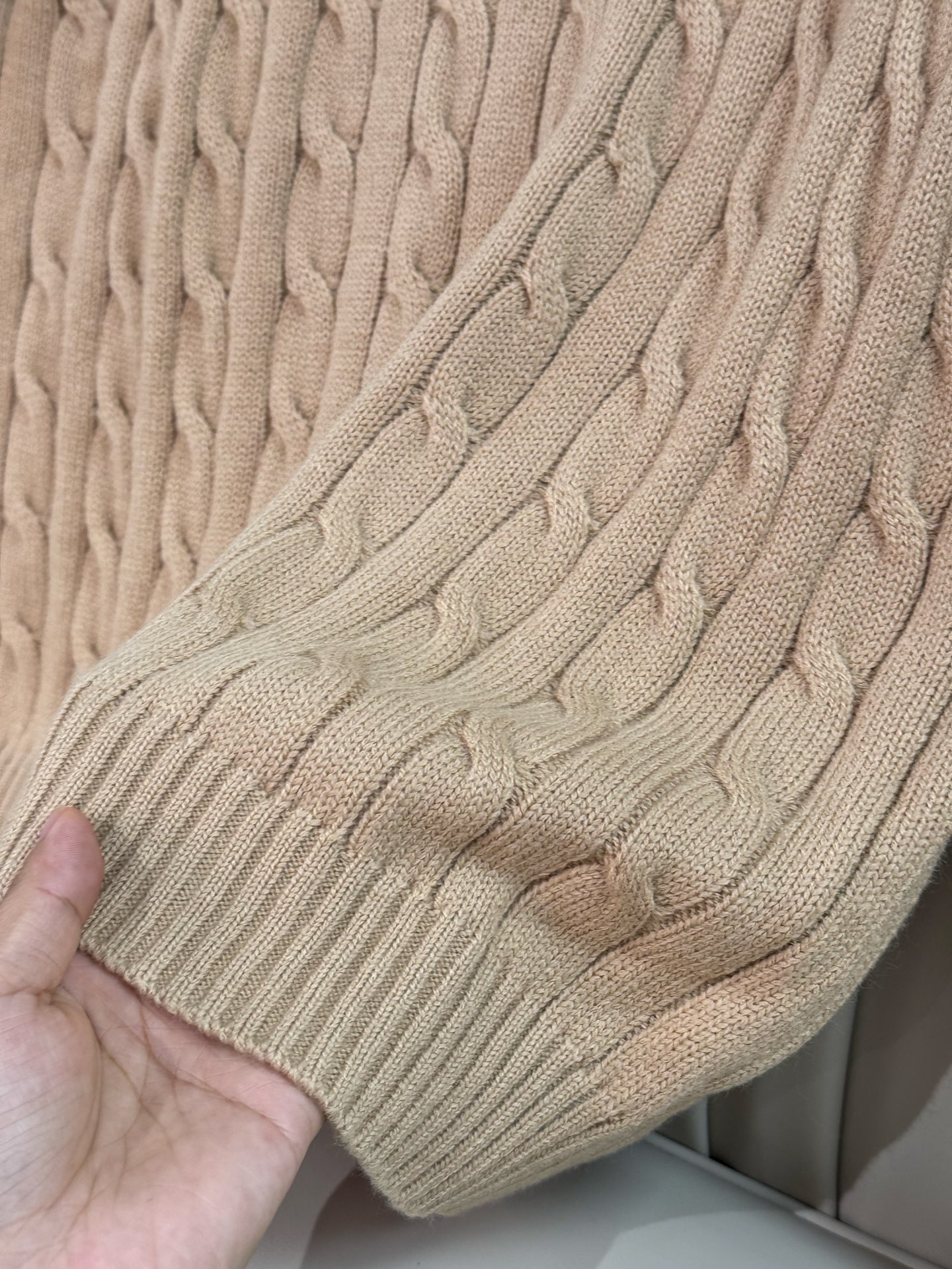 Ralph Lauren/拉夫劳伦 情侣款经典款绞花编结羊绒针织毛衫 90羊毛10山羊绒 直筒版型,能够修身利落的展现穿着者身形,既不会过于紧身,也不会显得松垮 。 5️⃣个颜色:红色、藏蓝色、卡其色、黑色等多种颜色可供选择,满足不同消费者的喜好和搭配需求。 领口:采用半高领拉链设计,拉链拉合时可以防风保暖,拉链拉开时又能营造出不同的穿搭风格,增加层次感。拉链头带有“POLO” 标识,彰显品牌特色。 标志性logo:在毛衣左胸部位置,有经典的拉夫劳伦小马标刺绣,黑色的小马图案精致立体,是品牌辨识度的象征。 绞花编结:毛衣表面采用绞花编结工艺,呈现出丰富的纹理,增加了视觉上的层次感和立体感,让毛衣更具质感和设计感。 袖口和下摆:袖口和下摆处都采用了罗纹收口设计,贴合手腕和腰部,不易变形,保暖的同时也能保持良好的版型。 拉链质量较好,金属质感的拉链顺滑耐用,且与毛衣整体风格相协调。 材质成分 这款毛衣主要材质成分为90%羊毛、10%山羊绒 ,兼具羊毛的保暖性和山羊绒的柔软亲肤感,穿着舒适,且具有较好的保暖性能。 Ralph Lauren是美国知名的高端服饰品牌,以其经典美式风格著称,这款毛衣体现了品牌一贯的高品质和经典时尚的设计理念,适合多种场合穿着,无论是日常休闲还是较为正式的商务休闲场合都能轻松驾驭。