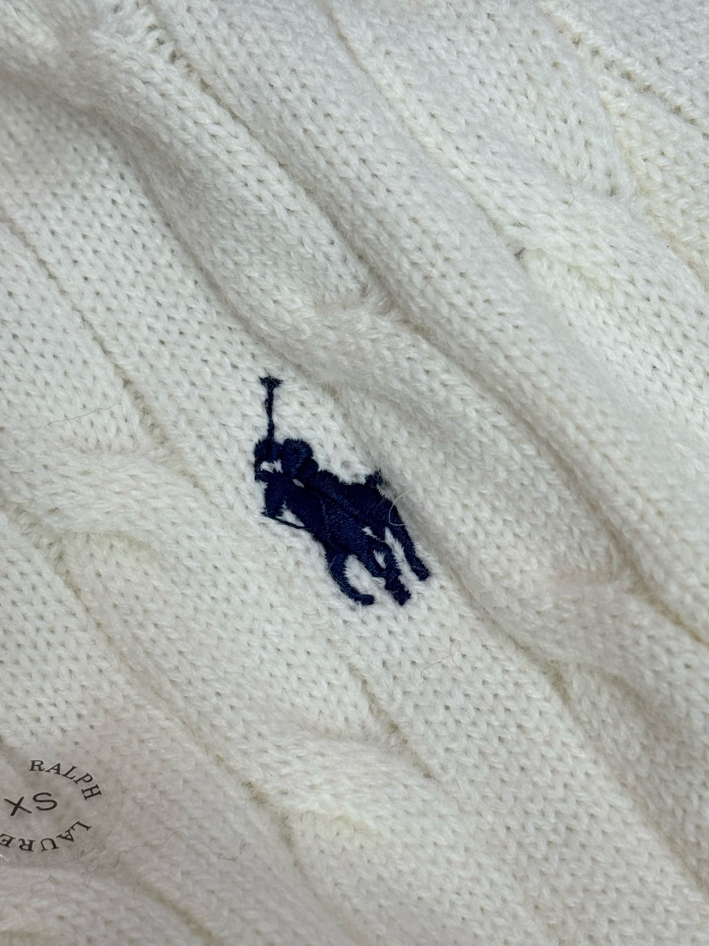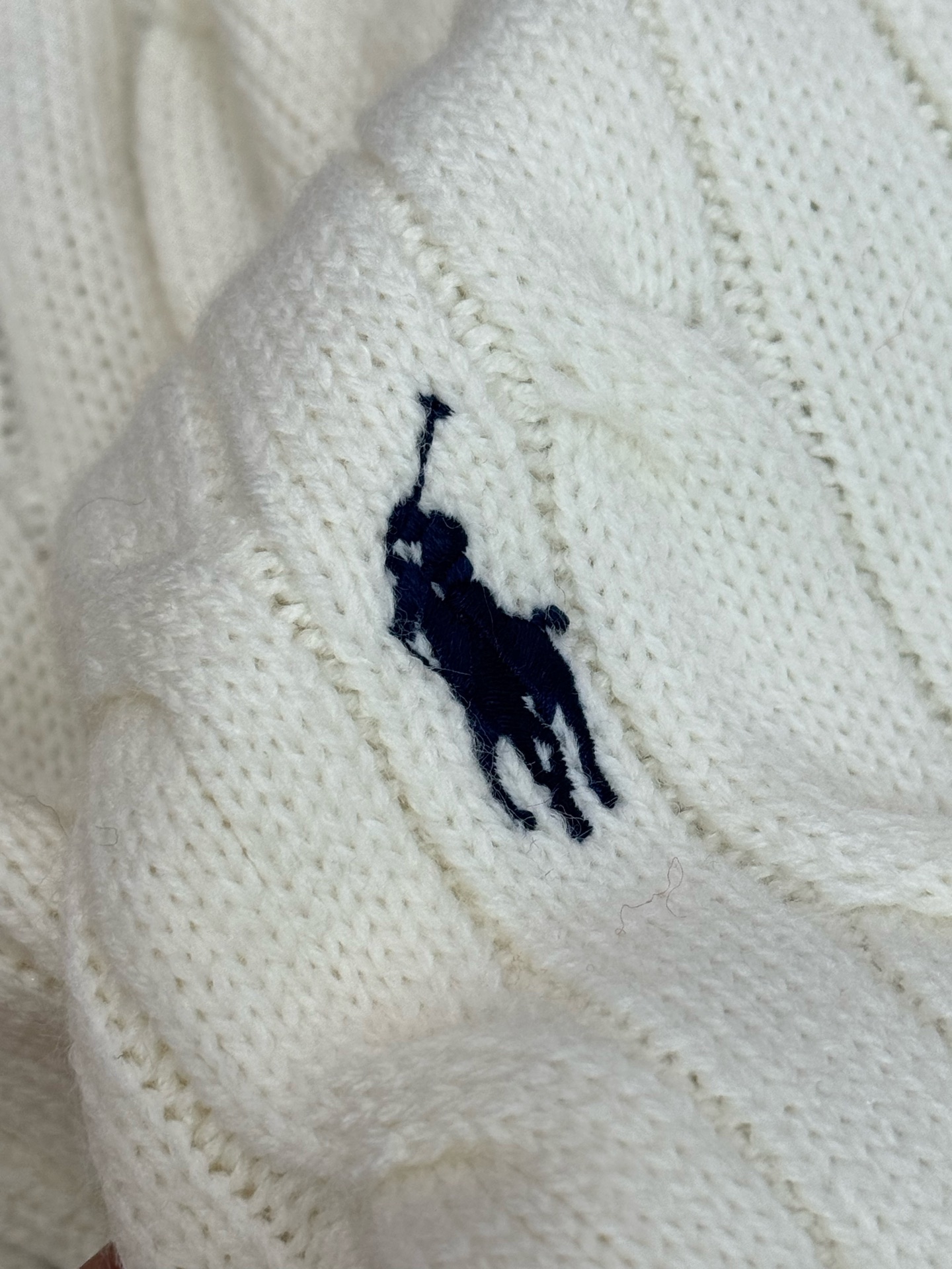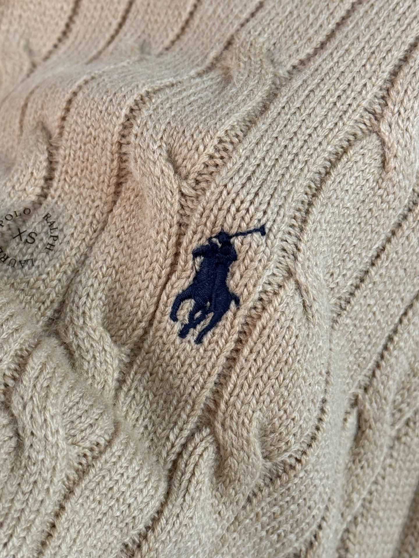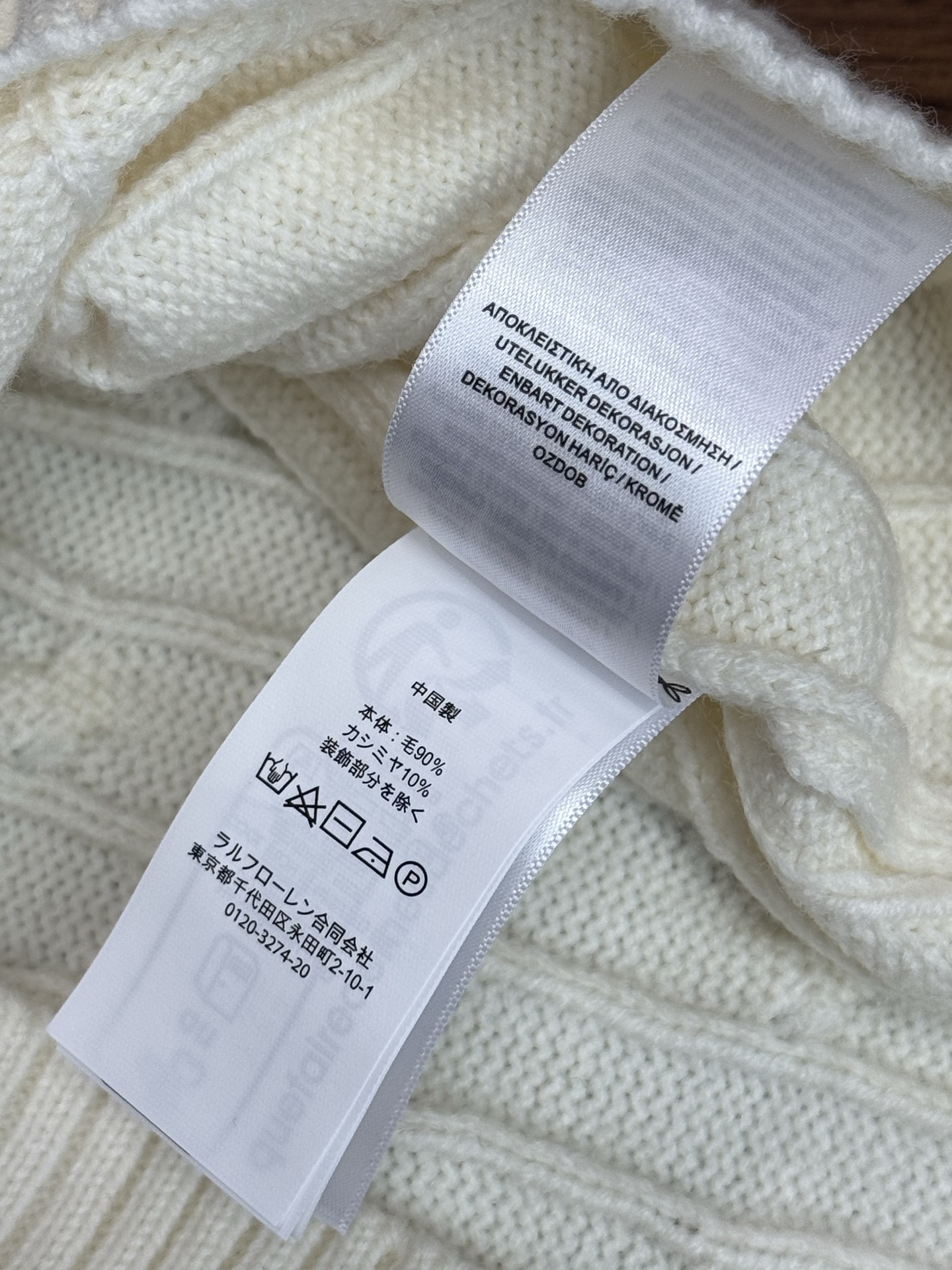 标志性logo:在毛衣左胸部位置,有经典的拉夫劳伦小马标刺绣,黑色的小马图案精致立体,是品牌辨识度的象征。