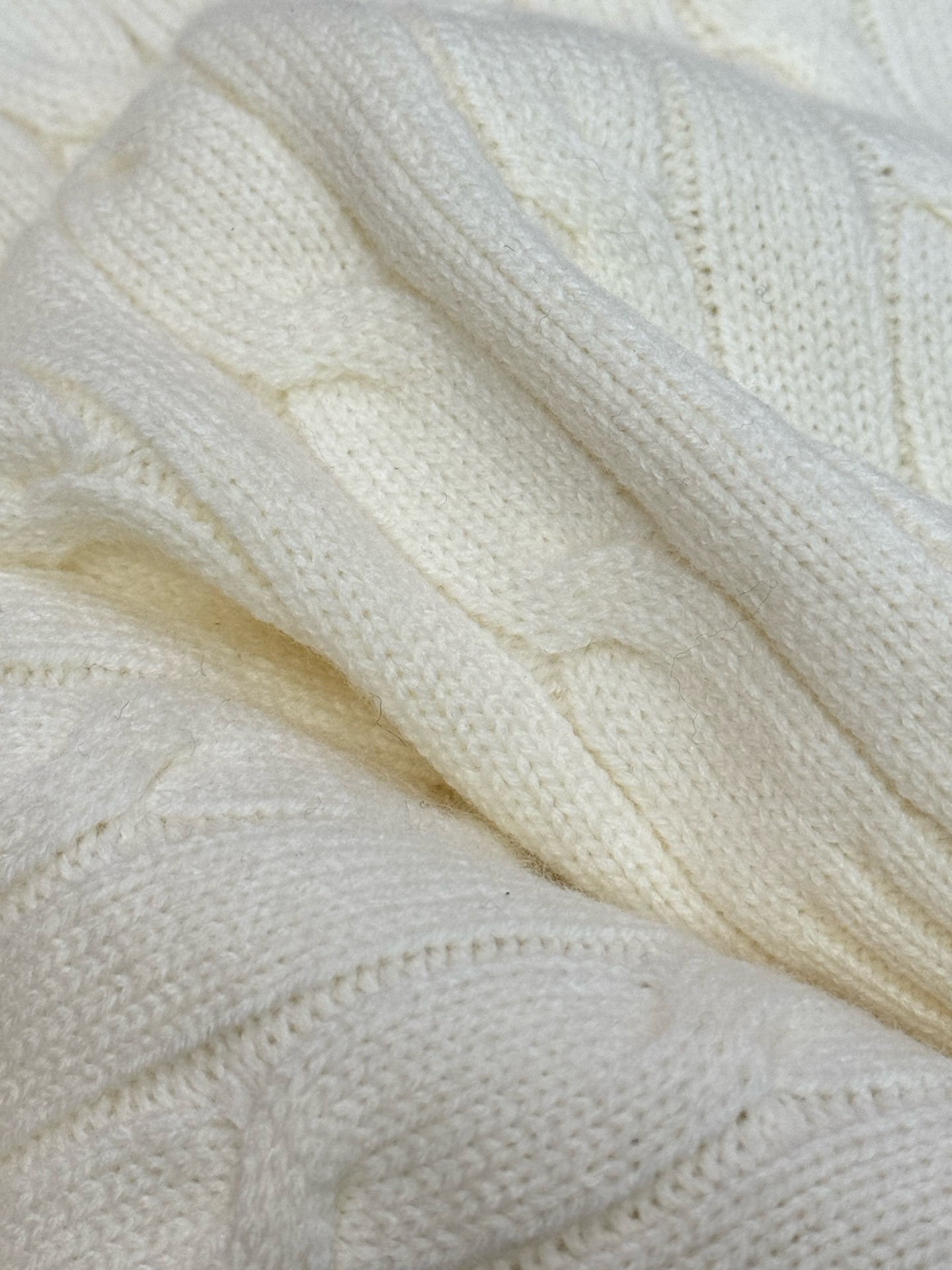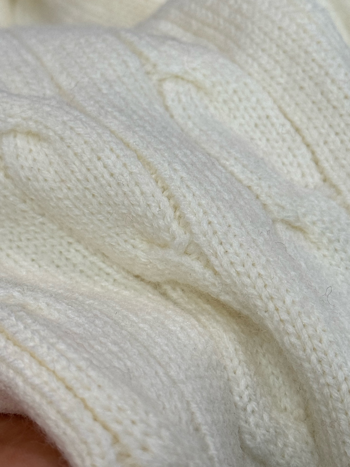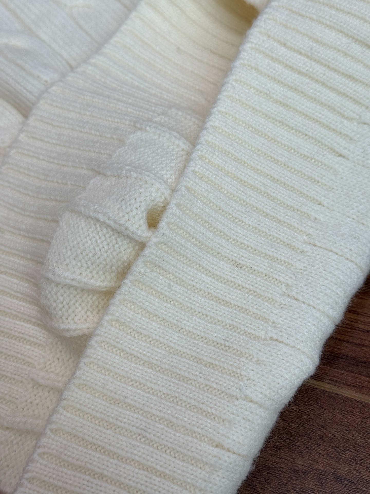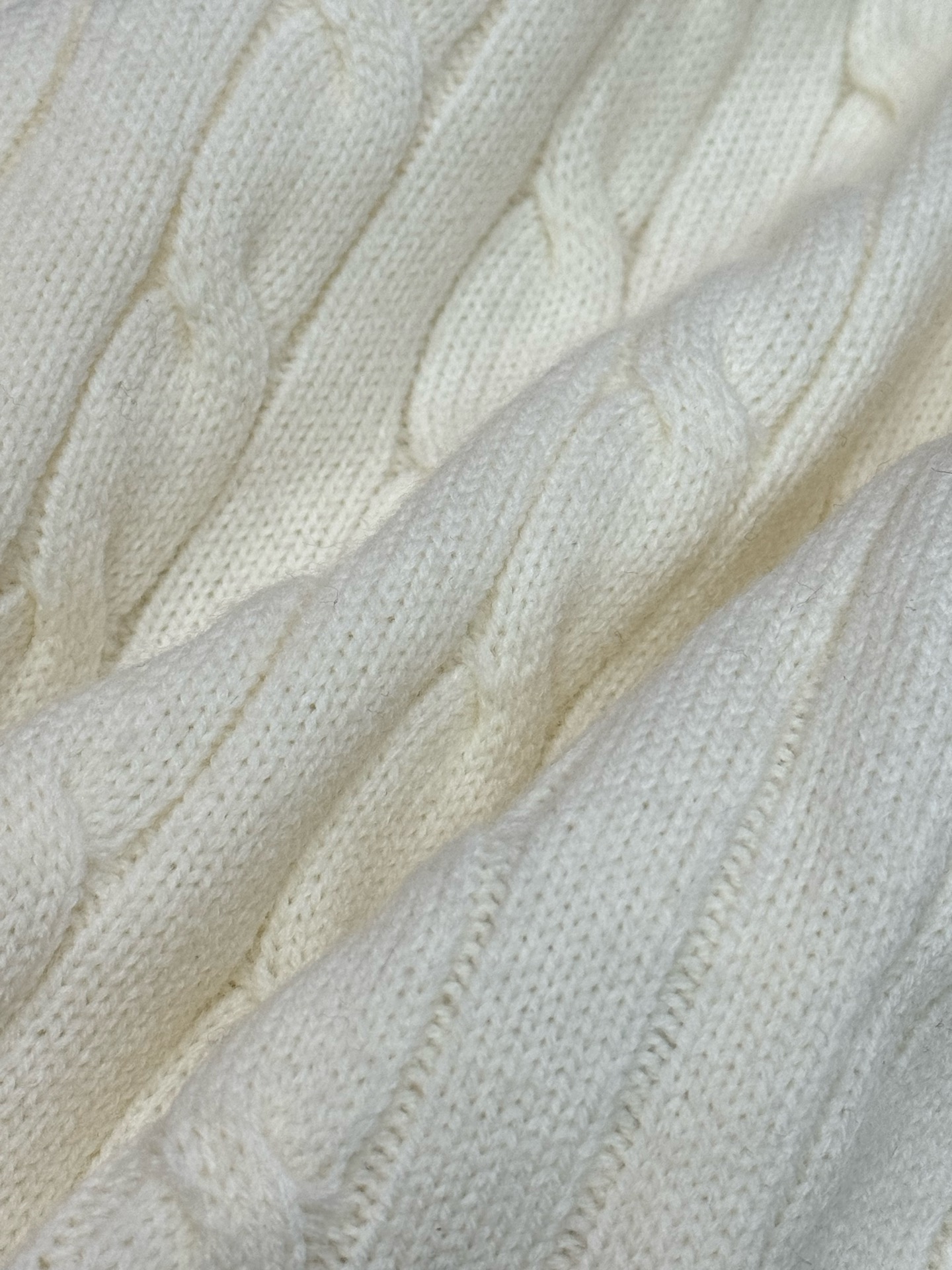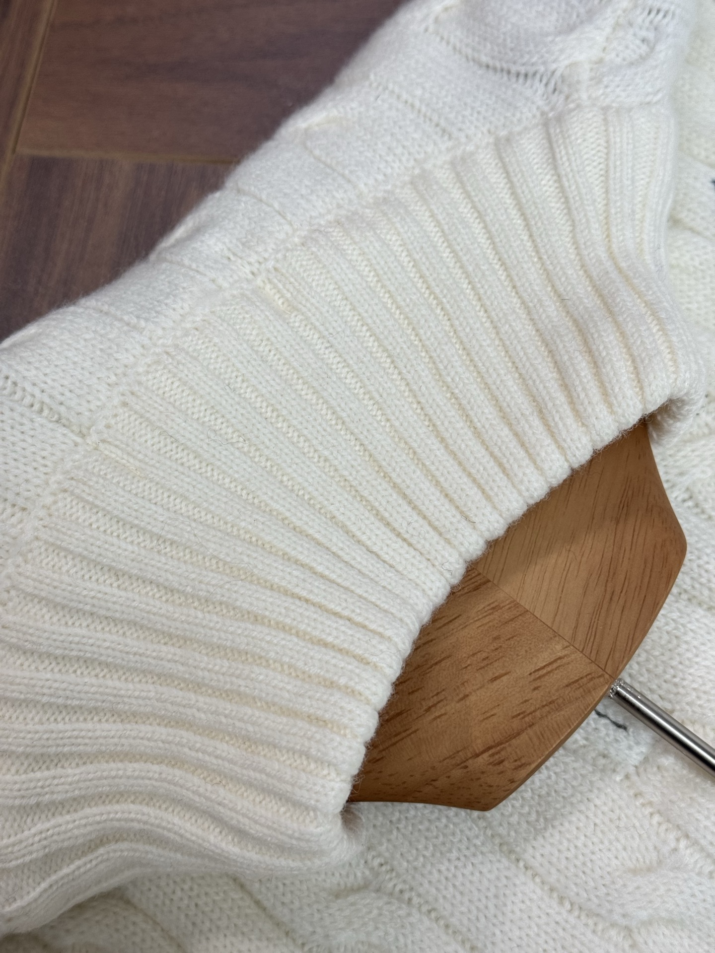 毛衣表面采用绞花编结工艺,呈现出丰富的纹理,增加了视觉上的层次感和立体感,让毛衣更具质感和设计感。