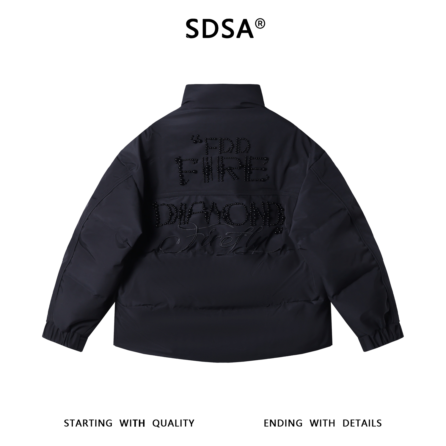 H918SDSA秋冬新款痞帅男装美式珠子刺绣字母拉链立领羽绒服外套百搭