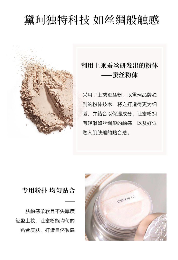 请作为基础彩妆的最后步骤来上妆。使用时请用粉扑按住网膜口,将容器倒置取粉。在手背上适度调节使用量,以画螺旋的方式均匀涂展于肌肤。