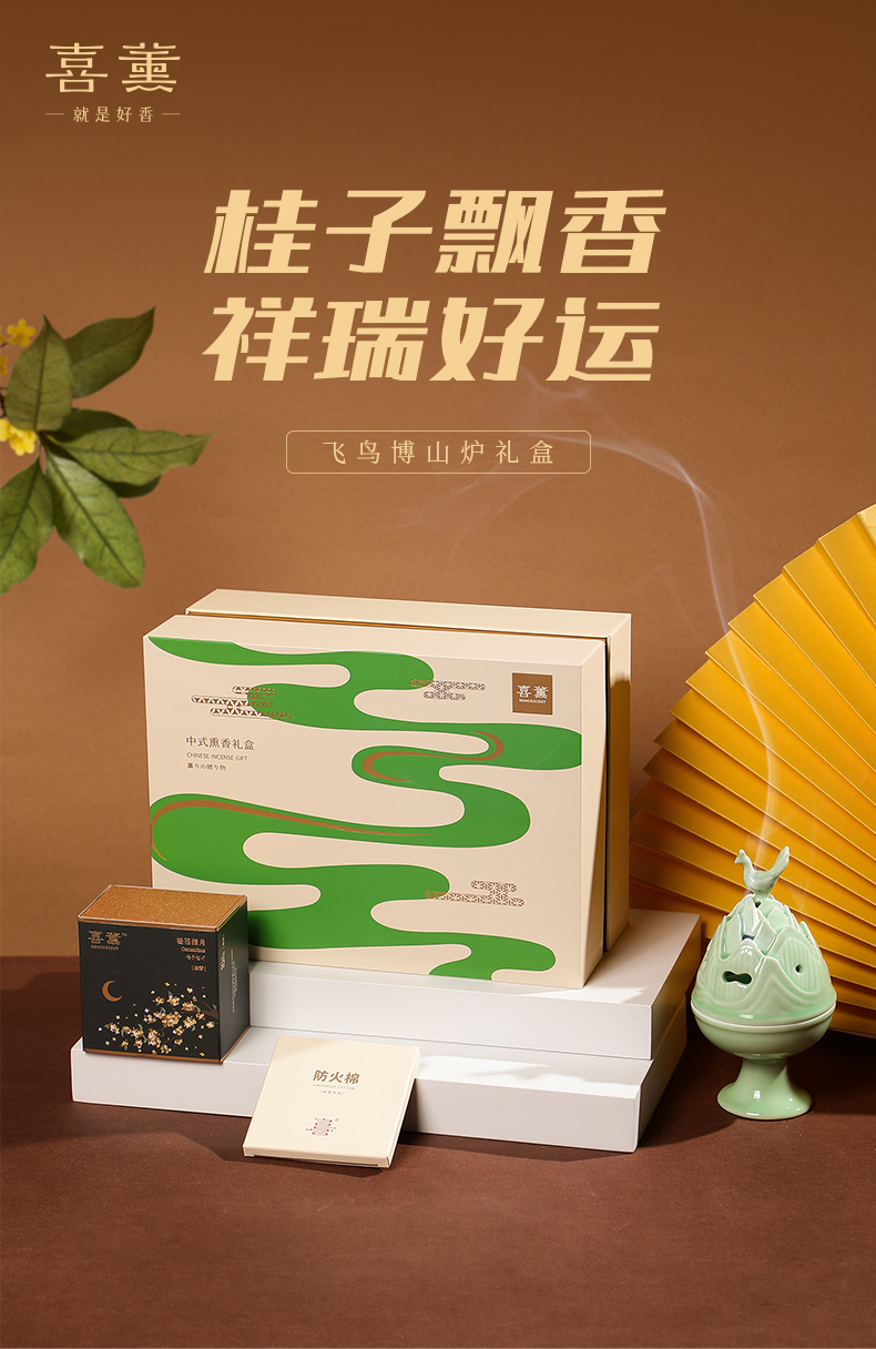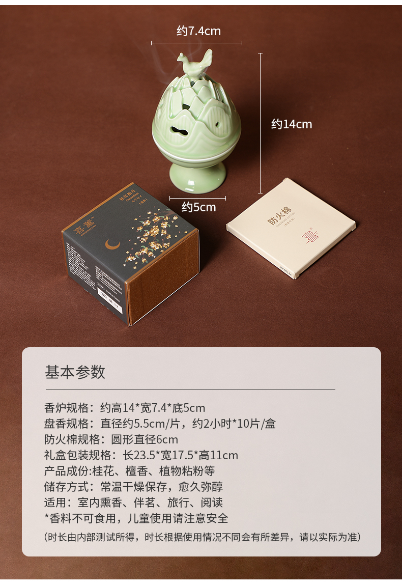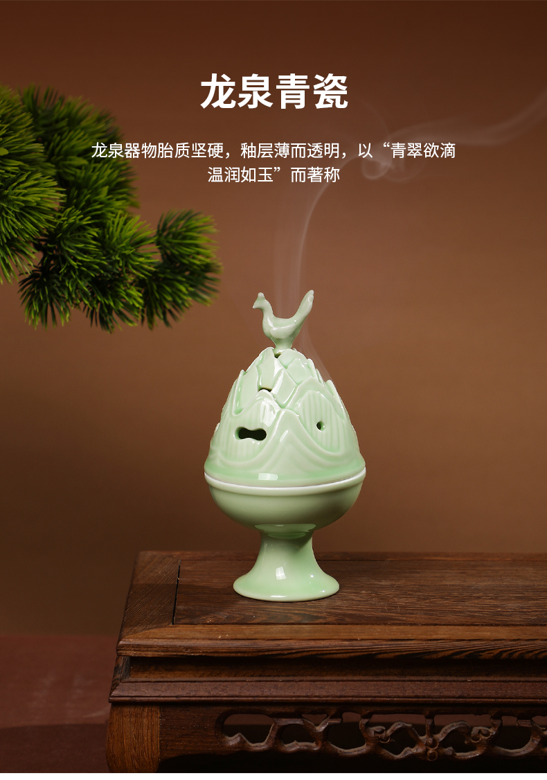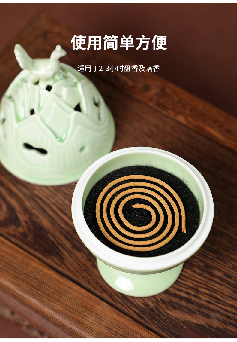 喜薰飞鸟博山家用室内龙泉青瓷盘香炉天然桂花盘香香薰炉套装礼物