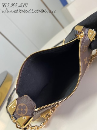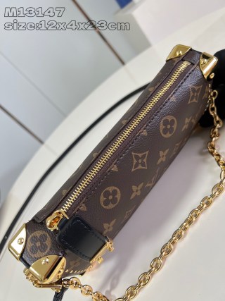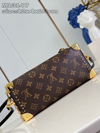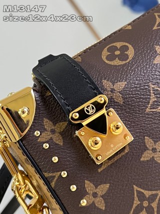 Slim Trunk 手袋以优雅之姿亮相 2025 Cruise 早春秀场,为经典 Trunk 手袋系列再添新成员。Monogram 帆布、Monogram Reverse 帆布和光滑牛皮革饰边巧妙融合,彰显 Nicolas Ghesquière 的标志性笔触,S-lock 锁扣和金属铆钉致敬 Trunk 系列的悠久传统。12 x 4 x 23 厘米 (高 x 宽 x 长度)