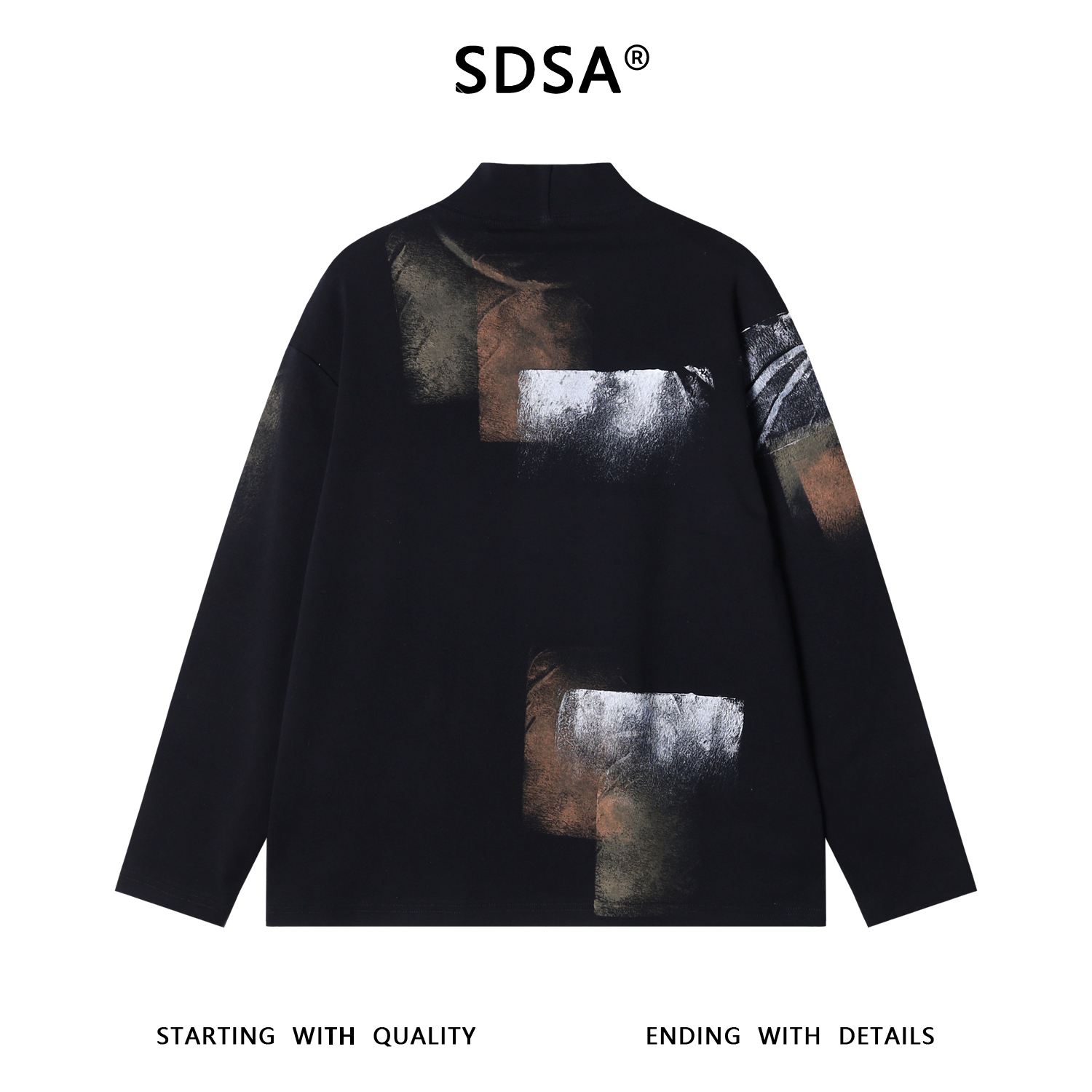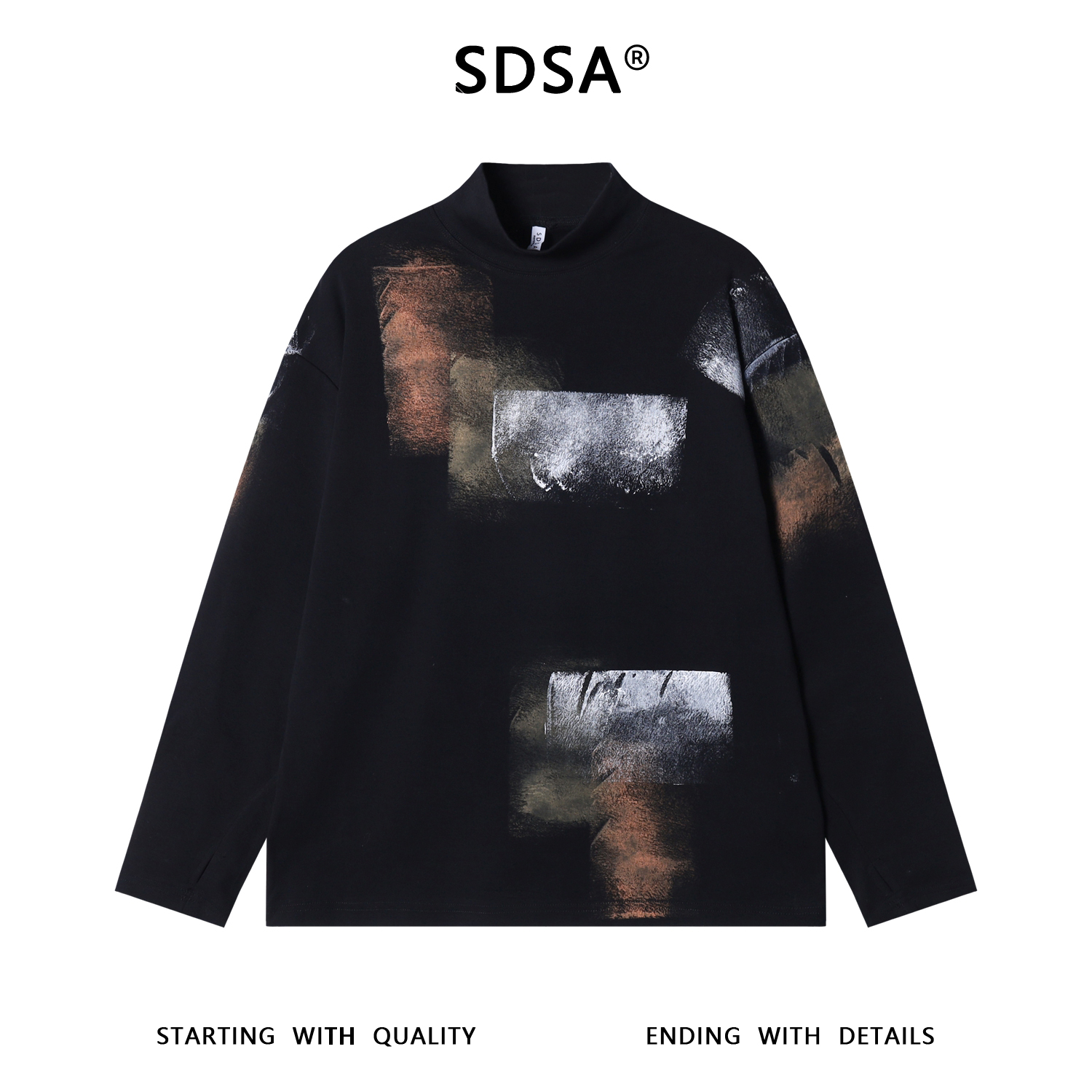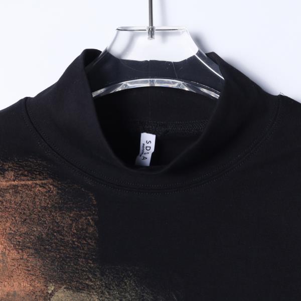 T4909SDSA男士秋冬新款痞帅男装街头泼墨十字印花半高领长袖T恤百搭潮