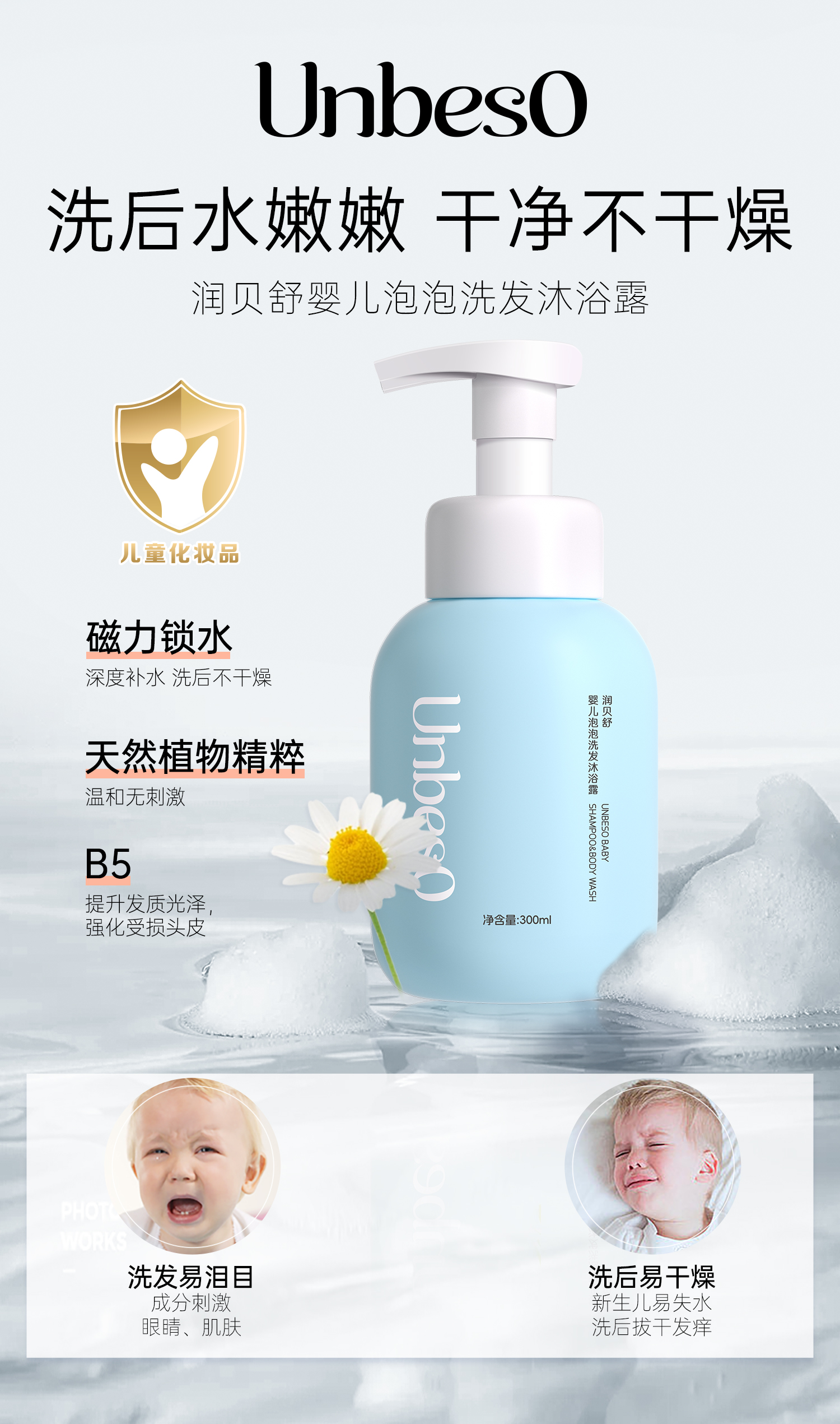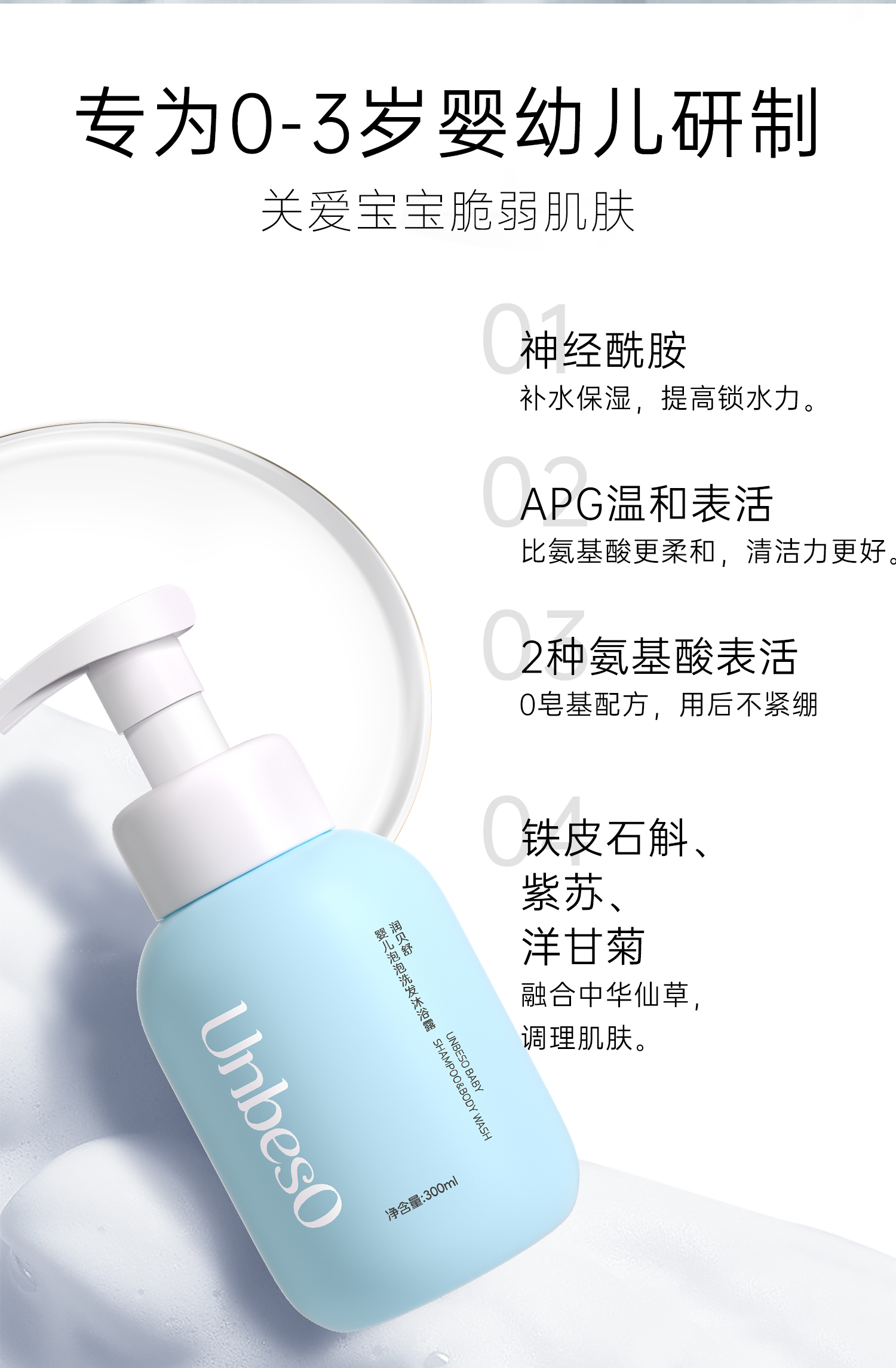 润贝舒新生婴儿洗头沐浴露二合一宝宝洗澡专用儿童洗发水幼儿泡泡300g