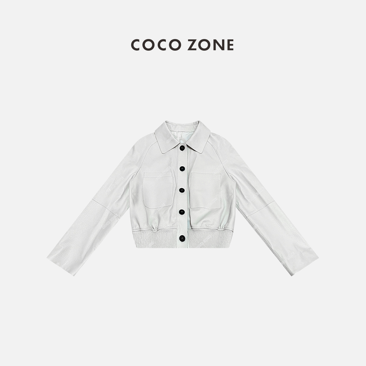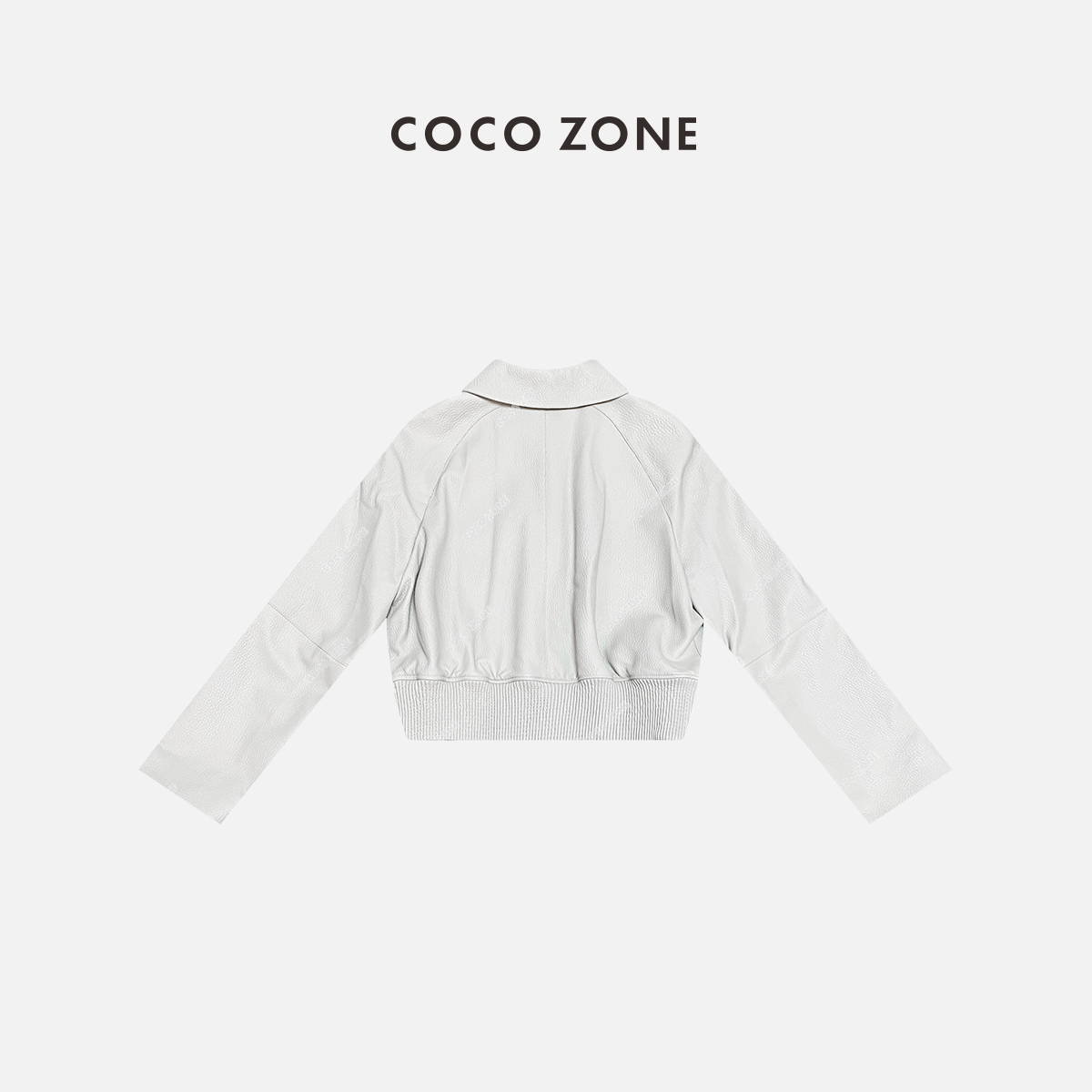 COCO ZONE真羊皮高级感polo领皮衣排扣松紧外套23C29538