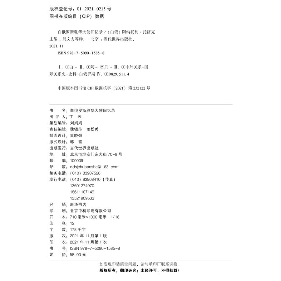 2.从白俄罗斯大使的视角回顾两国关系,时间跨度近30年,涉及领域广泛,其视角之独特、内容之丰富、史料之重要、可读性之浓郁,在目前涉中白关系图书中尚属罕见