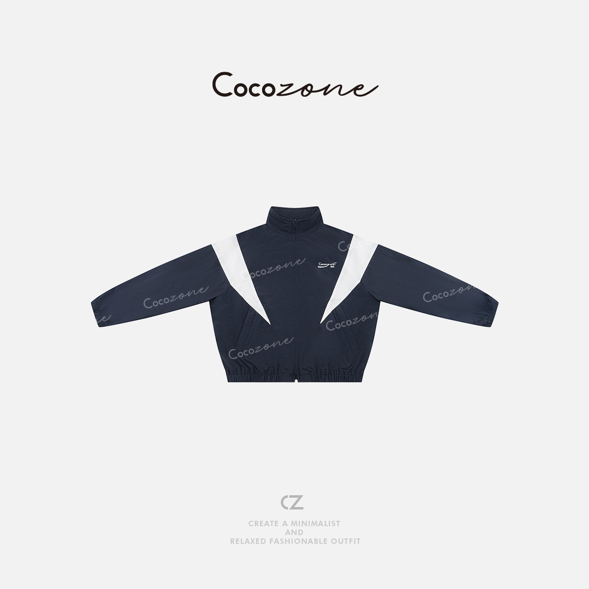COCO ZONE 刘一一 2025春季美式撞色拼接休闲立领外套CD2A0050