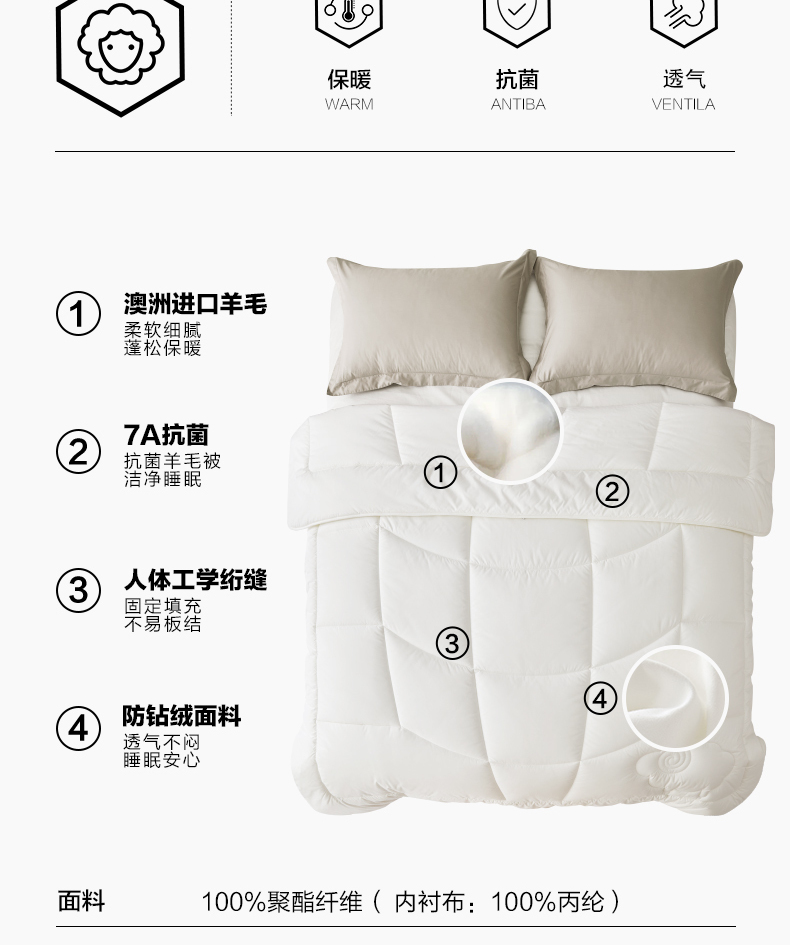 水星集团出品 百丽丝BLISS 澳洲进口羊毛 春秋被 冬被