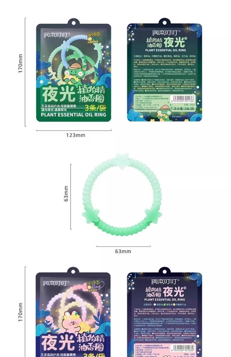 润本叮叮植物精油香圈香茅香型夜光款(恐龙王国3条+森林王国3条)