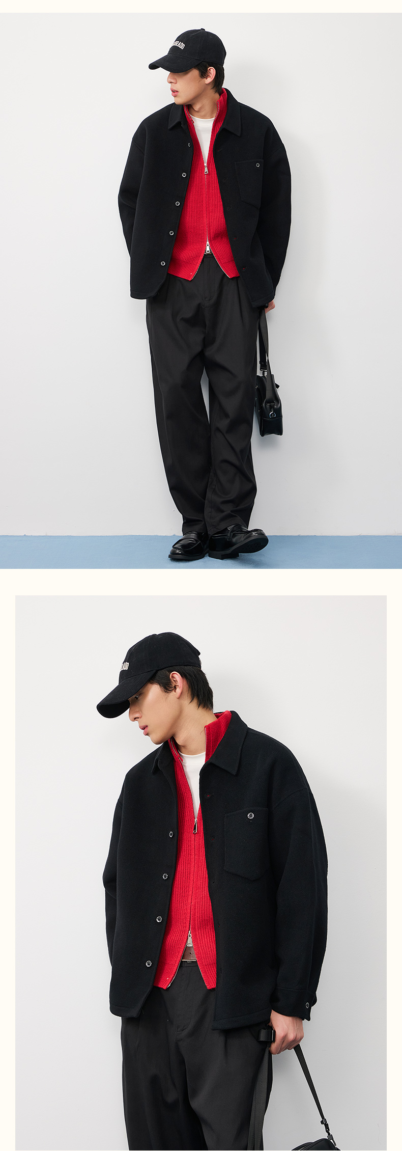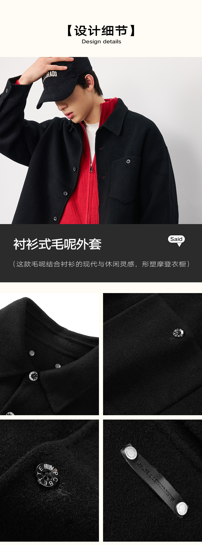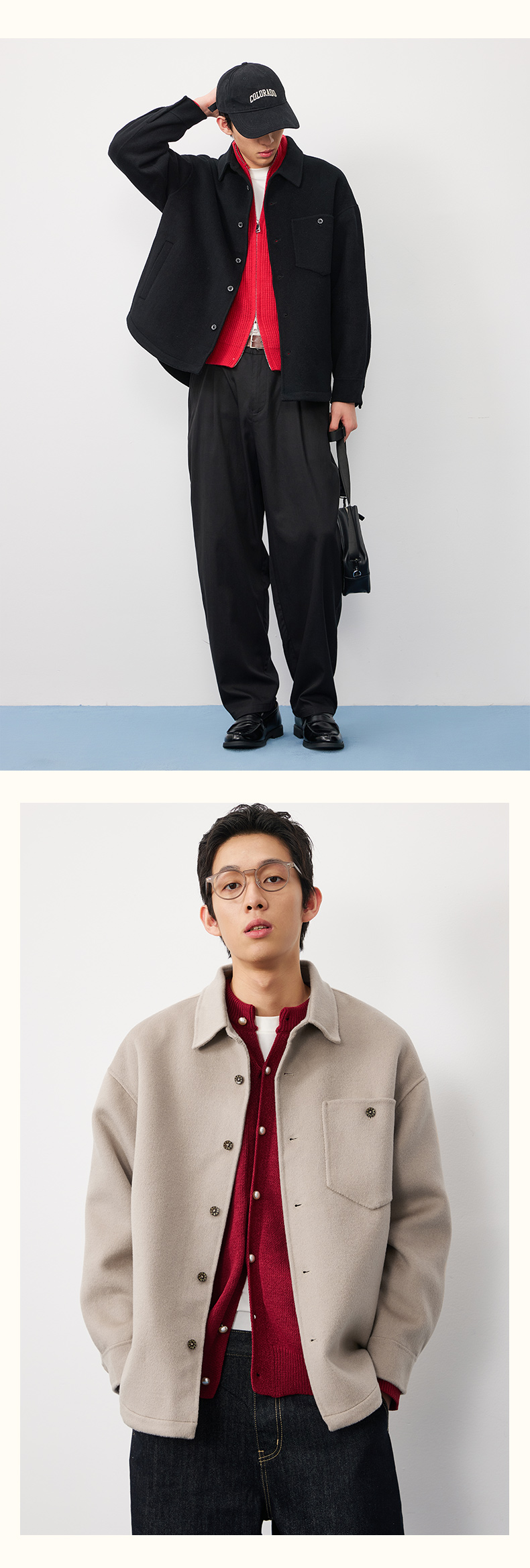 NPC潮牌100%绵羊毛口袋衬衫毛呢外套男落肩翻领挺阔秋冬NP57WC42