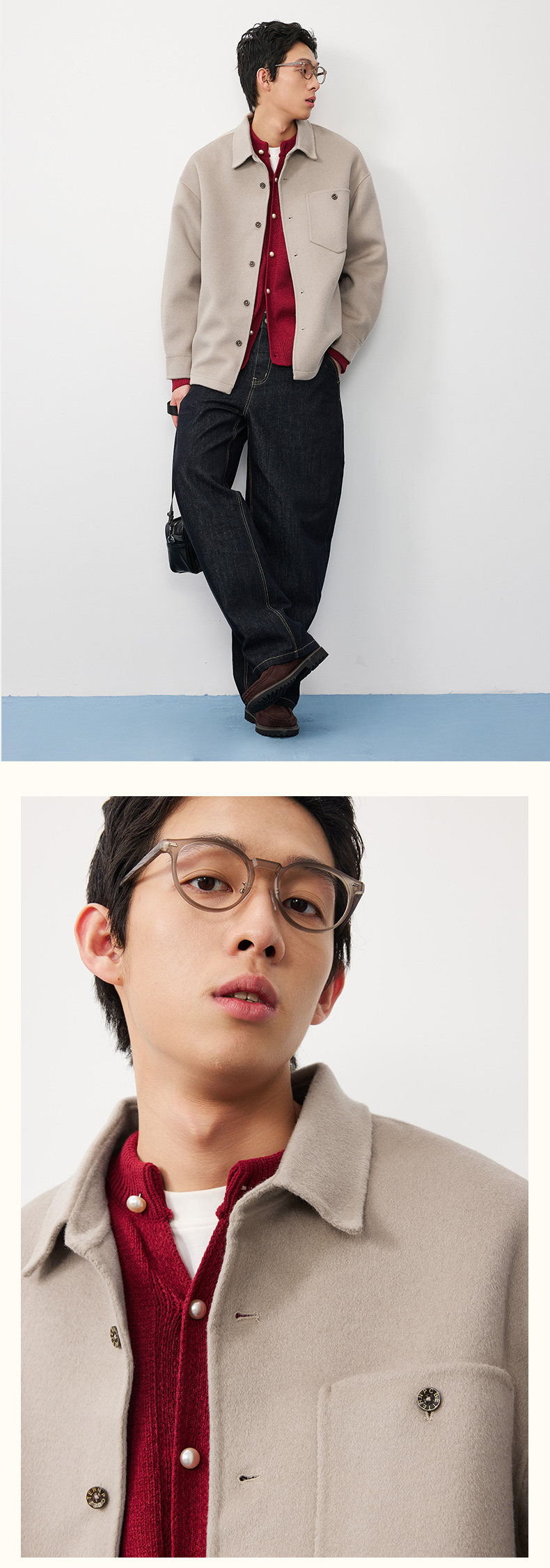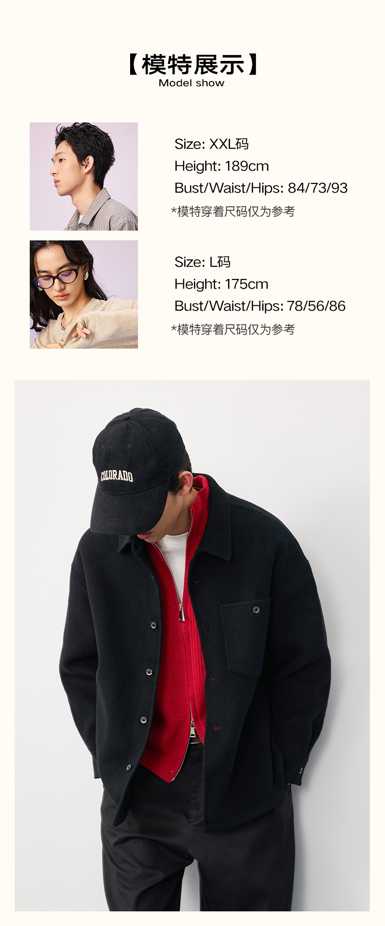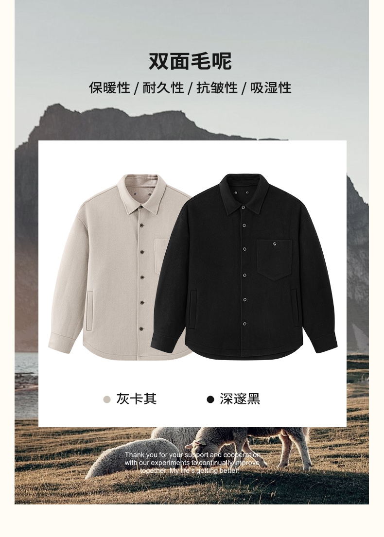 NPC潮牌100%绵羊毛口袋衬衫毛呢外套男落肩翻领挺阔秋冬NP57WC42