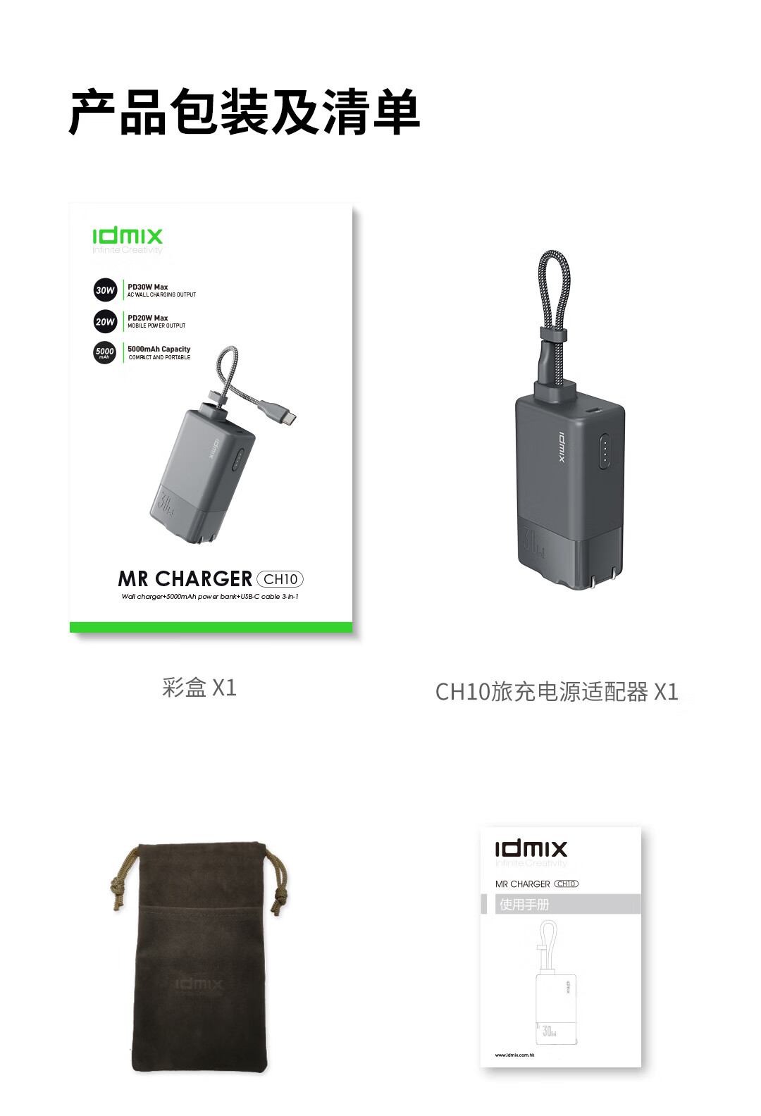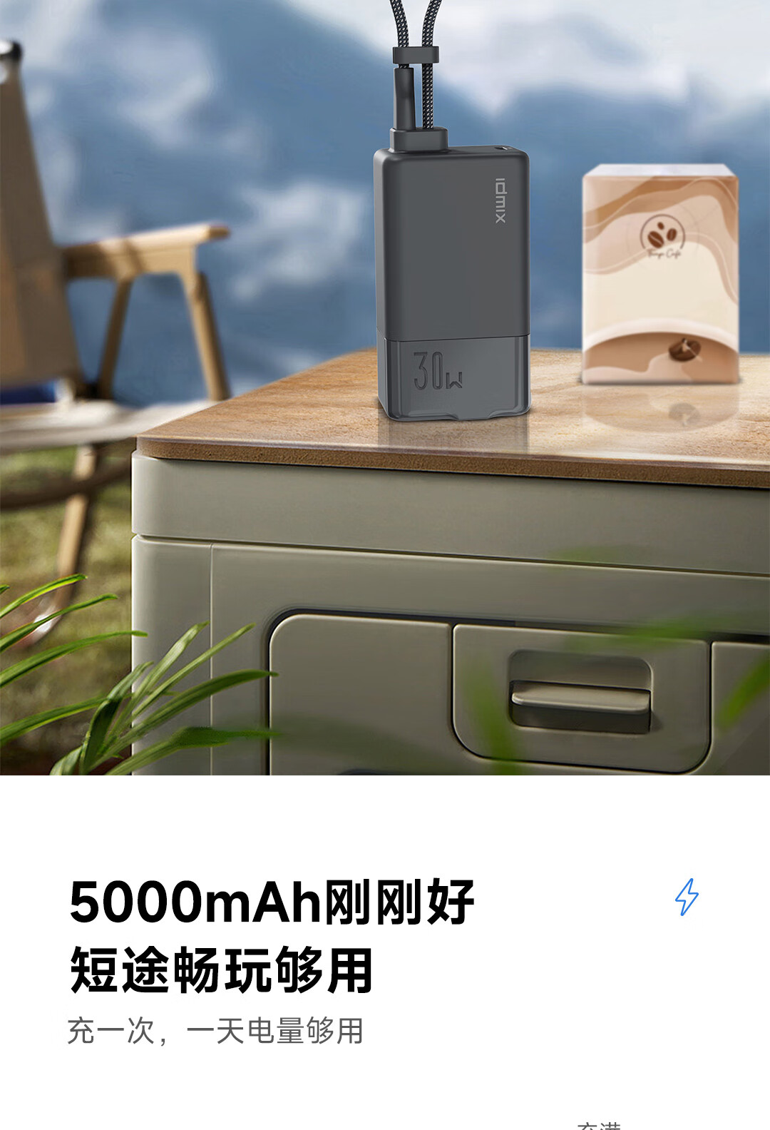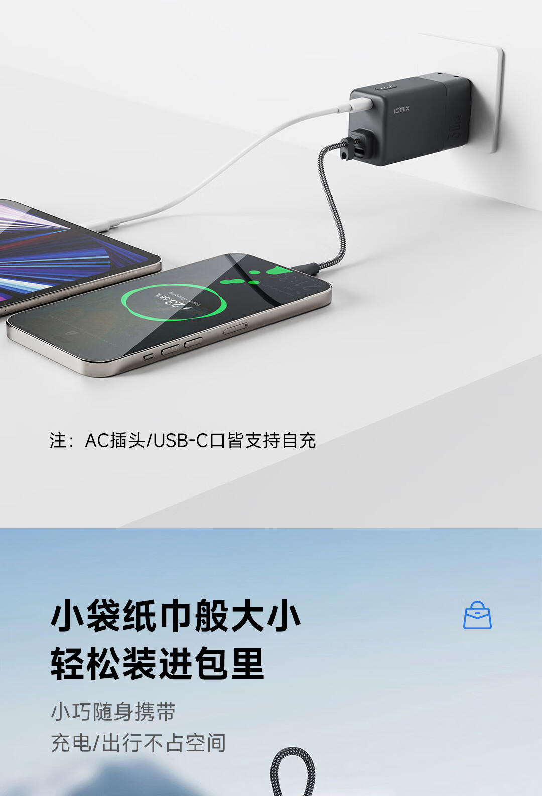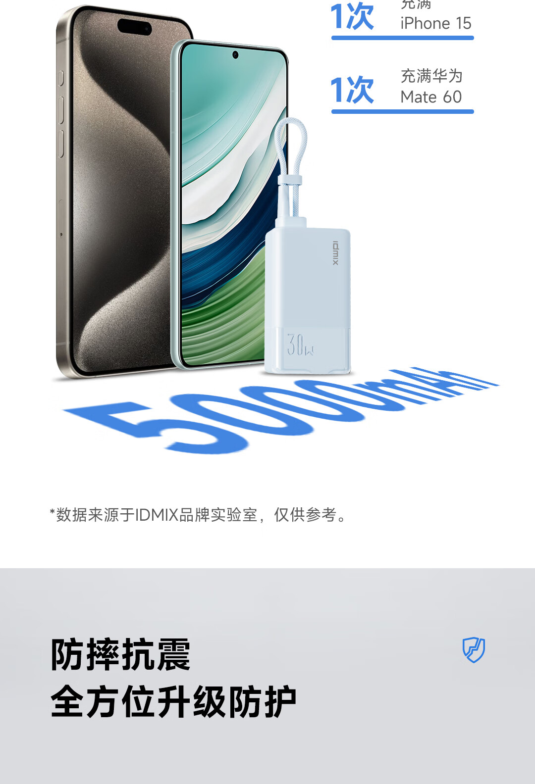 IDMIX 充电宝充电器自带线type-c充电头三合一30W快充 CH10 蓝色