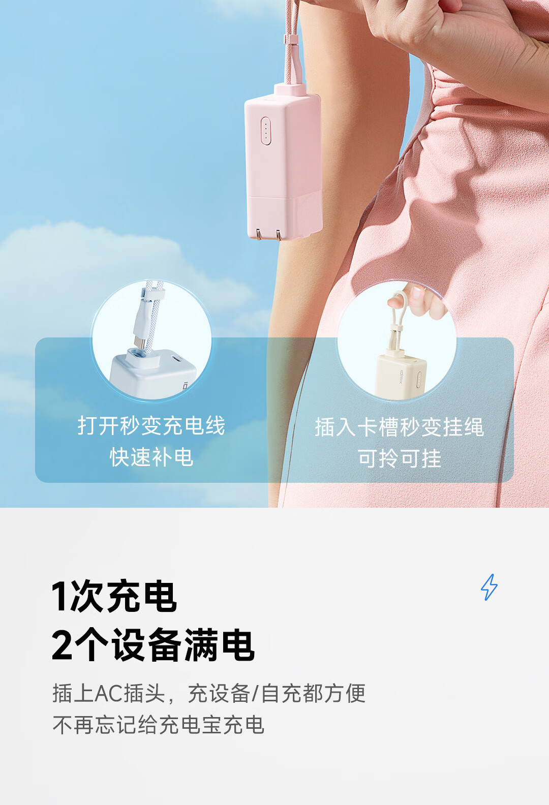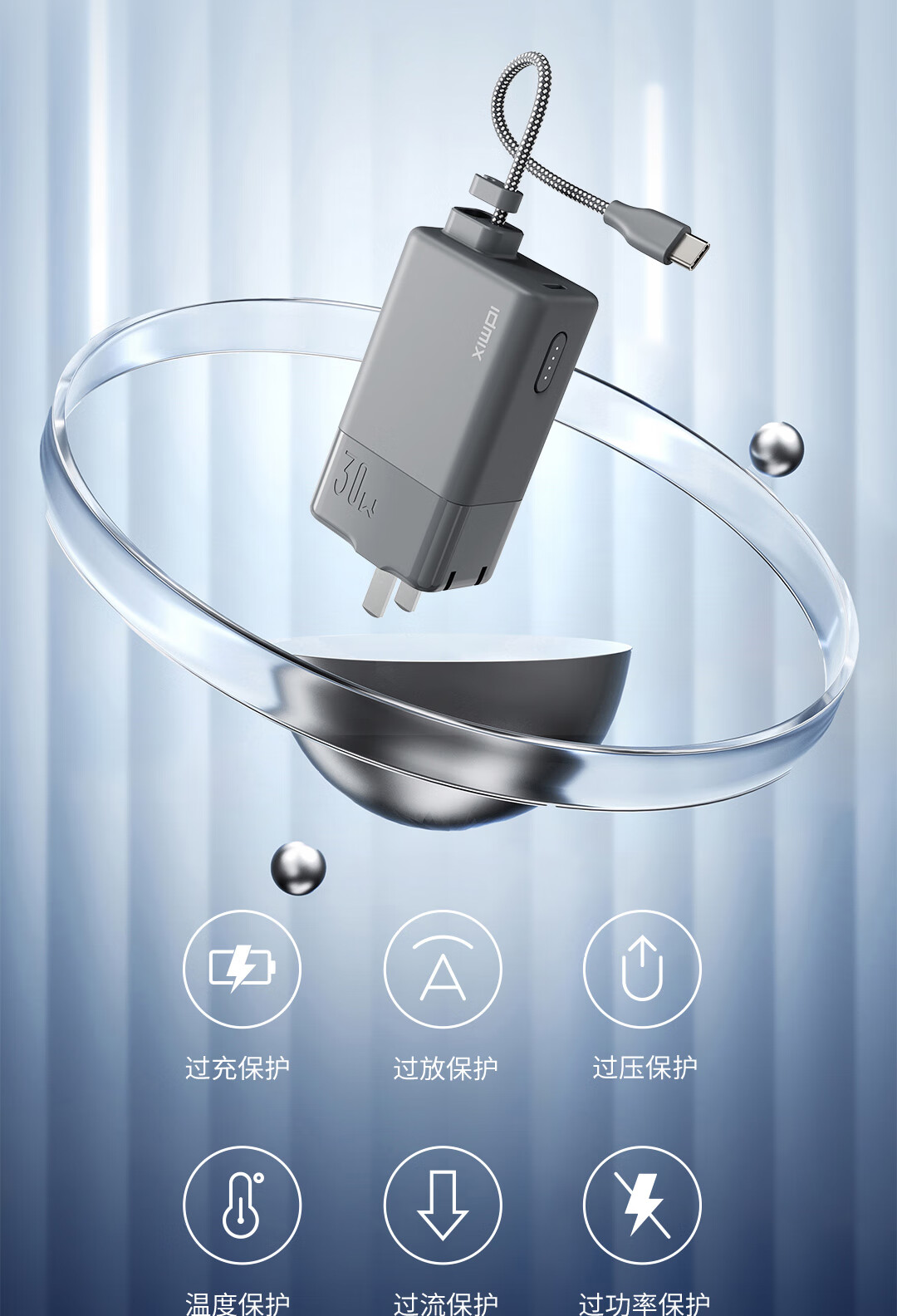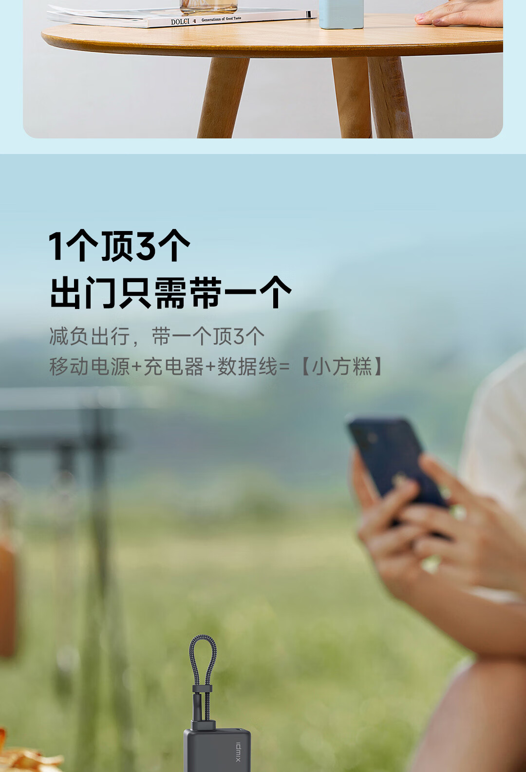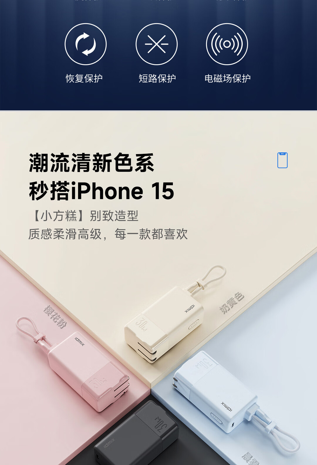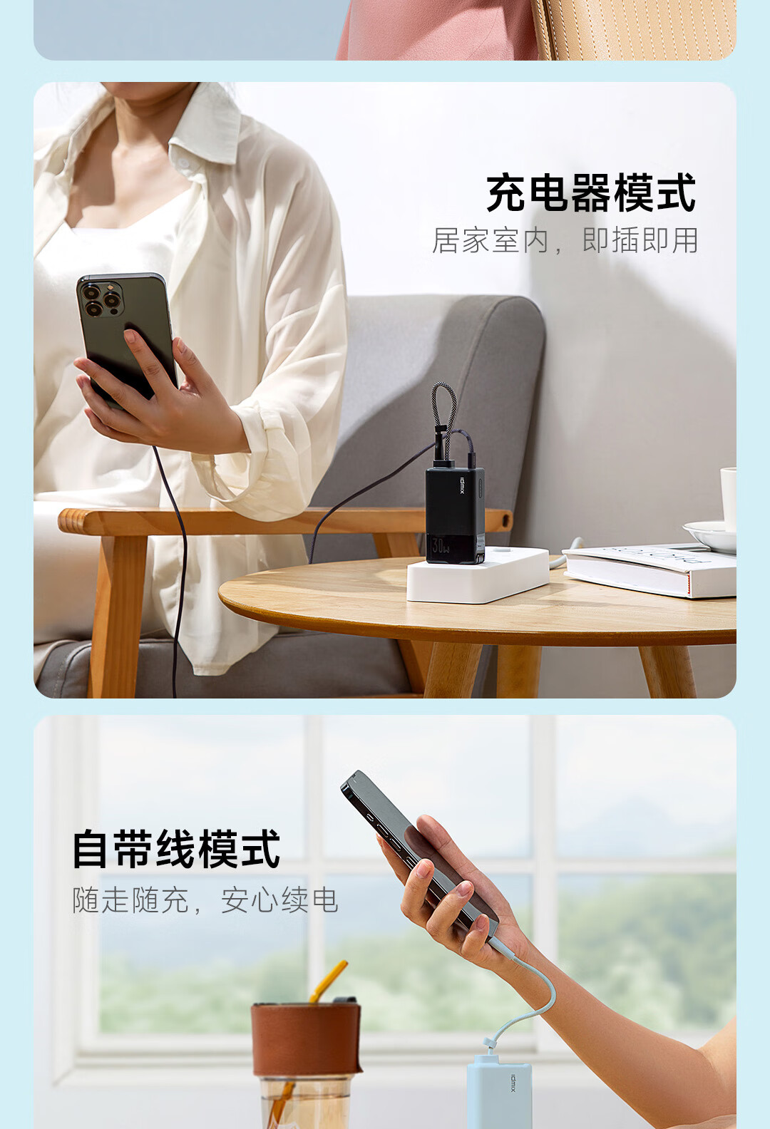 IDMIX 充电宝充电器自带线type-c充电头三合一30W快充 CH10 蓝色