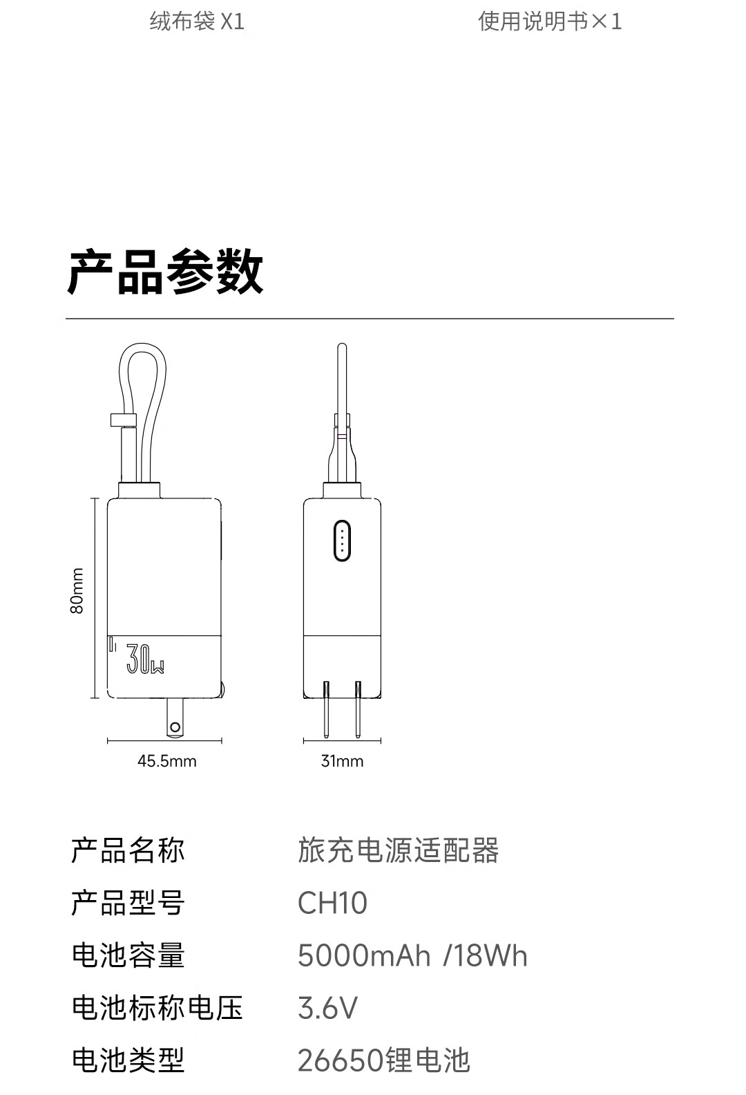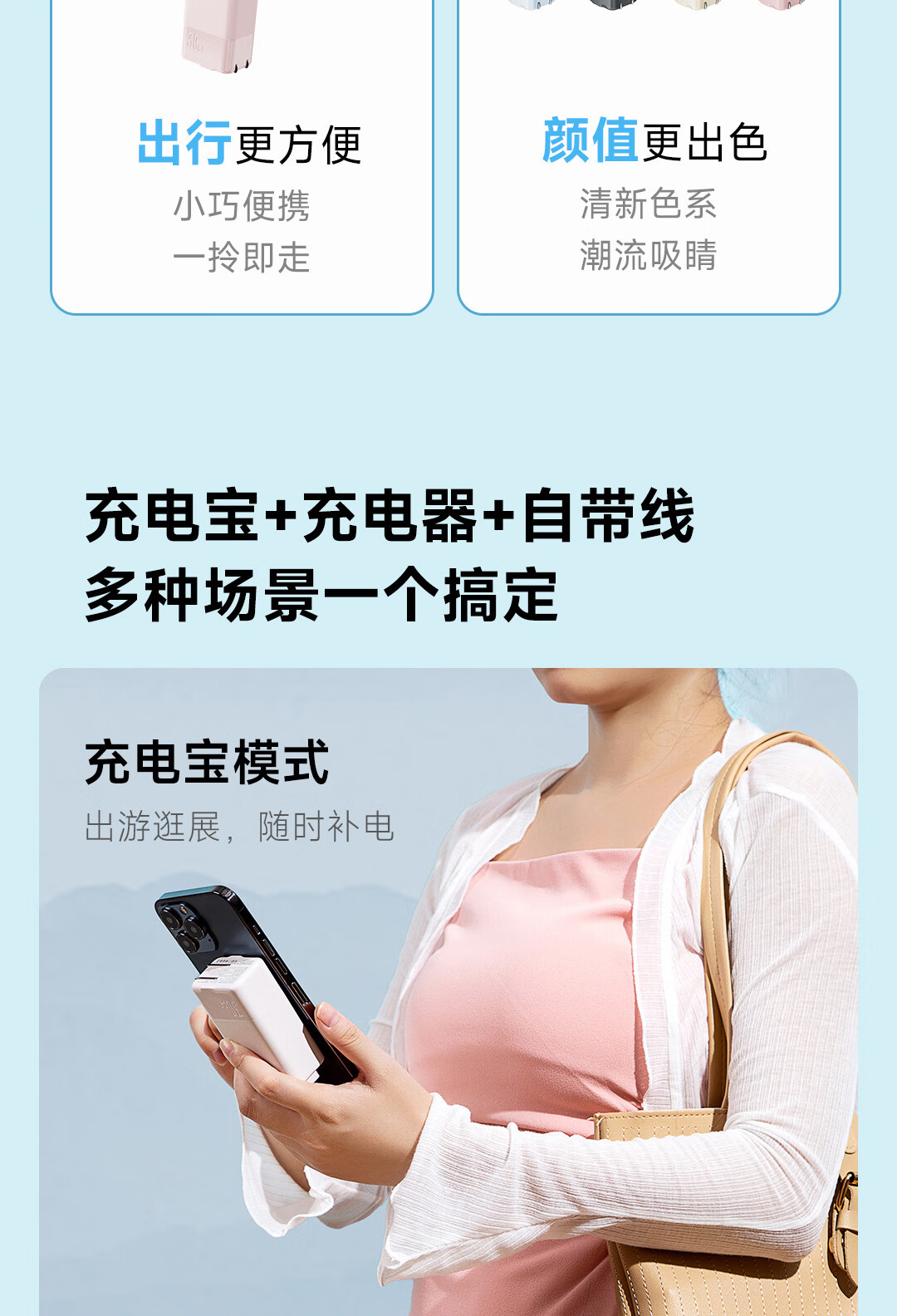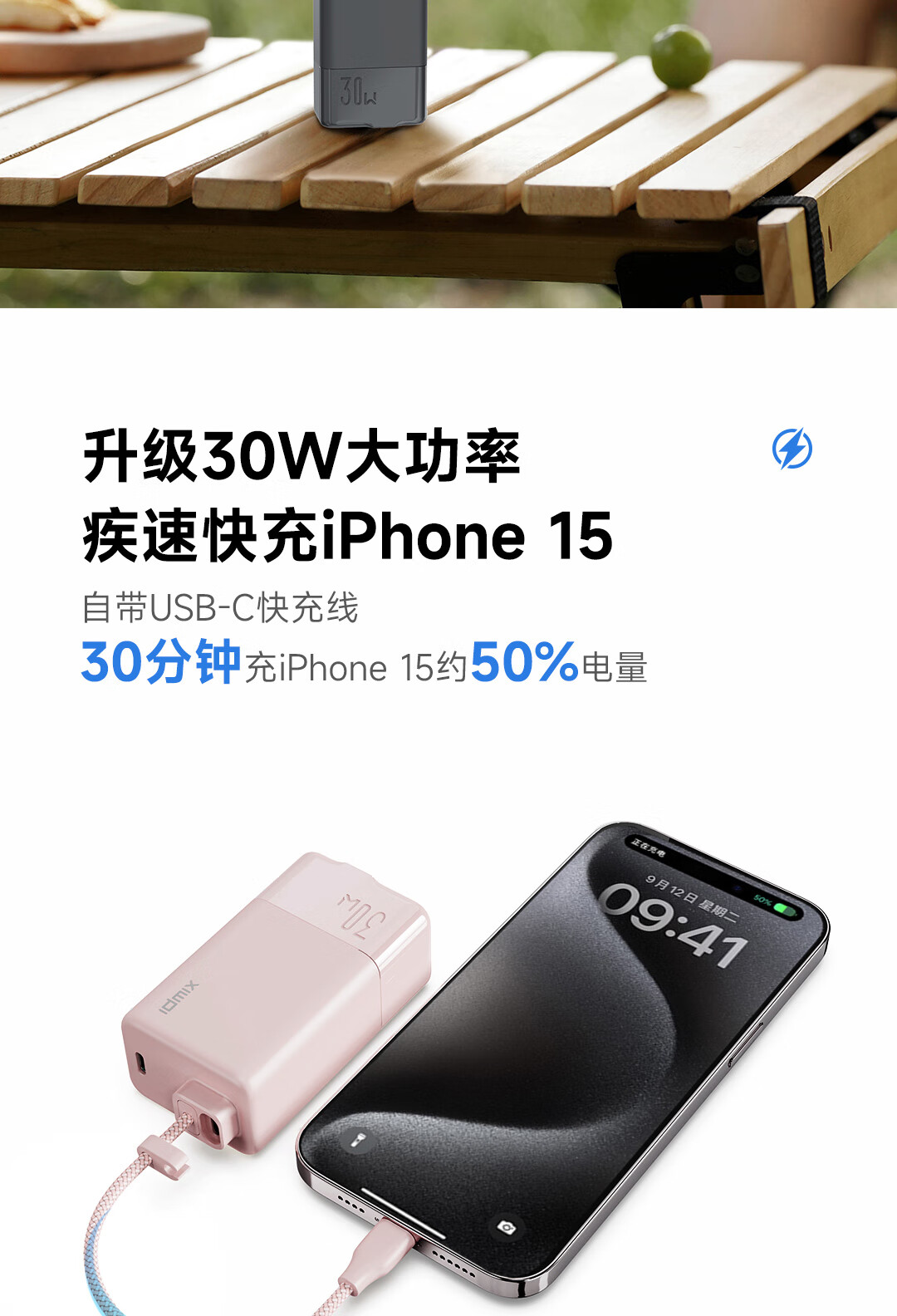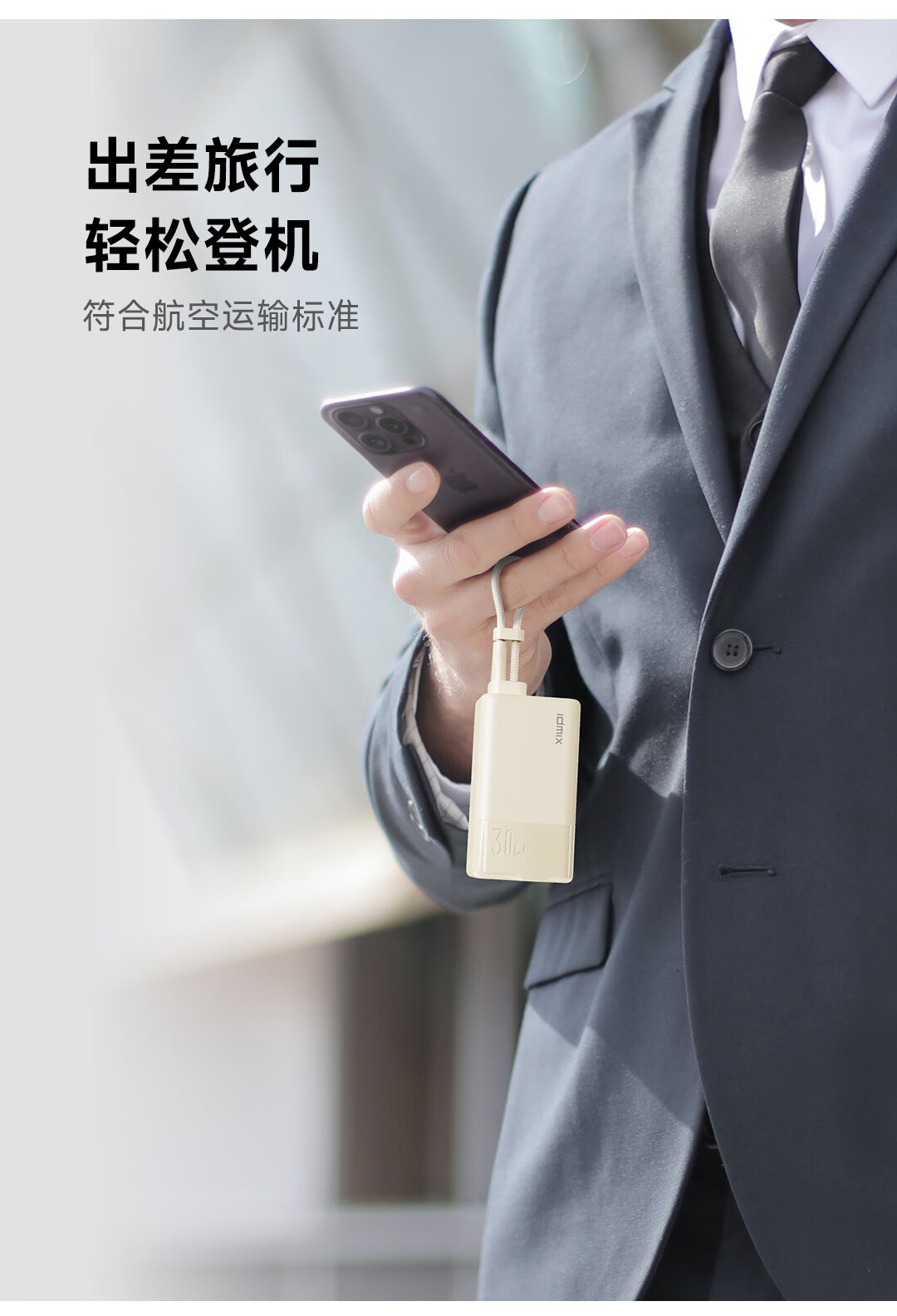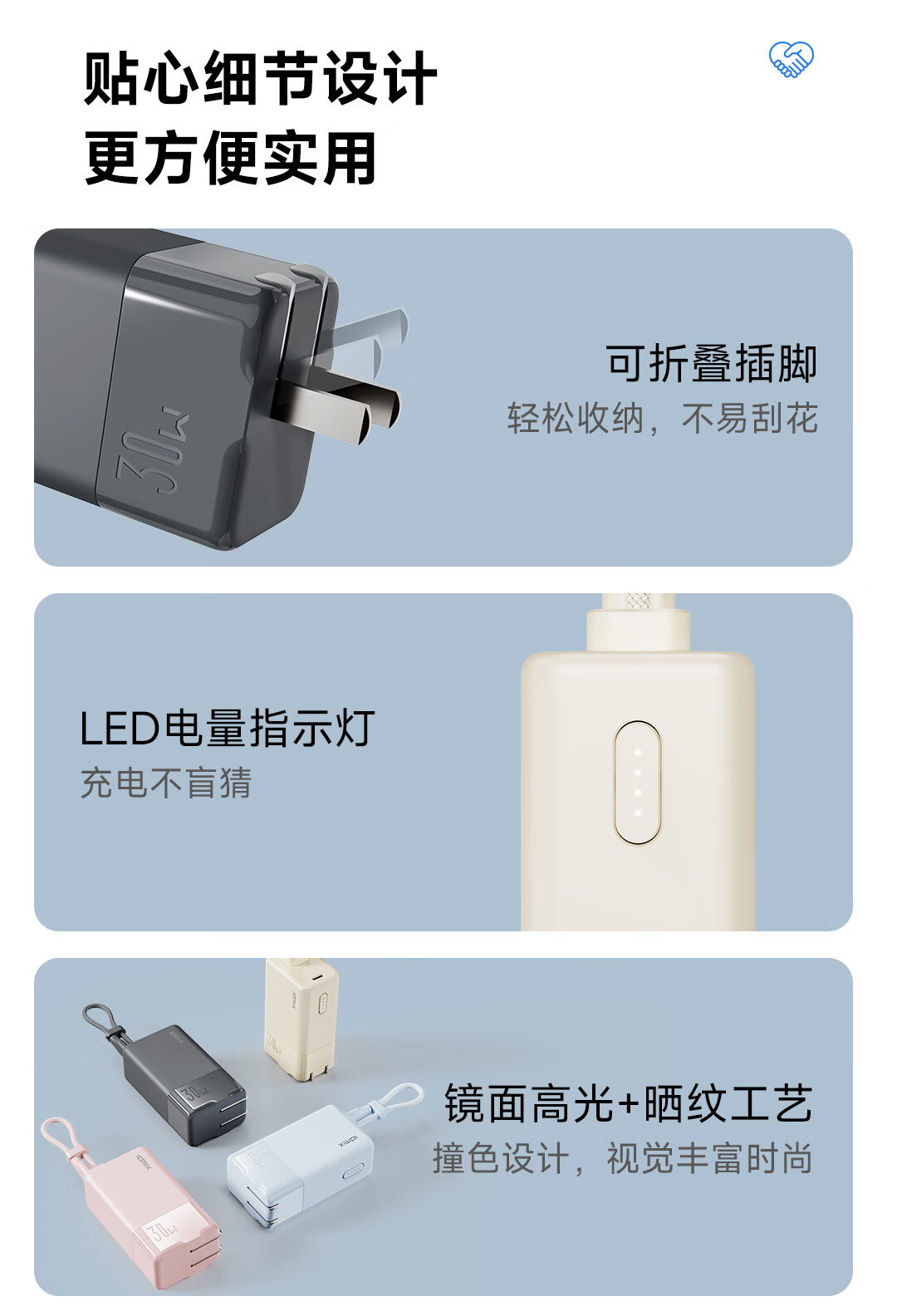 IDMIX 充电宝充电器自带线type-c充电头三合一30W快充 CH10 蓝色
