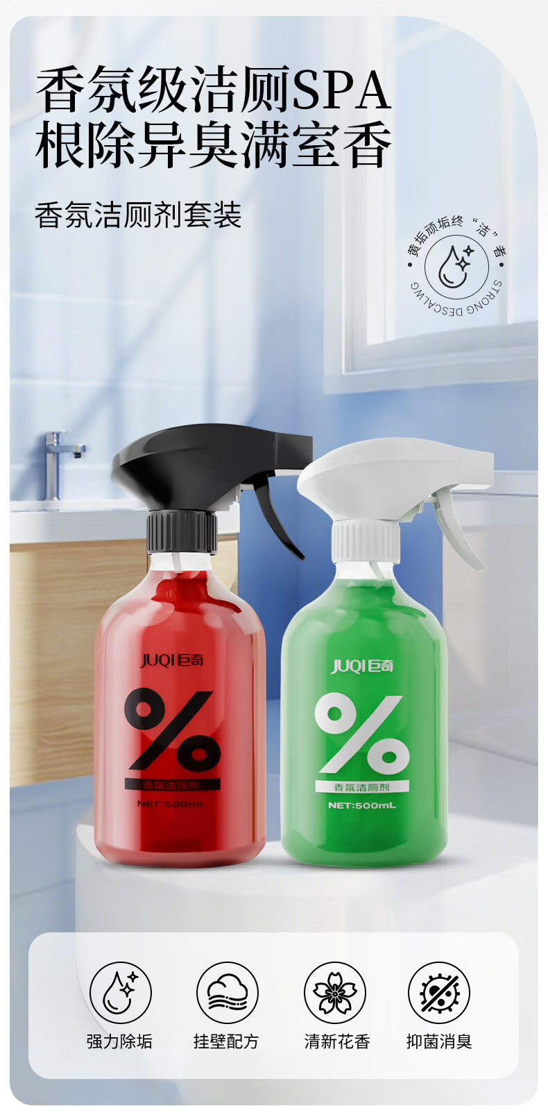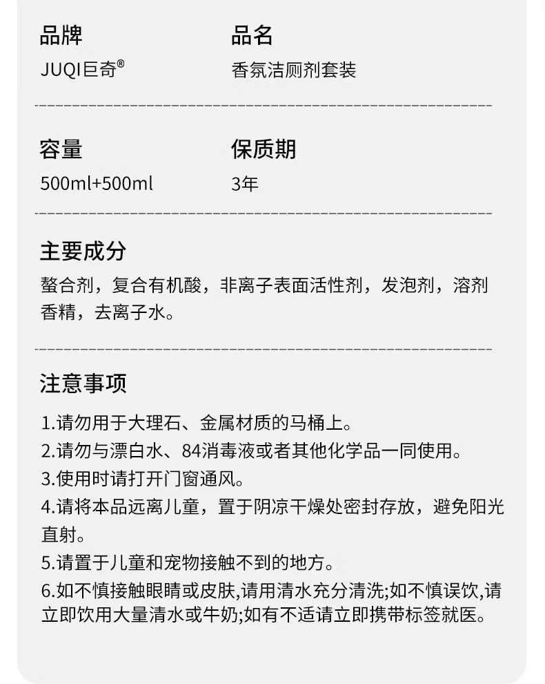 巨奇-马桶香氛清洁剂栀子花+玫瑰花500ml*2瓶套装