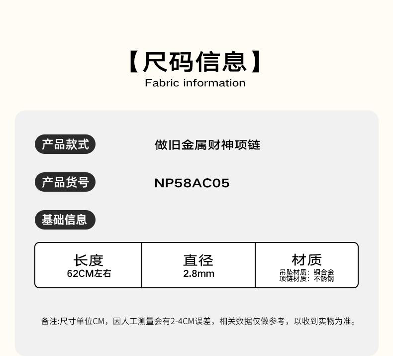 合金项链 NPC潮牌16周年限定发财元宝图案配饰做旧NP58AC05(06)