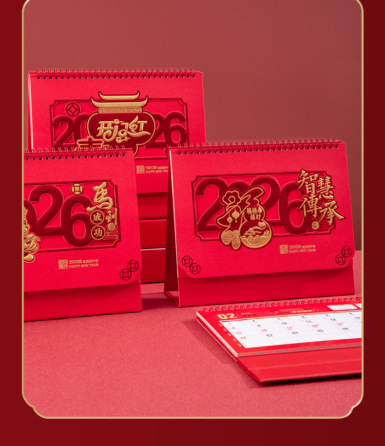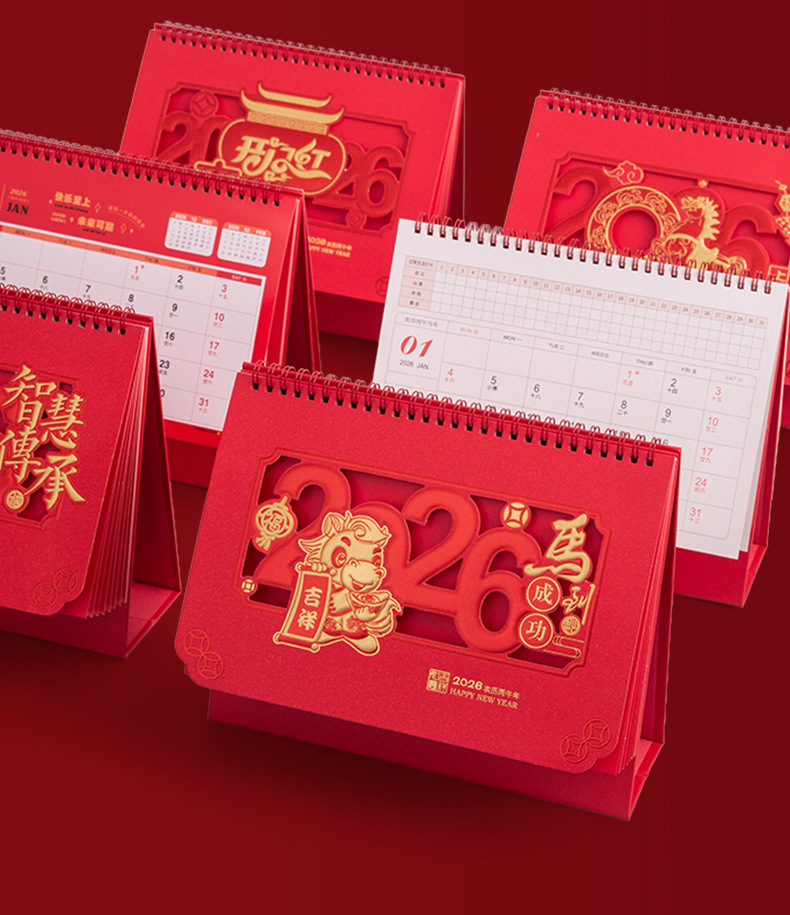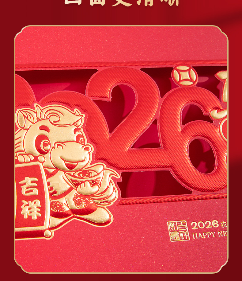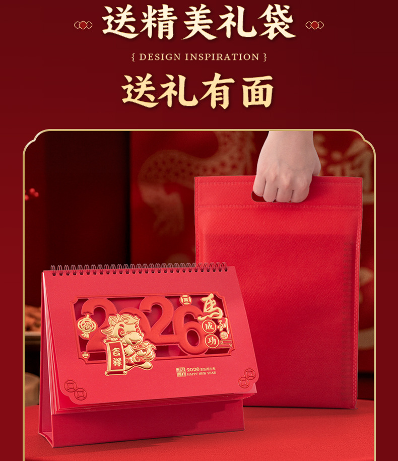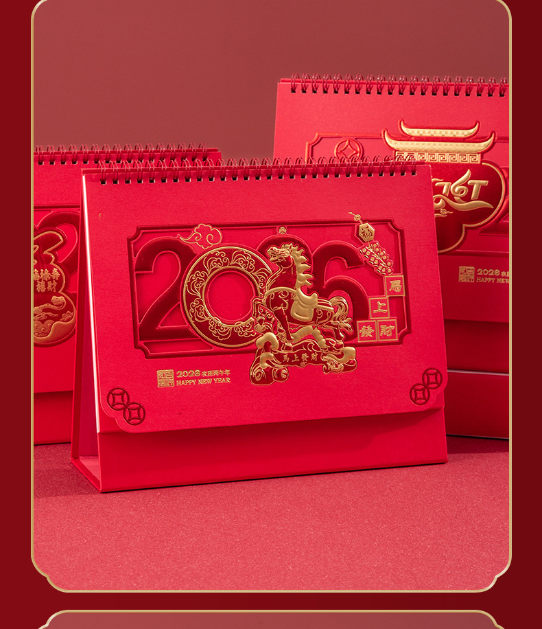 2026马年新款商务台历定制礼盒 马年喜庆镂空日历摆件 企业礼品 月历 大格子可记录 标记备注事件