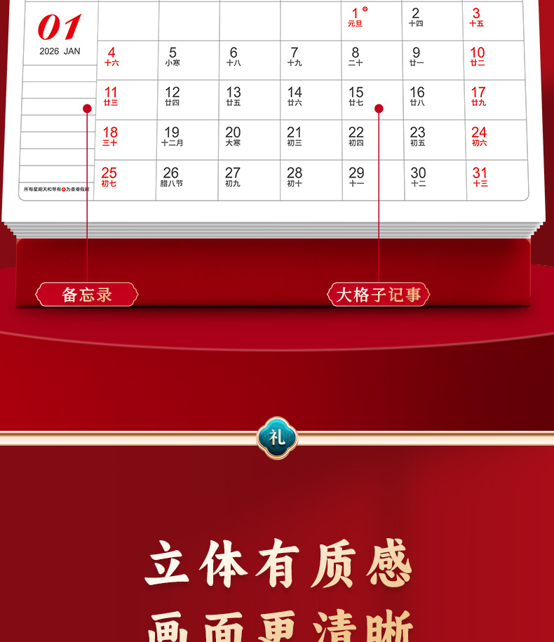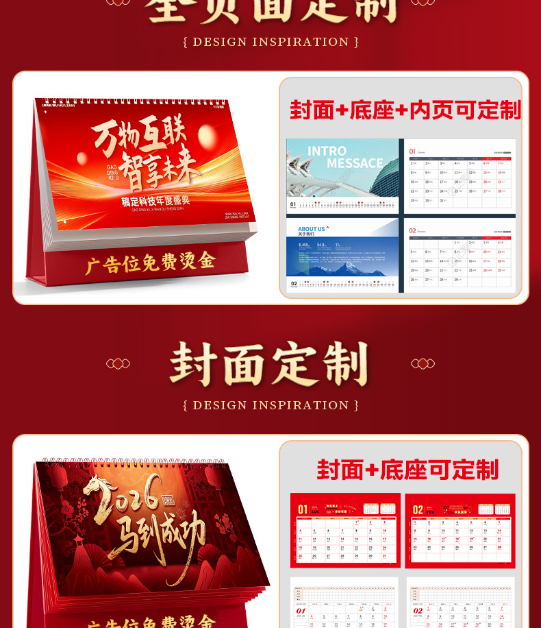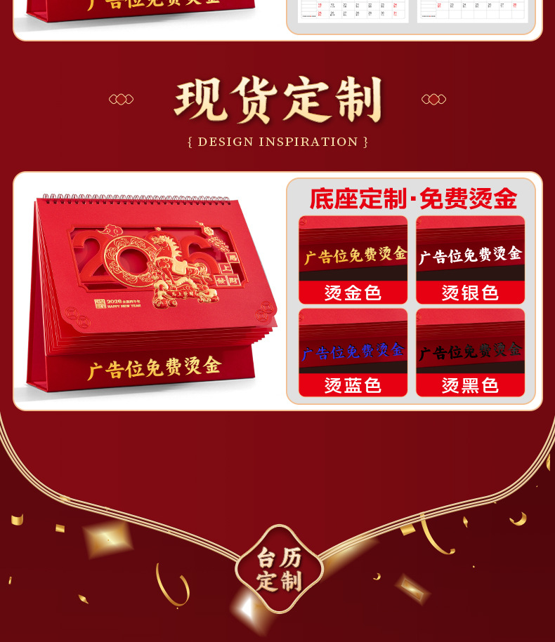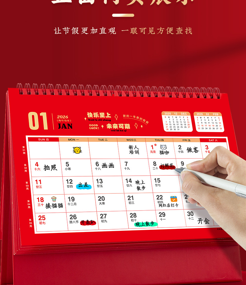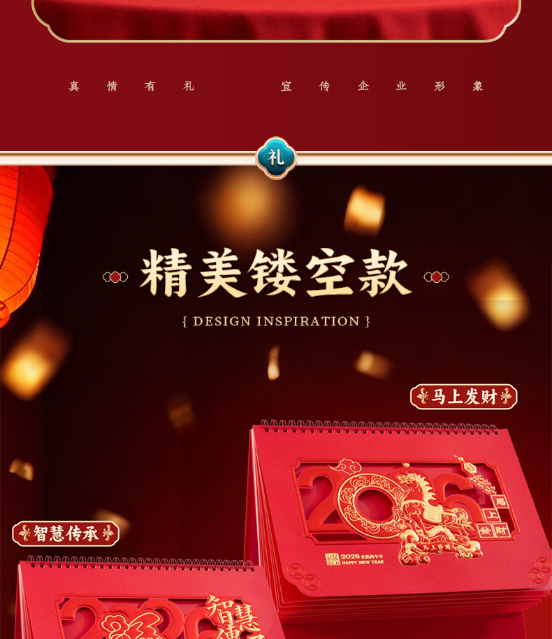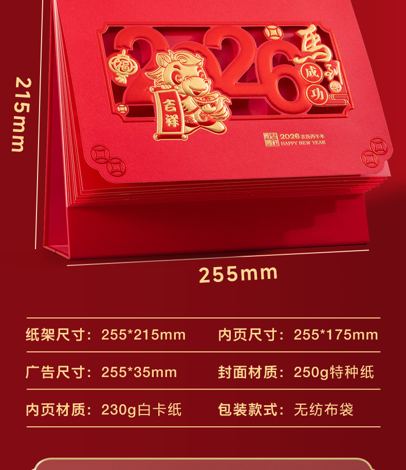 2026马年新款商务台历定制礼盒 马年喜庆镂空日历摆件 企业礼品 月历 大格子可记录 标记备注事件