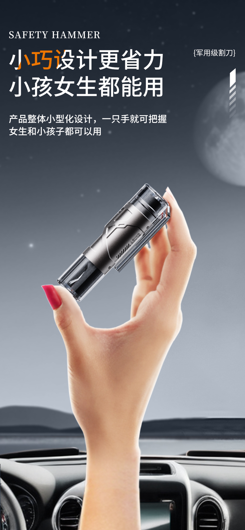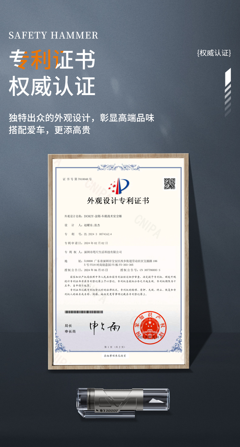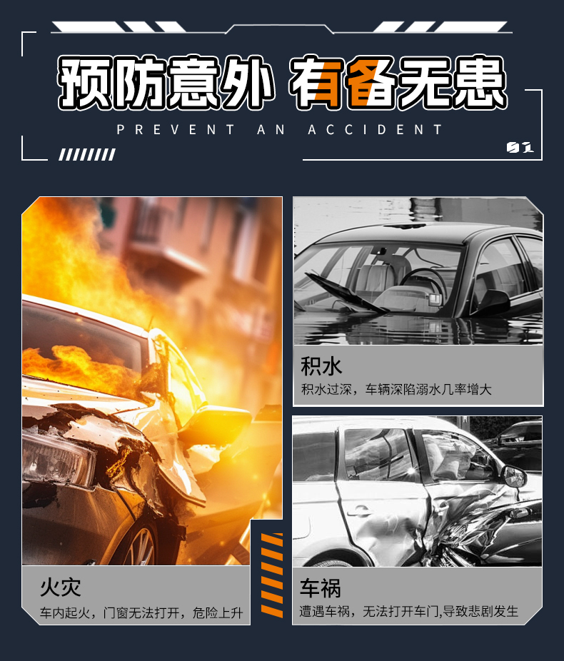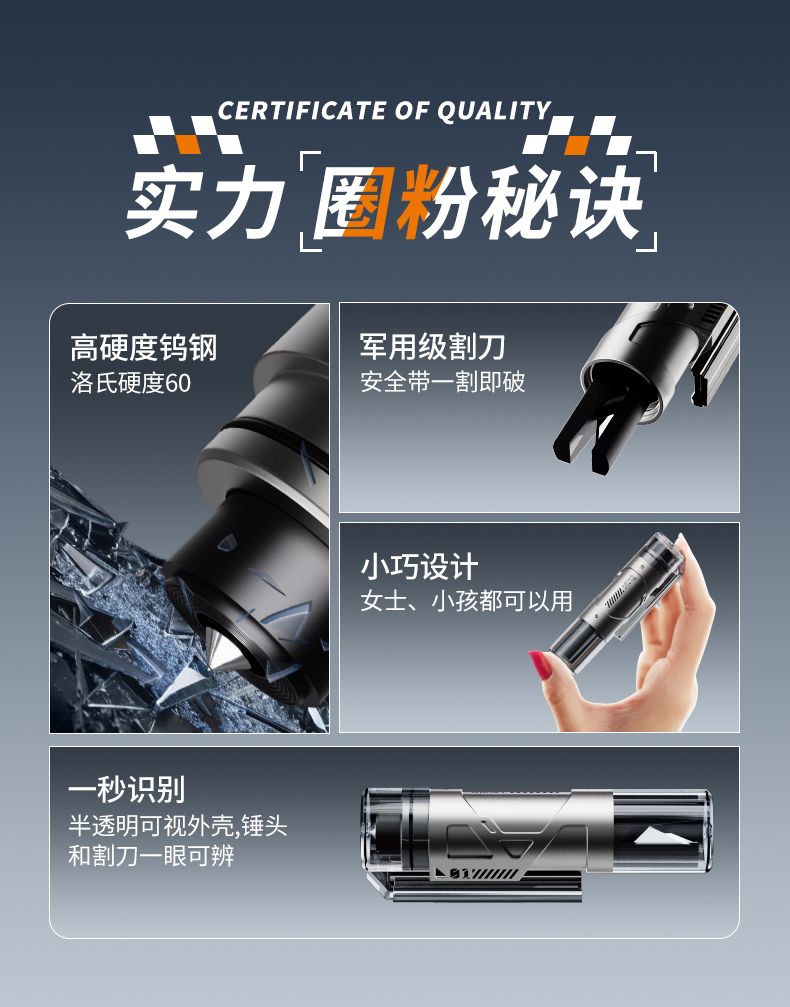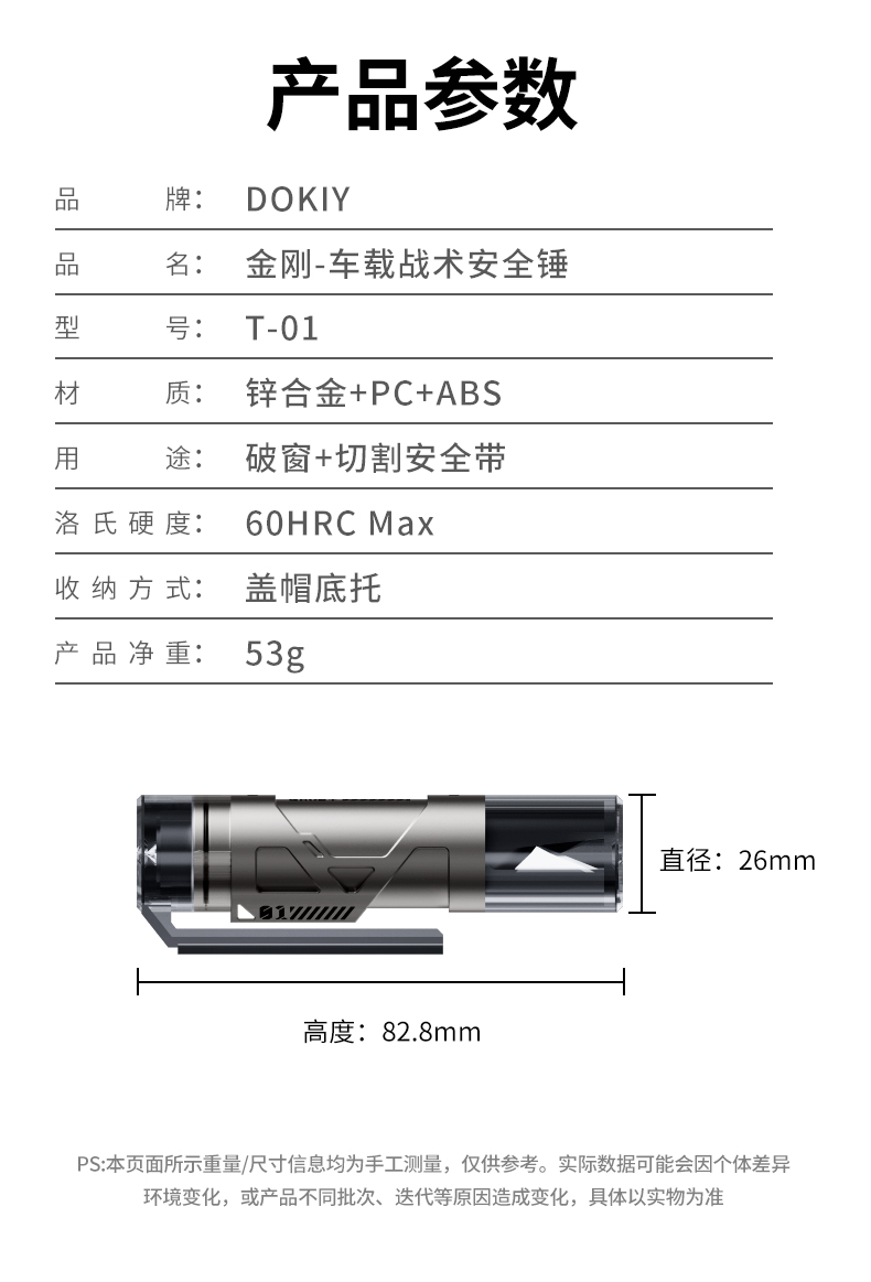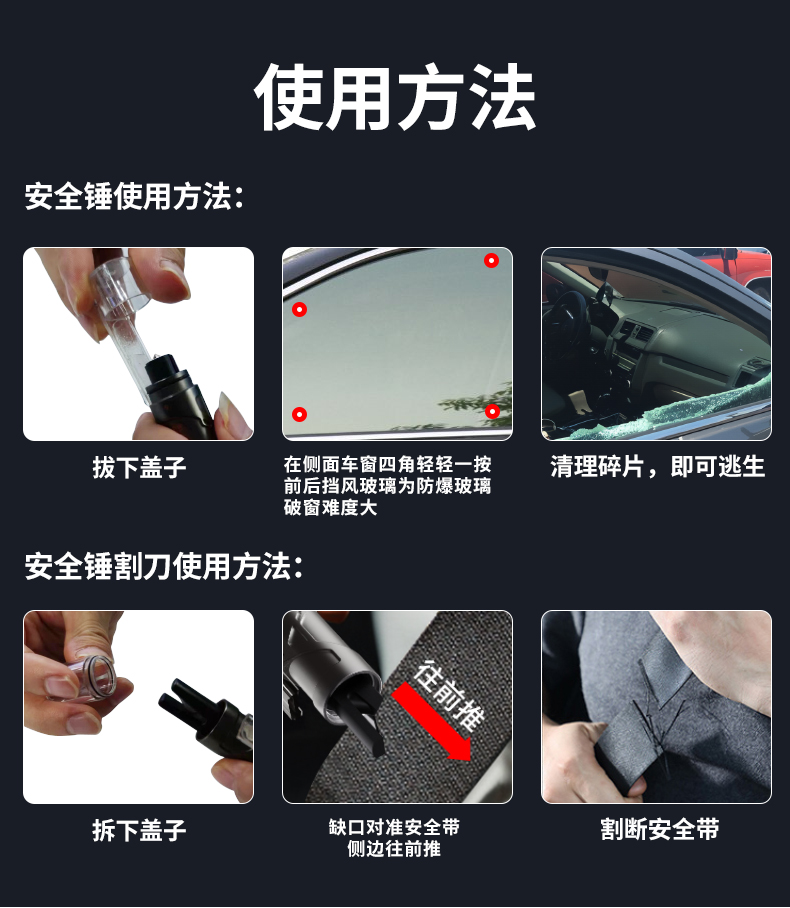 DOKIY 汽车安全锤车用多功能逃生锤车窗玻璃击碎器车载防身锤(送测试玻璃)