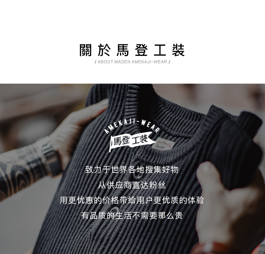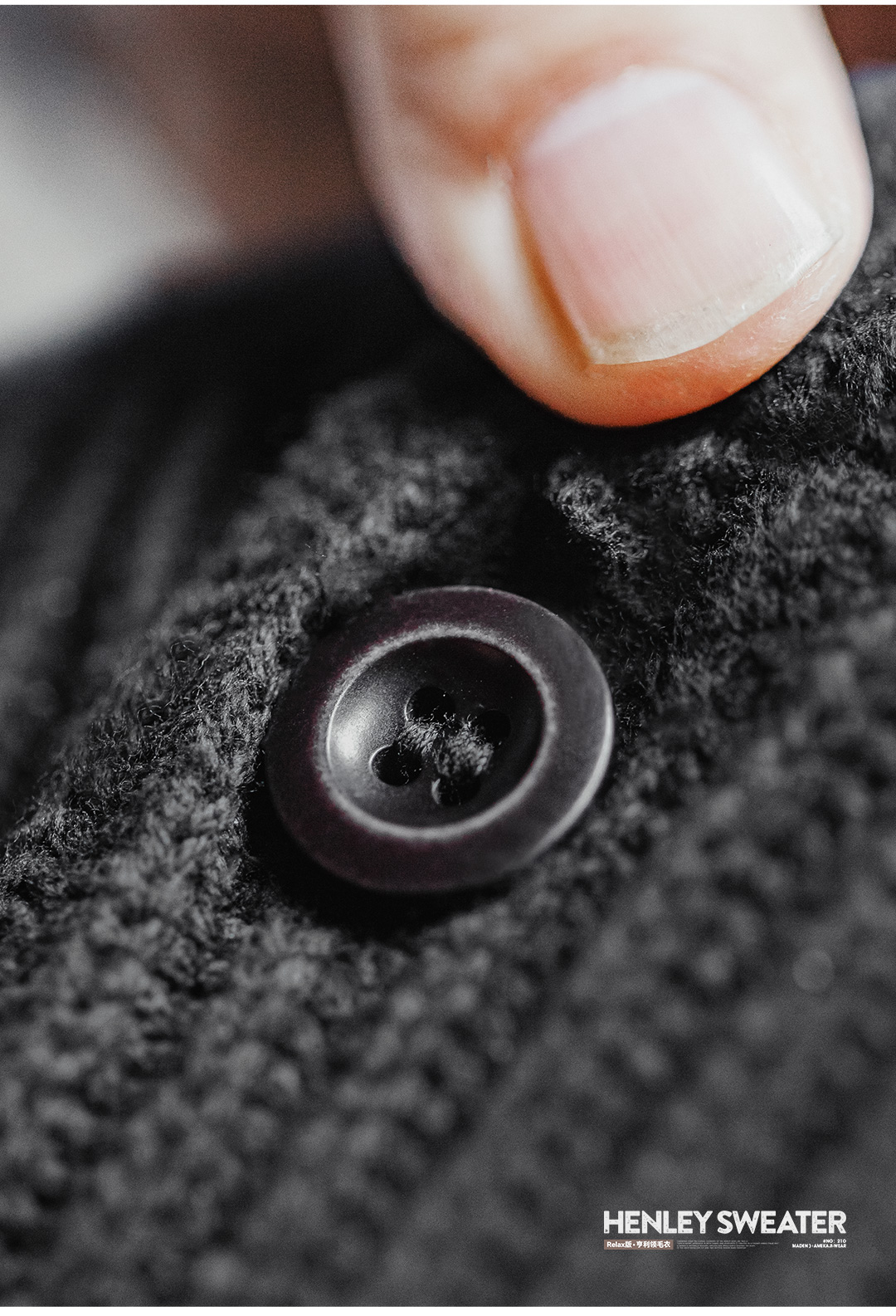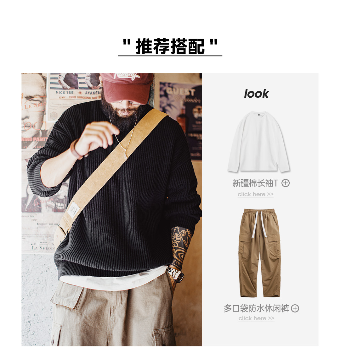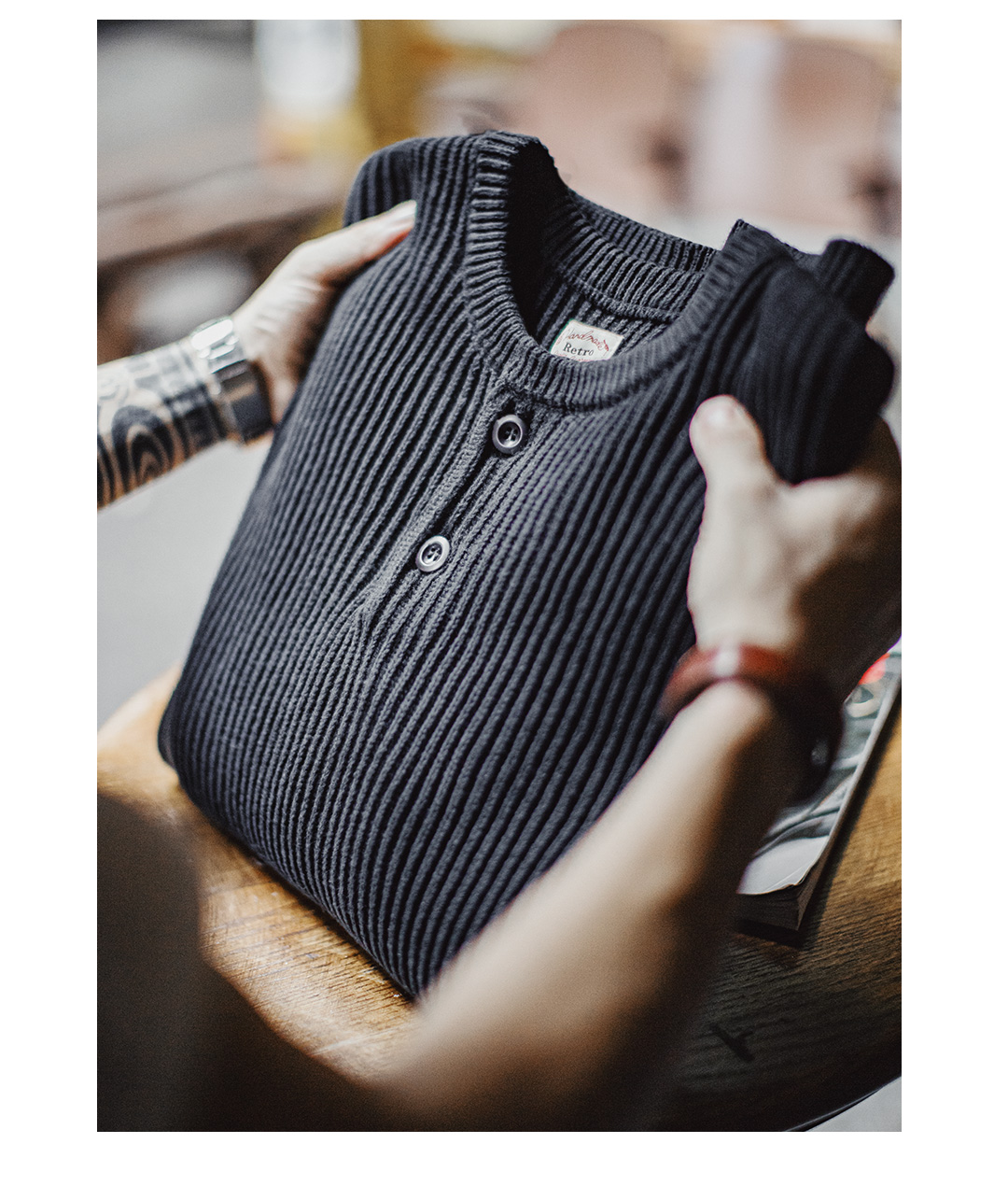 马登工装美式重磅亨利领毛衣黑色外穿高克重垂感加厚套头宽松男冬