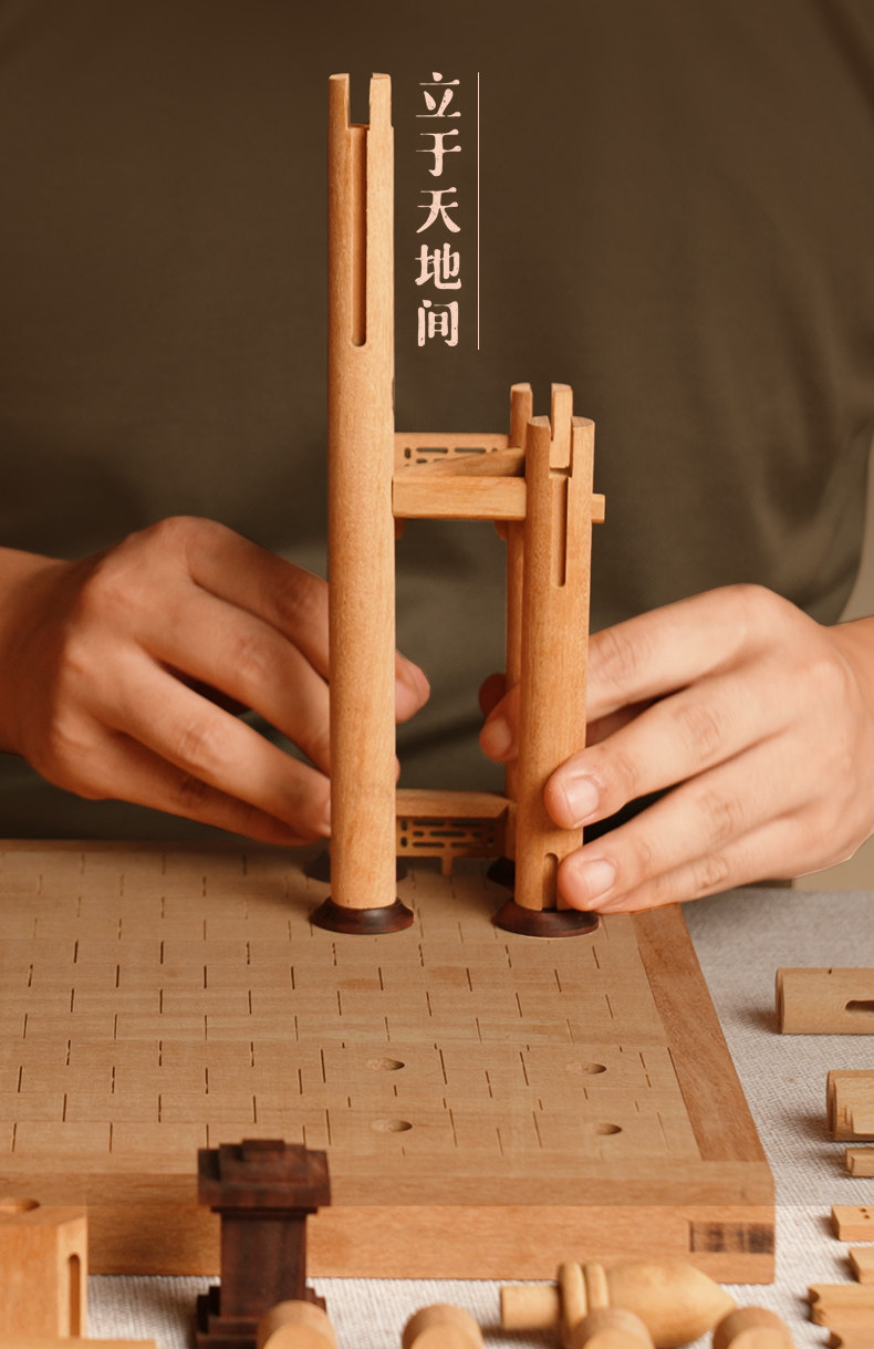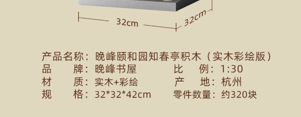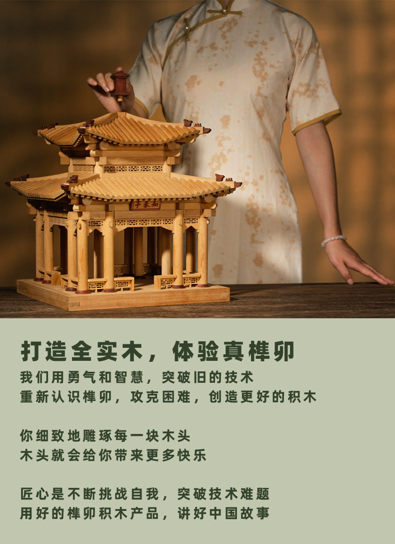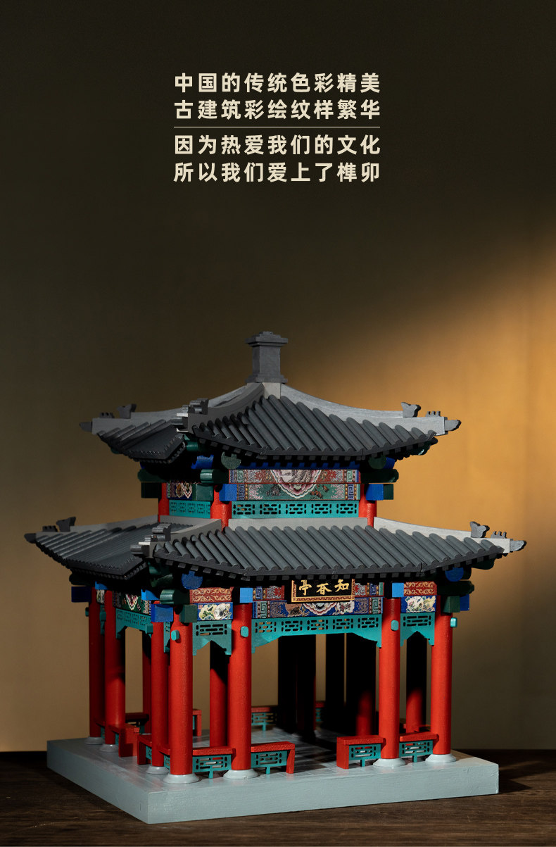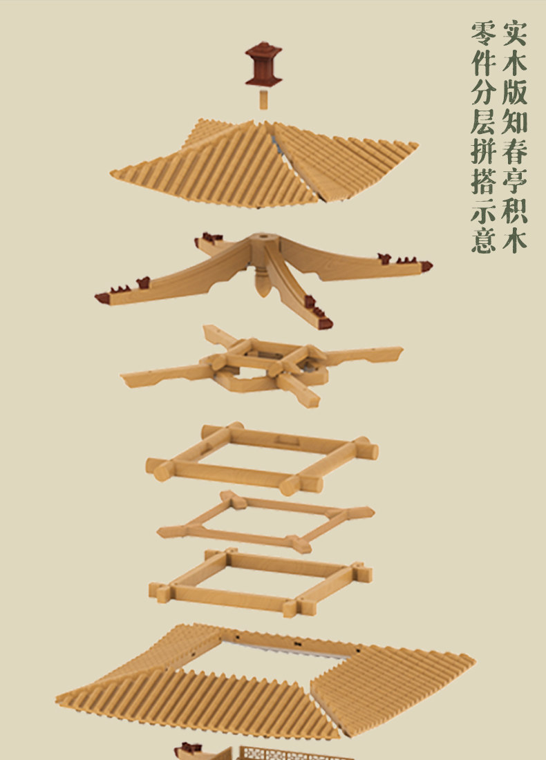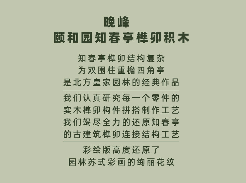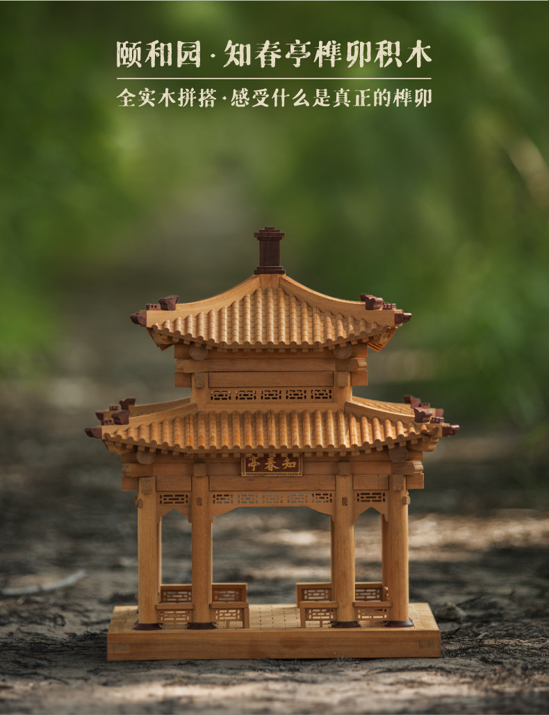 【限时限量赠送木质镇尺一个 纯实木 大尺寸】颐和园知春亭实木榫卯积木