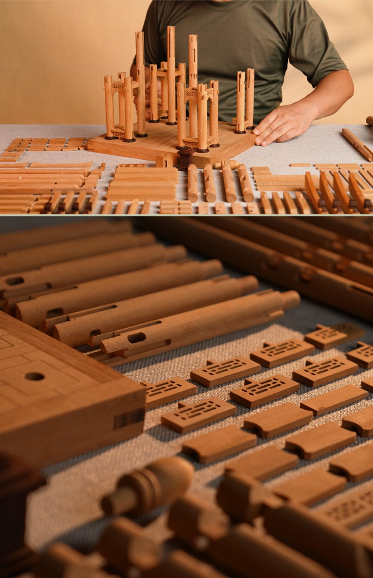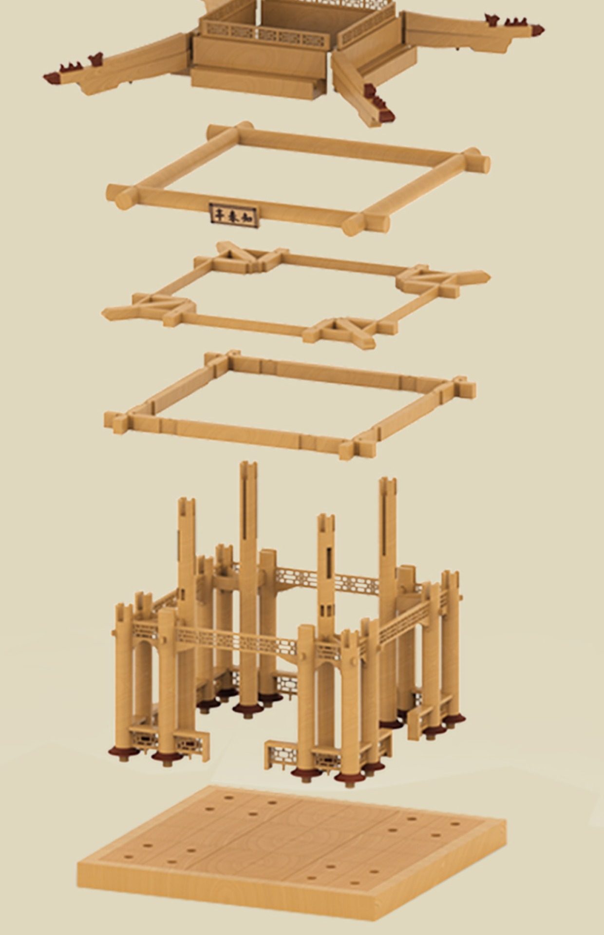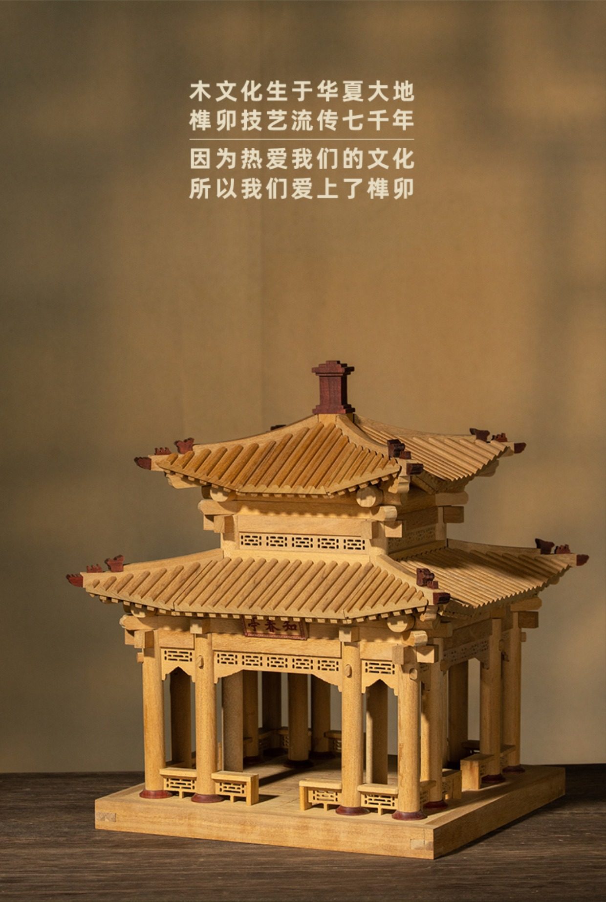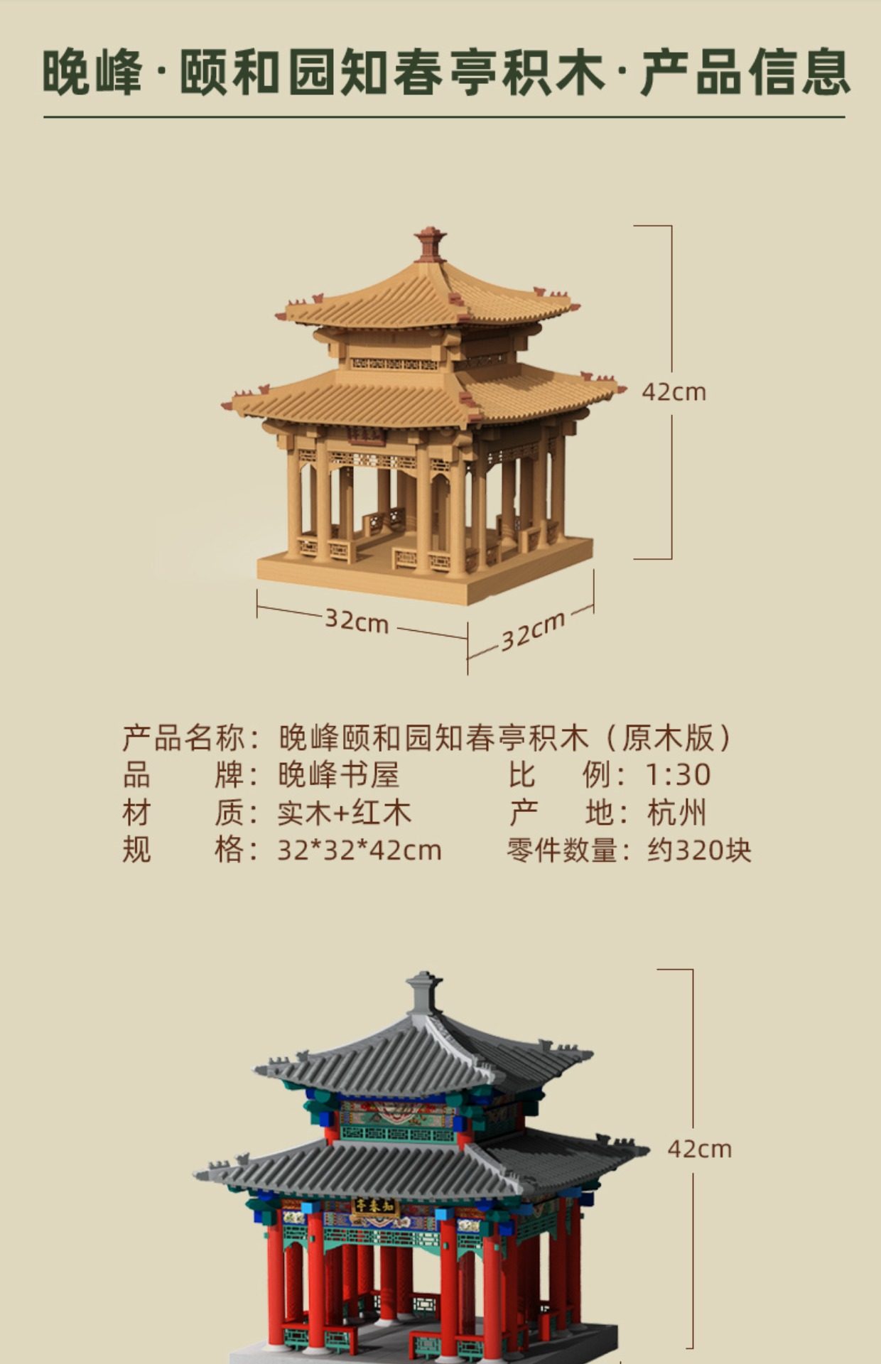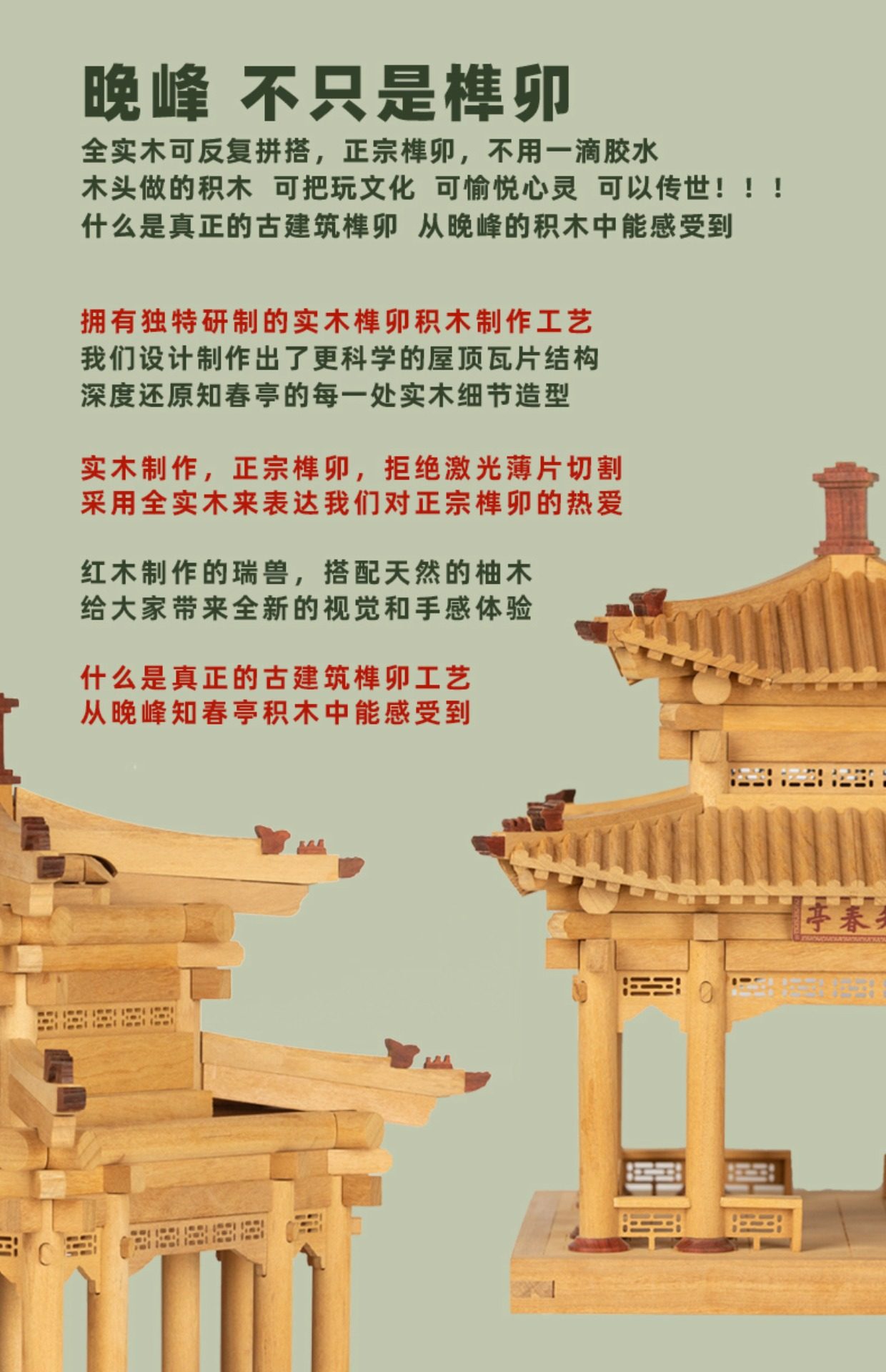 【限时限量赠送木质镇尺一个 纯实木 大尺寸】颐和园知春亭实木榫卯积木