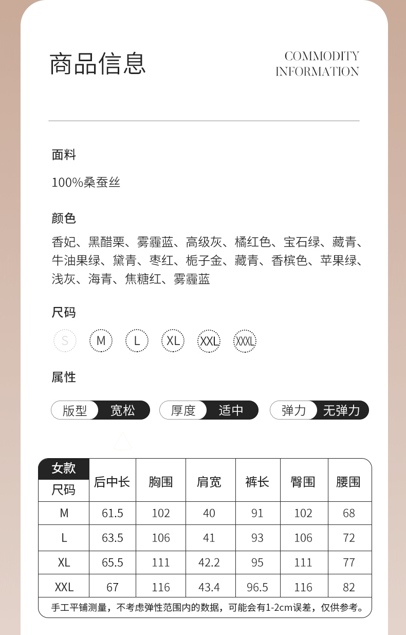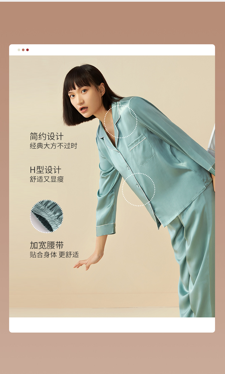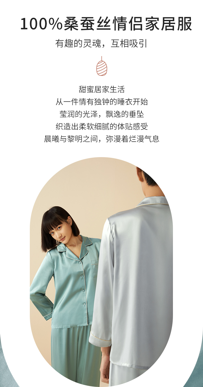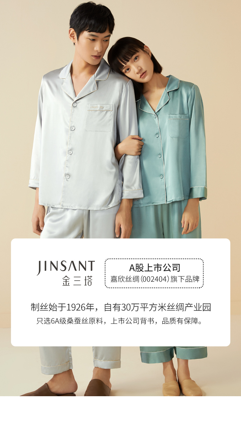 金三塔情侣真丝睡衣男女高级感100%桑蚕丝简约时尚丝绸家居服套装(限价款) YSF7B202