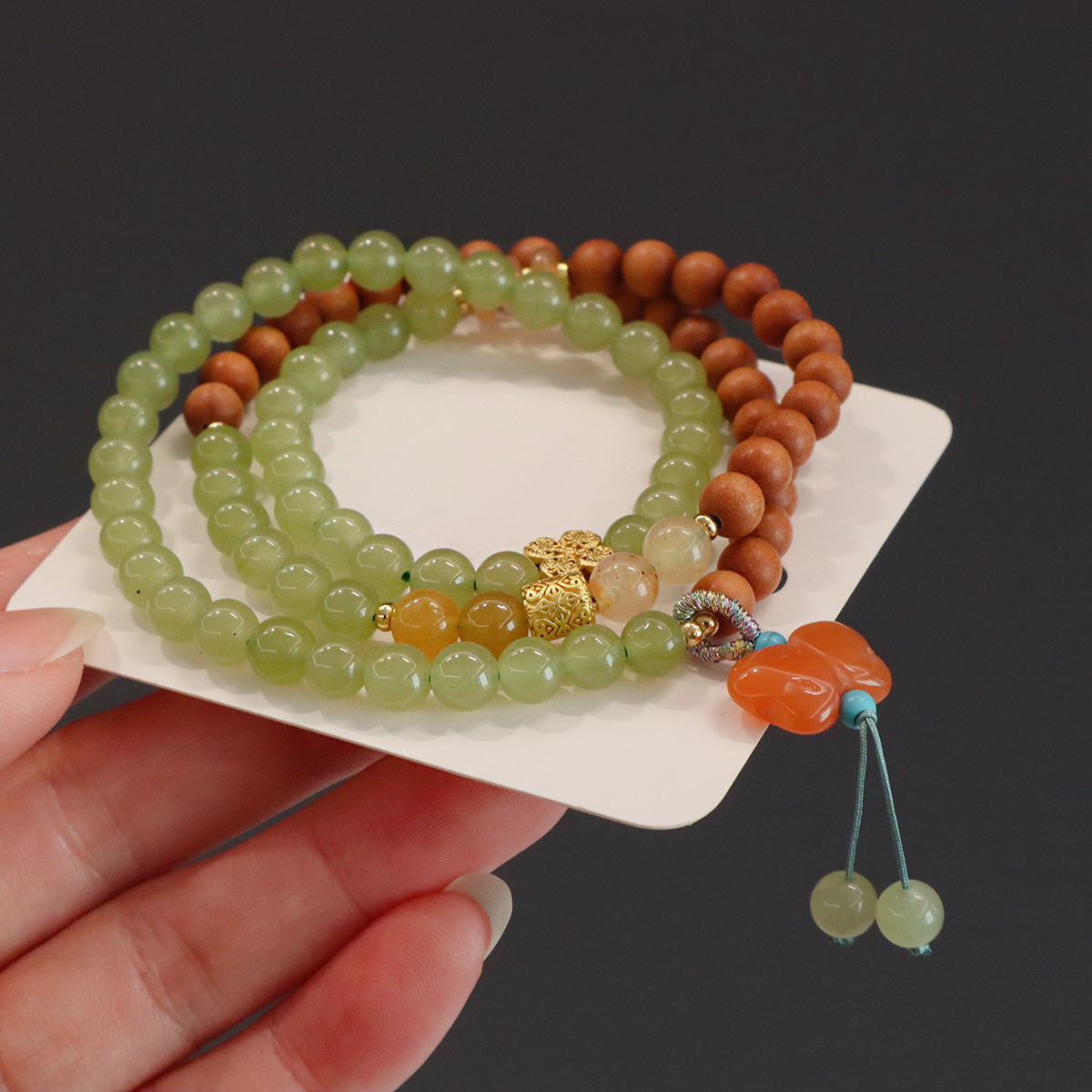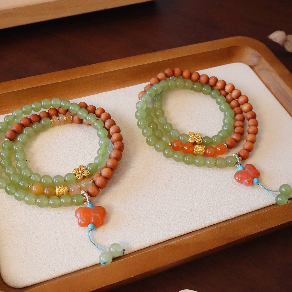 新中式绿玉髓檀木串珠,盐源蝴蝶手串