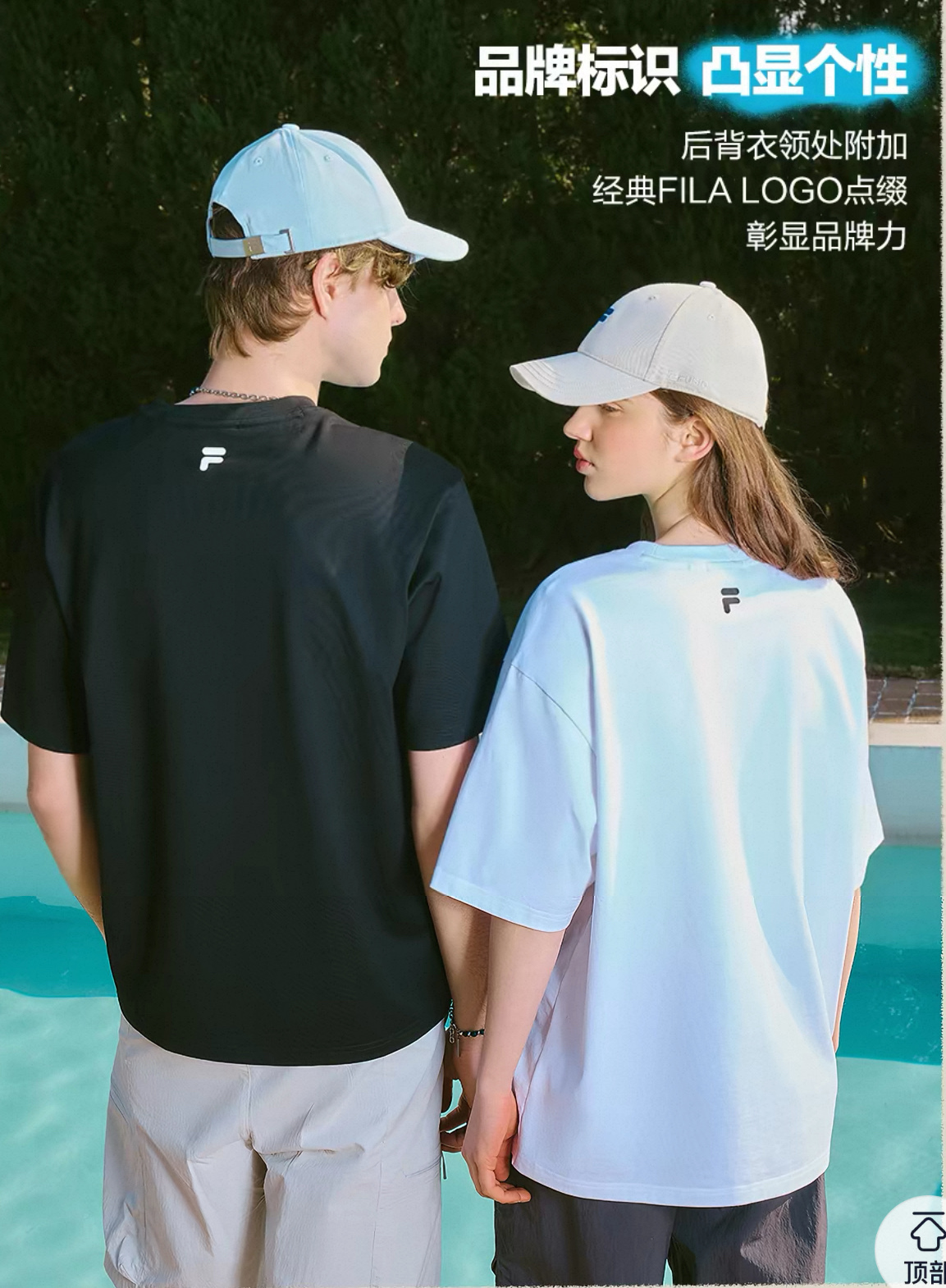 斐乐潮牌夏新款凉感宽松男女T恤短袖上衣情侣款,高科技接触凉感面料,加速皮肤表面热量流失有效降温!