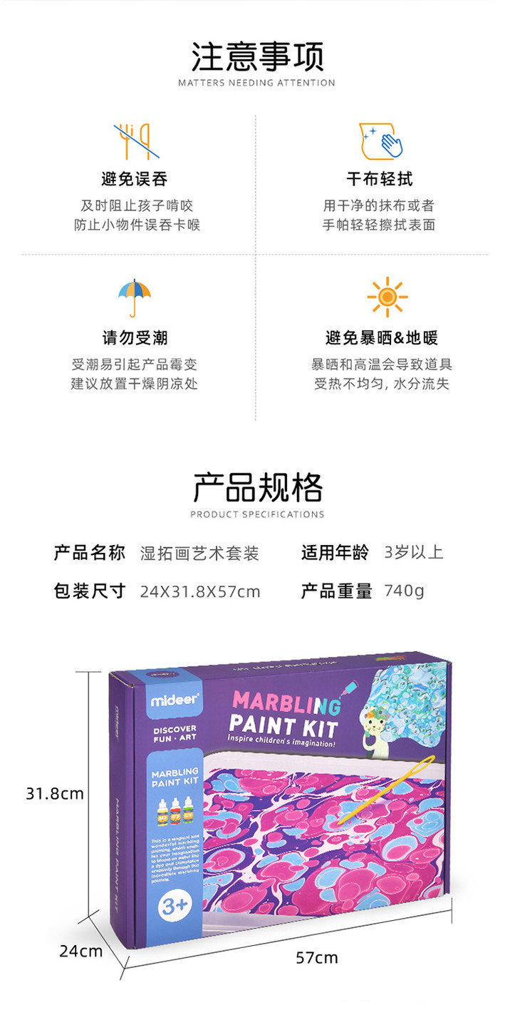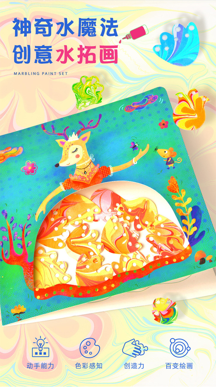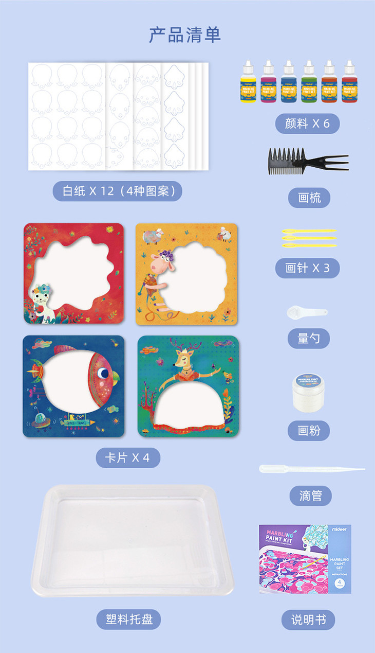 【儿童玩具】*MiDeer弥鹿水拓画套装浮水画水影画工具材料儿童颜料涂鸦湿拓画
