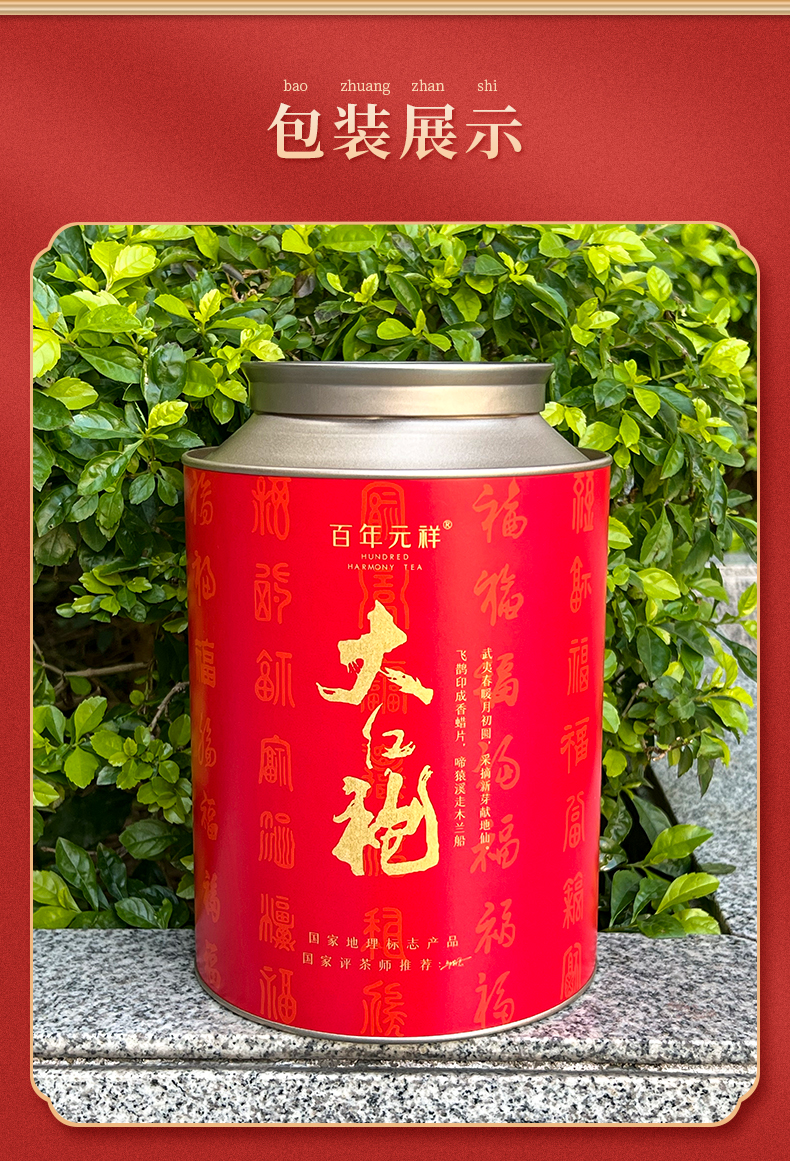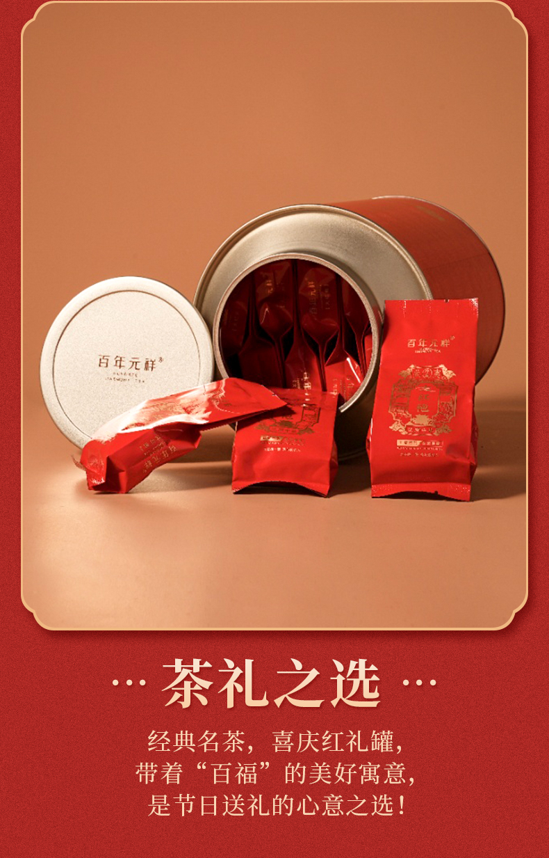 百年元祥丨百福大红袍 百福罐 武夷岩茶 乌龙茶 249g 岩骨花香醇厚 精品罐装配手提袋