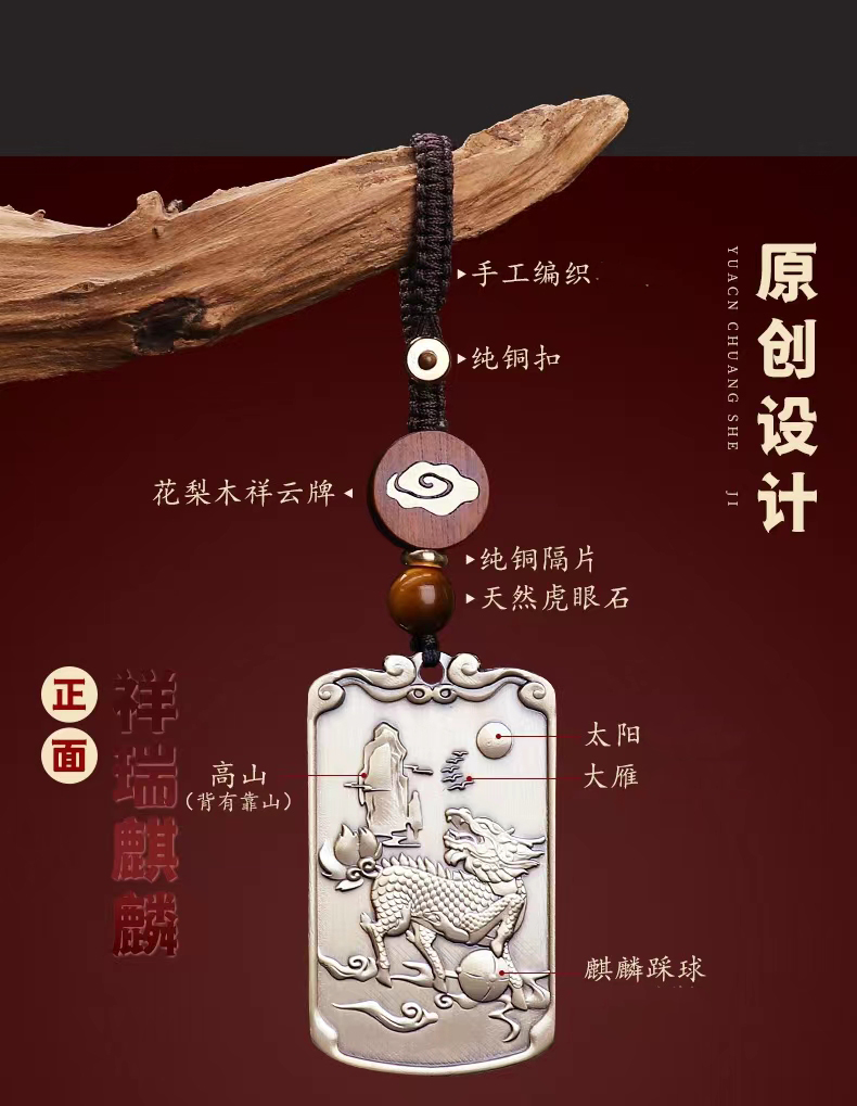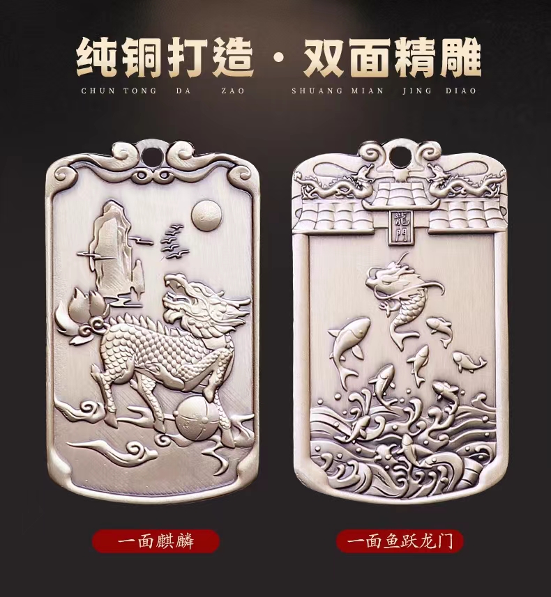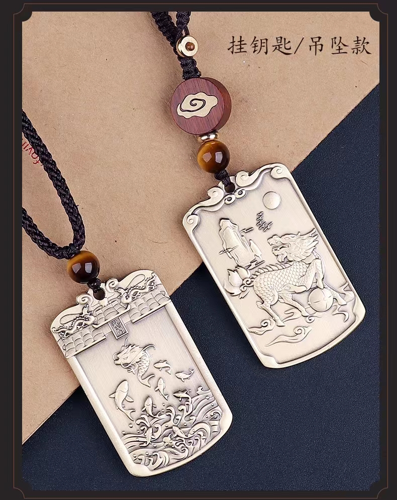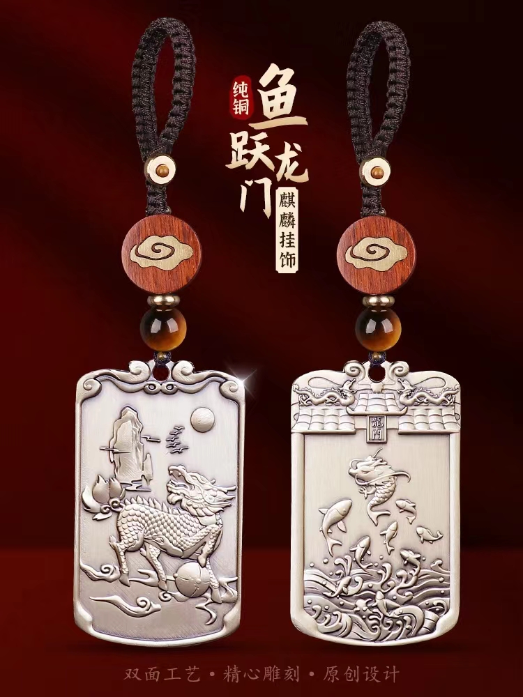 纯铜鱼跃龙门麒麟吊坠,黄铜挂件,随身挂饰钥匙扣