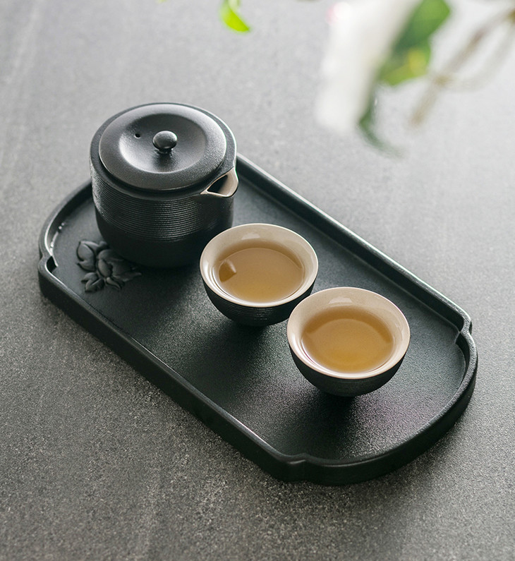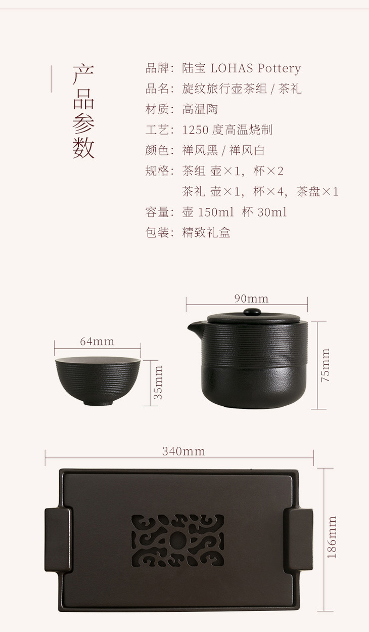 【LOHAS陆宝 旋纹旅行壶茶组】 茶具礼盒套装 茶礼陶瓷茶具送礼自用高端功夫茶具套组当代人文美学茶壶茶杯茶盘能量茶器 一壶两杯 黑白色茶礼旅行茶具【台湾陆宝】