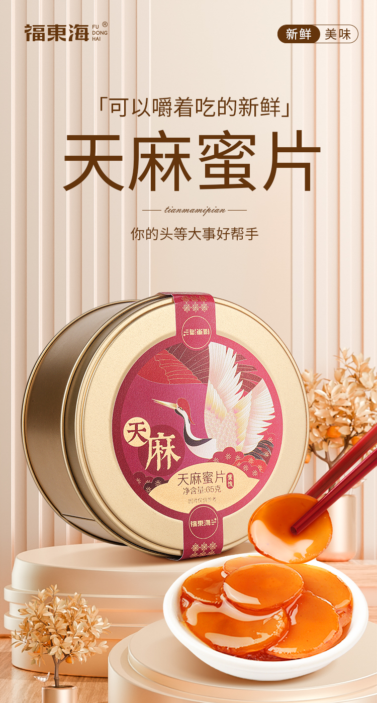 福东海 天麻蜜片65克 鲜切新鲜切片即食天麻片 蜂蜜即食便携食品零食送礼品滋补品送长辈父母