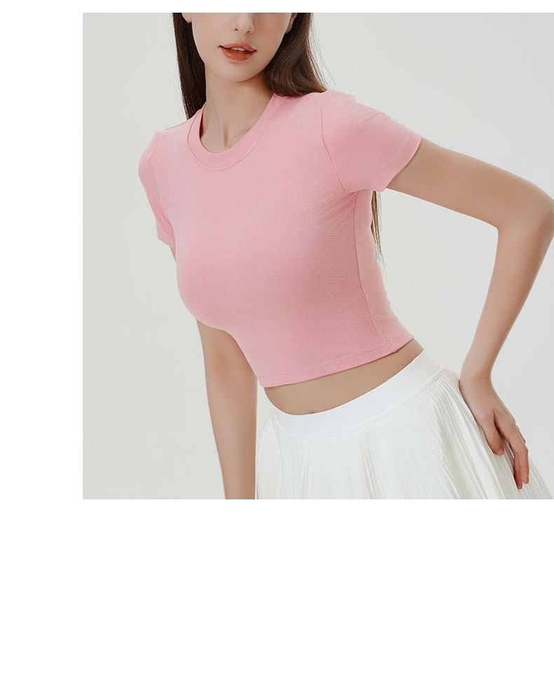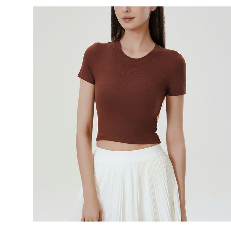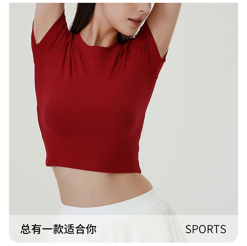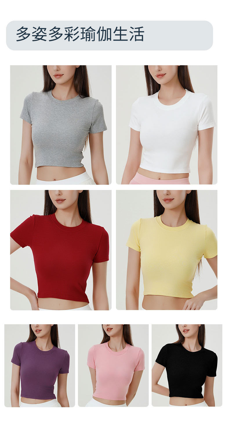 跃牌【美西西系列】2025夏新圆领短袖露脐性感超短运动潮搭辣妹跳舞健身lulu瑜伽上衣DX-2511-15-主